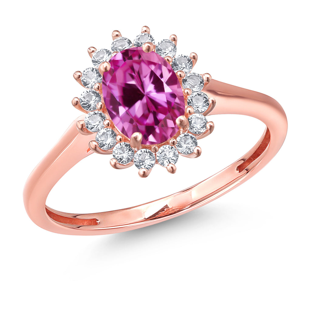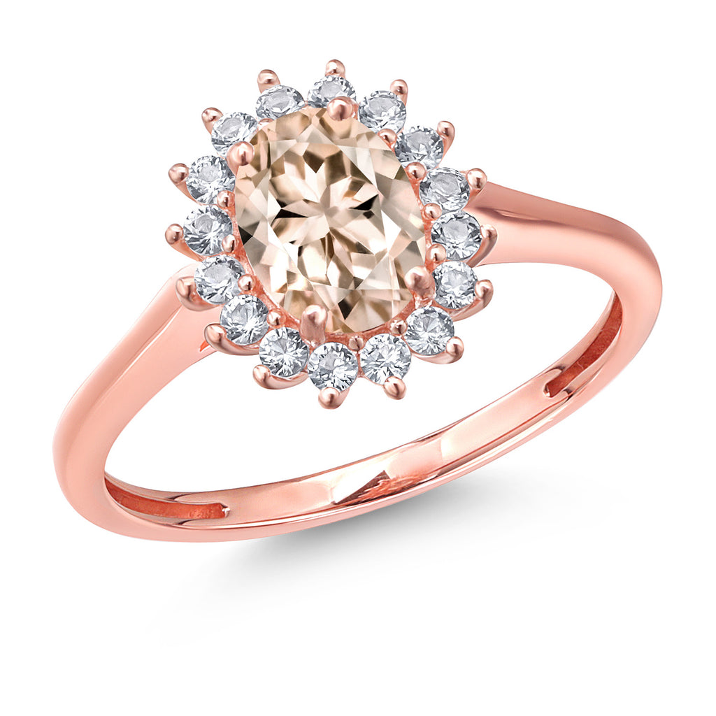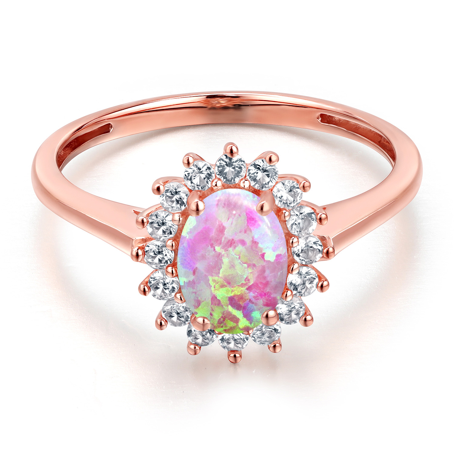 10K Rose Gold Oval 7X5MM Gemstone Birthstone and White Created Sapphire Engagement Ring For Women | Wedding Engagement Anniversary Ring For Women | Available in Size 5,6,7,8,9