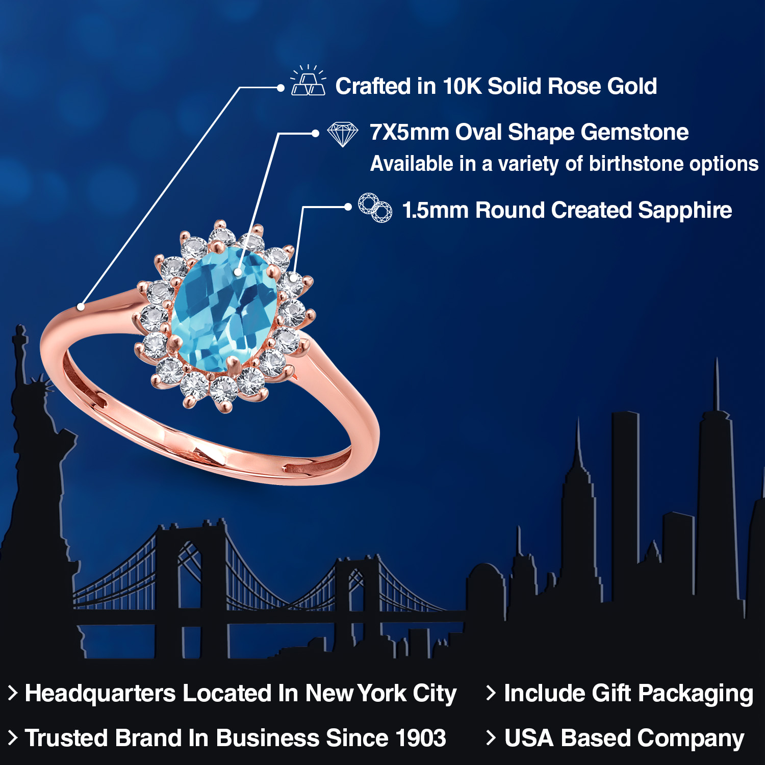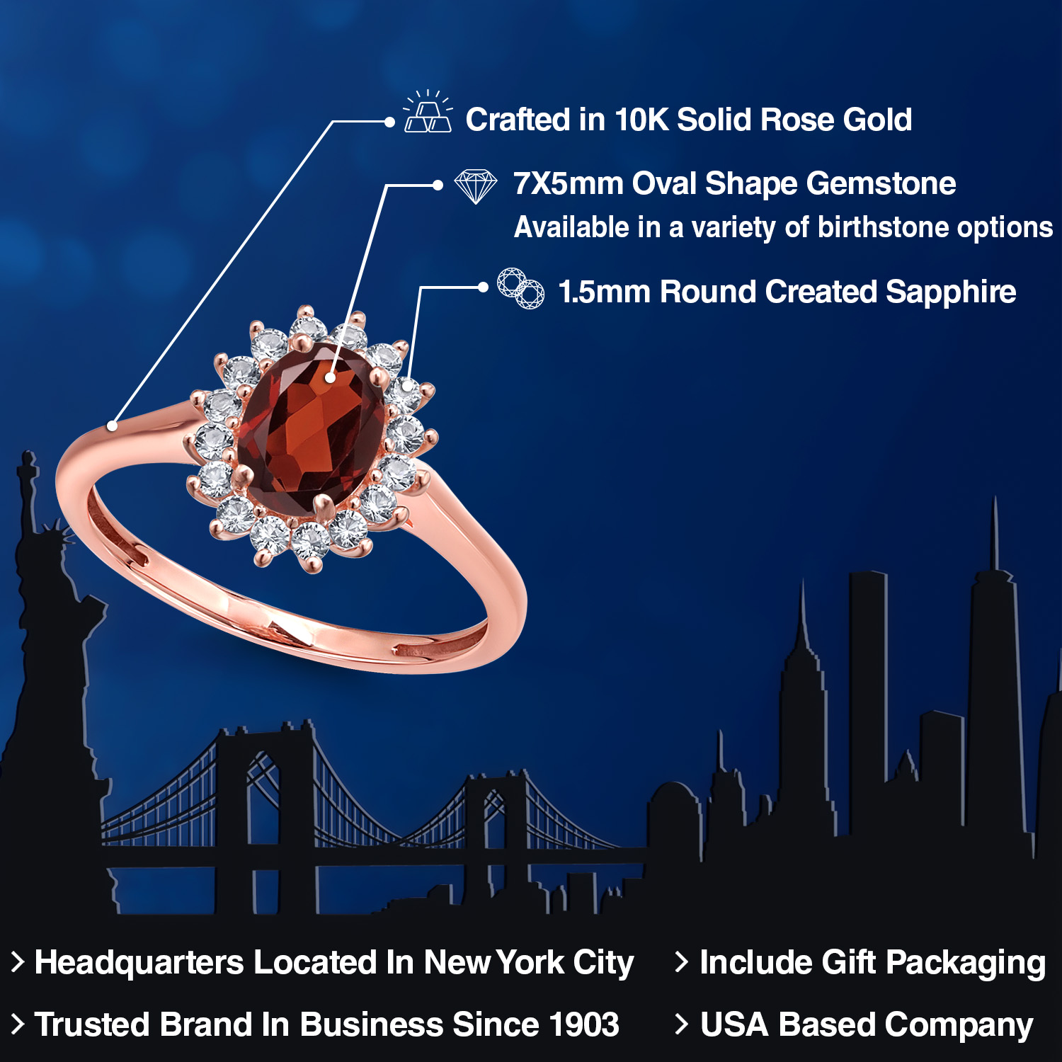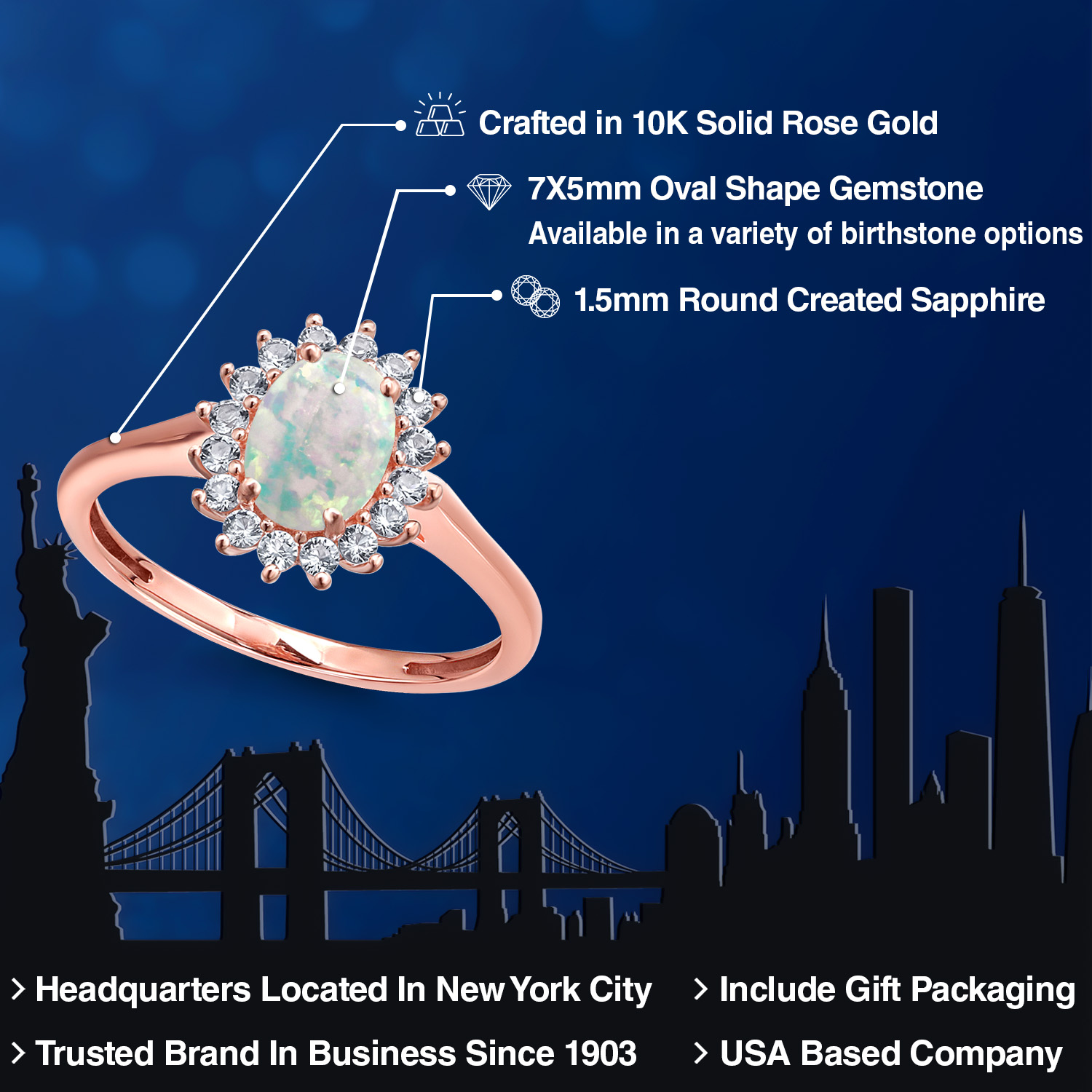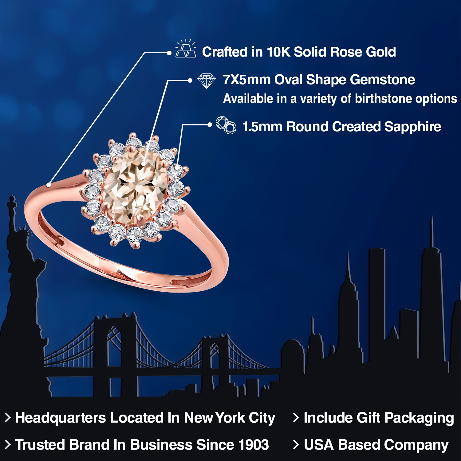PREMIUM 10K ROSE GOLD SETTING: Crafted with an eye for quality, the ring is fashioned in superior 10K rose gold, a metal lauded for its romantic hue and durable nature. This luxurious gold alloy not only complements the central gemstone beautifully, enhancing its radiant glow, but also resists tarnishing, offering a lifetime of luster and sophistication. Its hypoallergenic properties are gentle on the skin, ensuring comfort for daily wear.