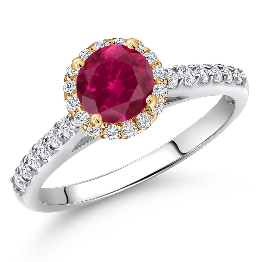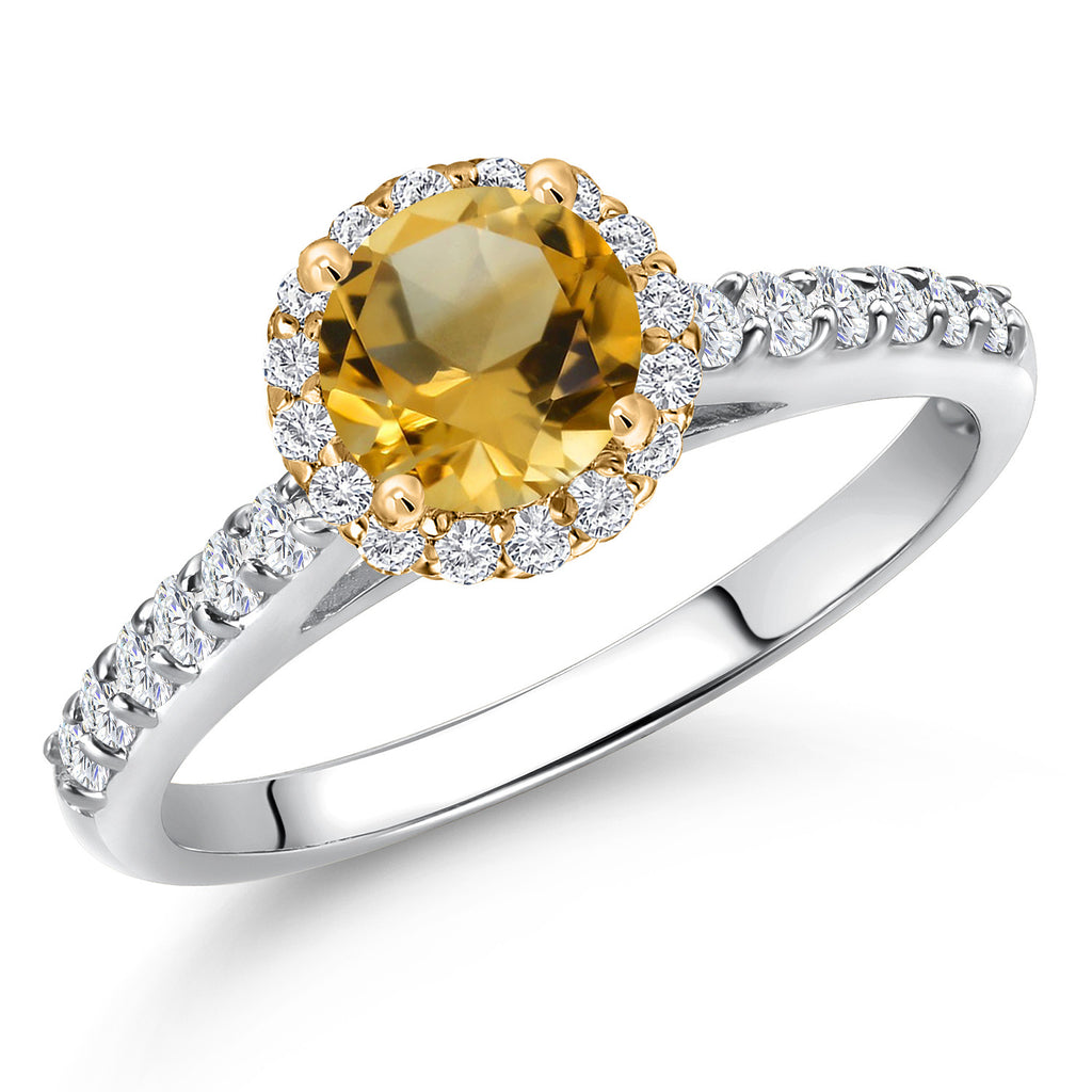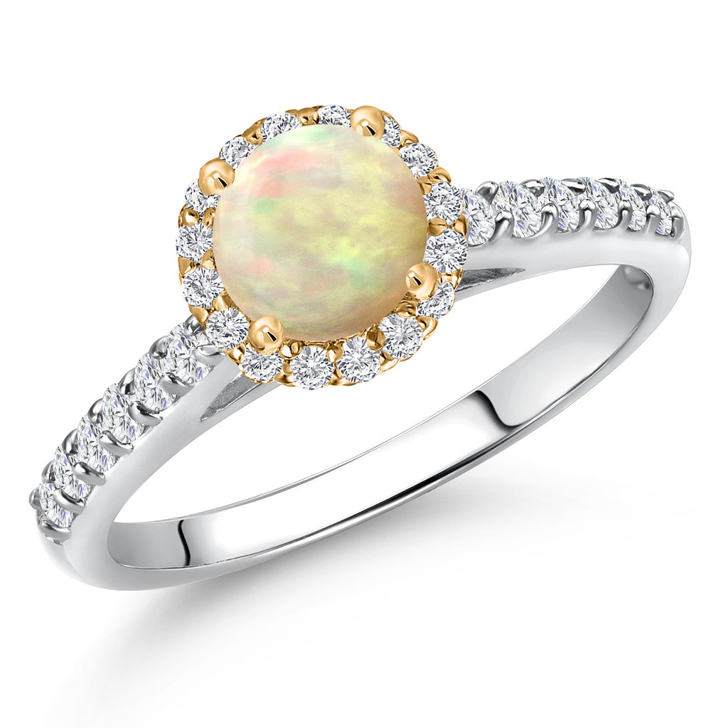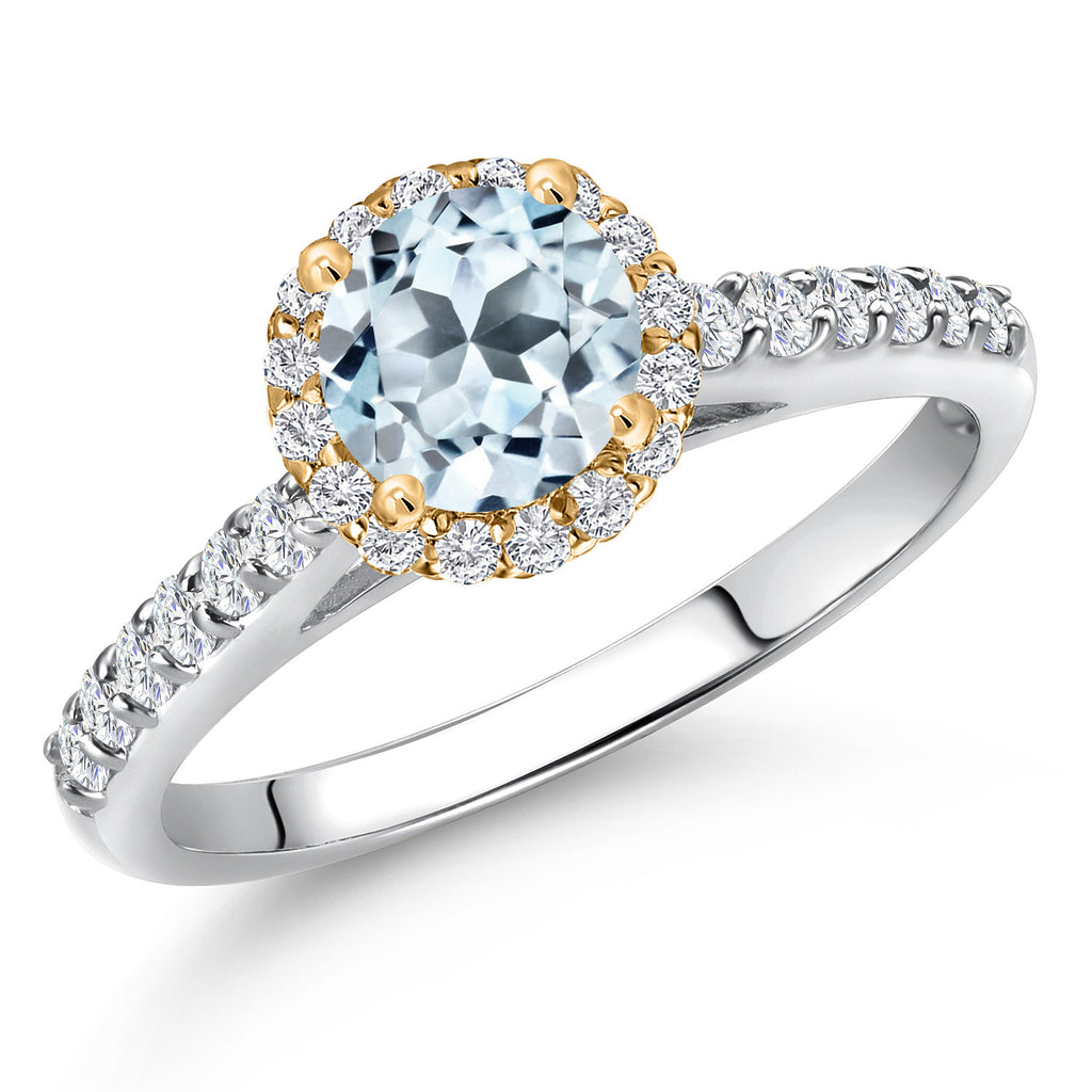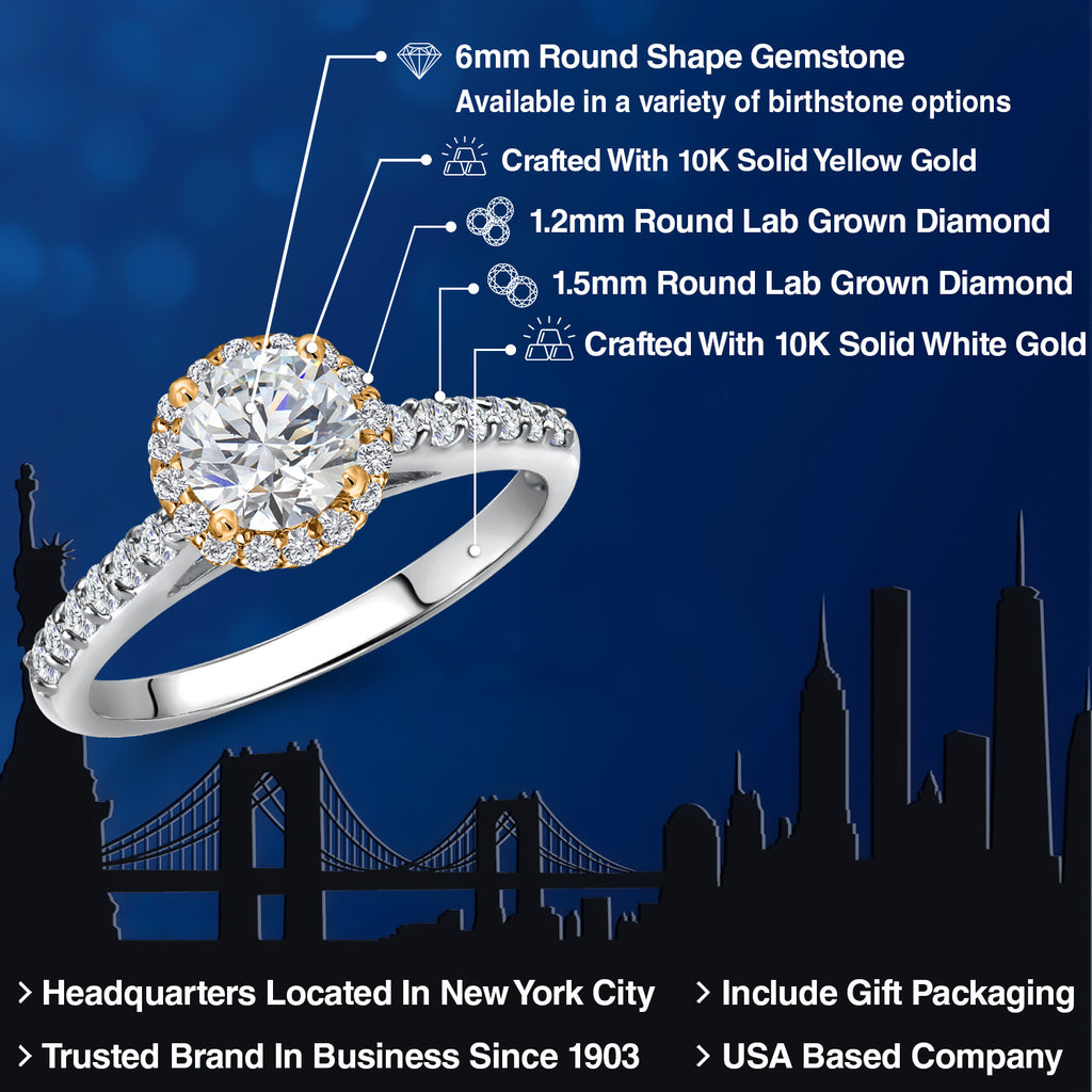 10K Two Tone Gold 6MM Gemstone Birthstone and Lab Grown Diamond Halo Engagement Ring For Women | Wedding Anniversary Promise Gold Ring | Available in Size 5, 6, 7, 8, 9