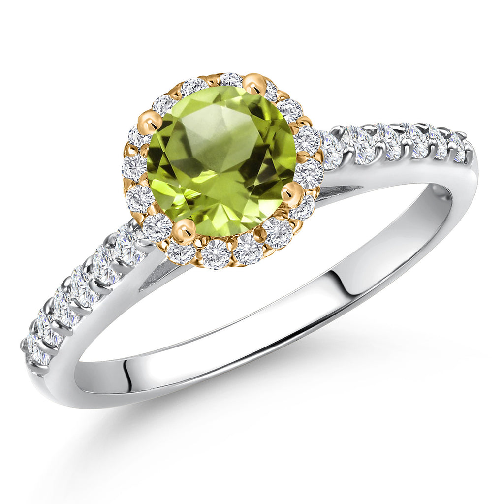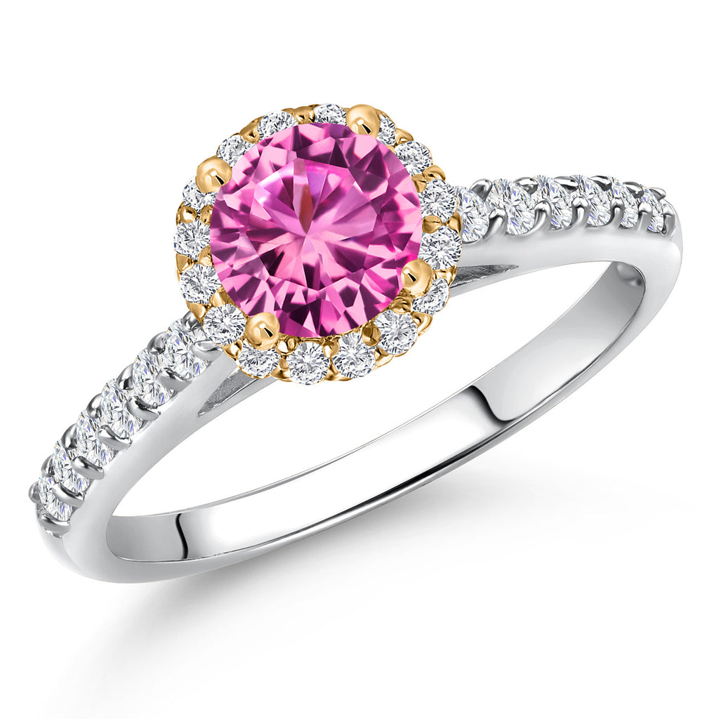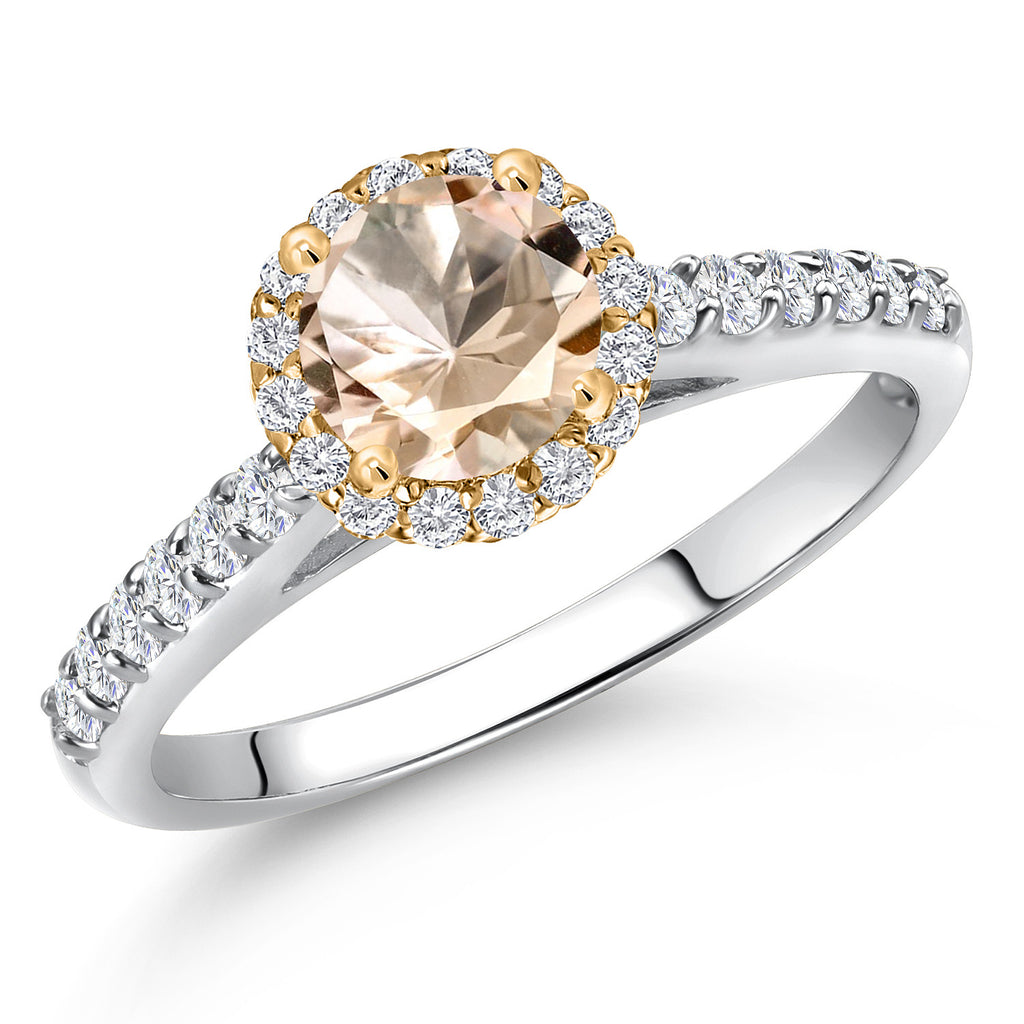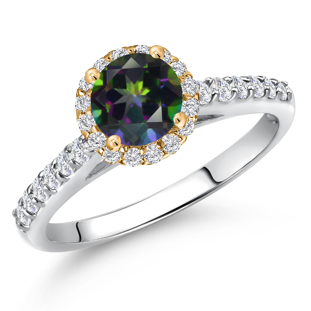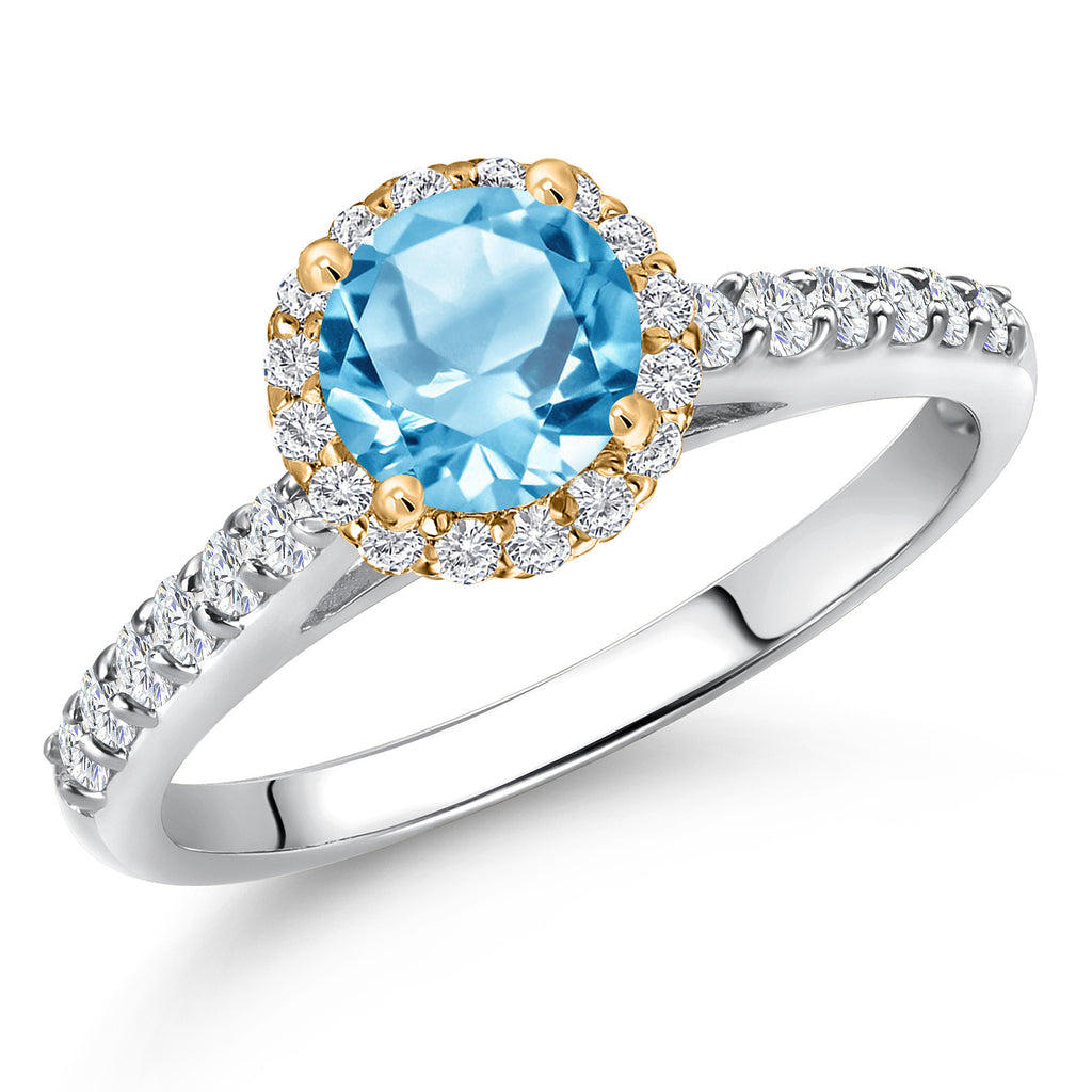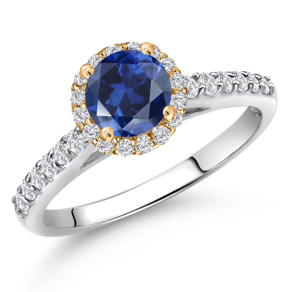 10K Two Tone Gold 6MM Gemstone Birthstone and Lab Grown Diamond Halo Engagement Ring For Women | Wedding Anniversary Promise Gold Ring | Available in Size 5, 6, 7, 8, 9