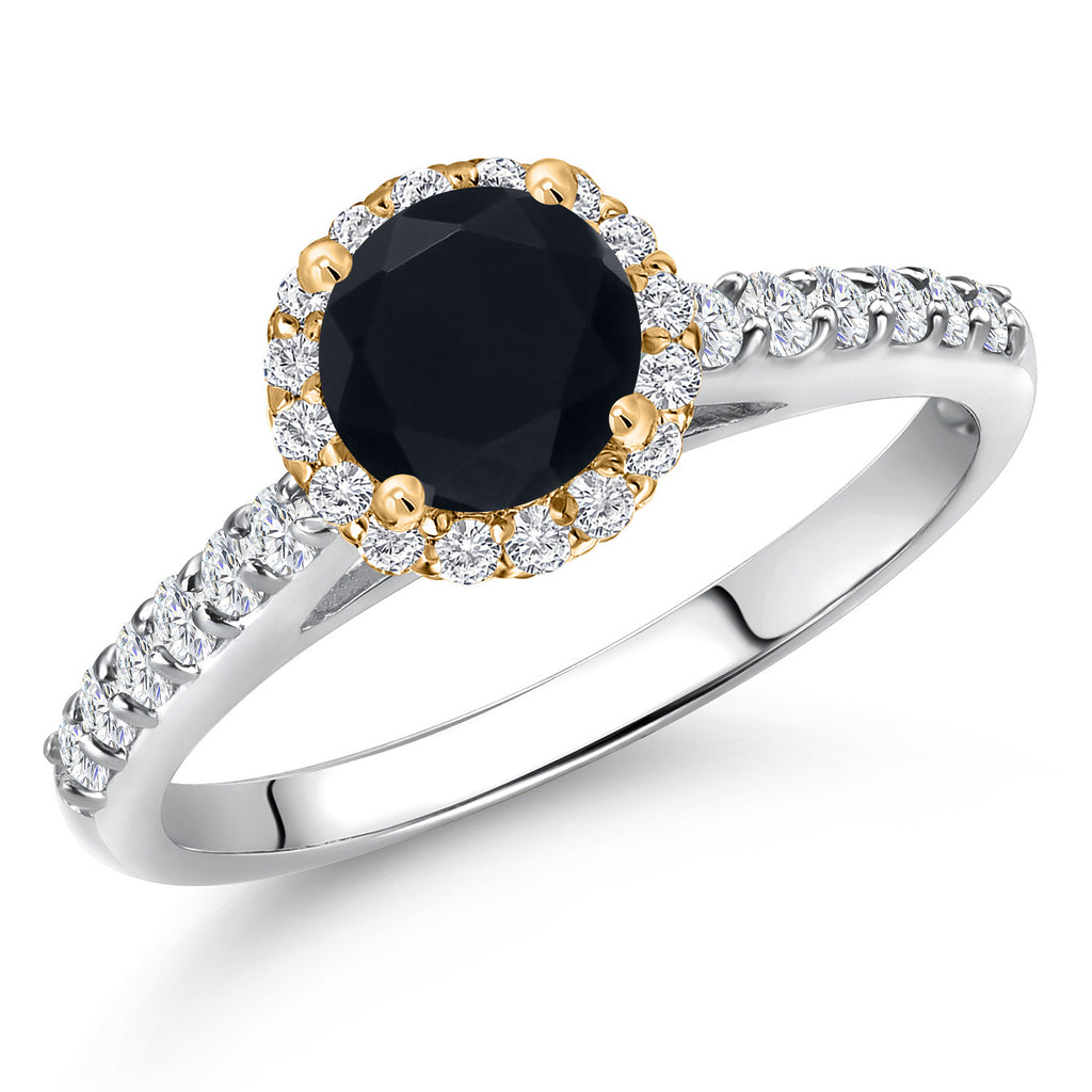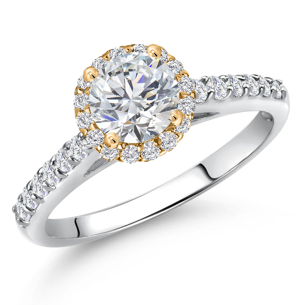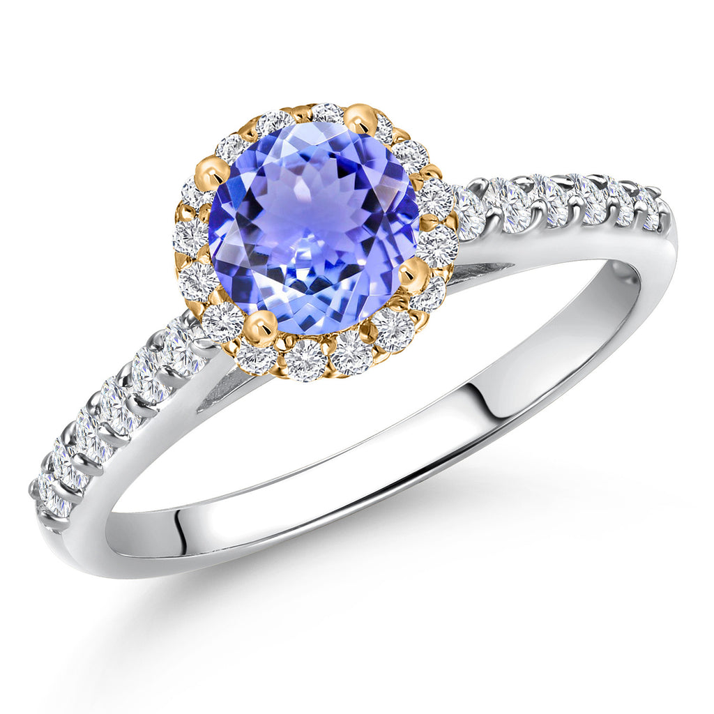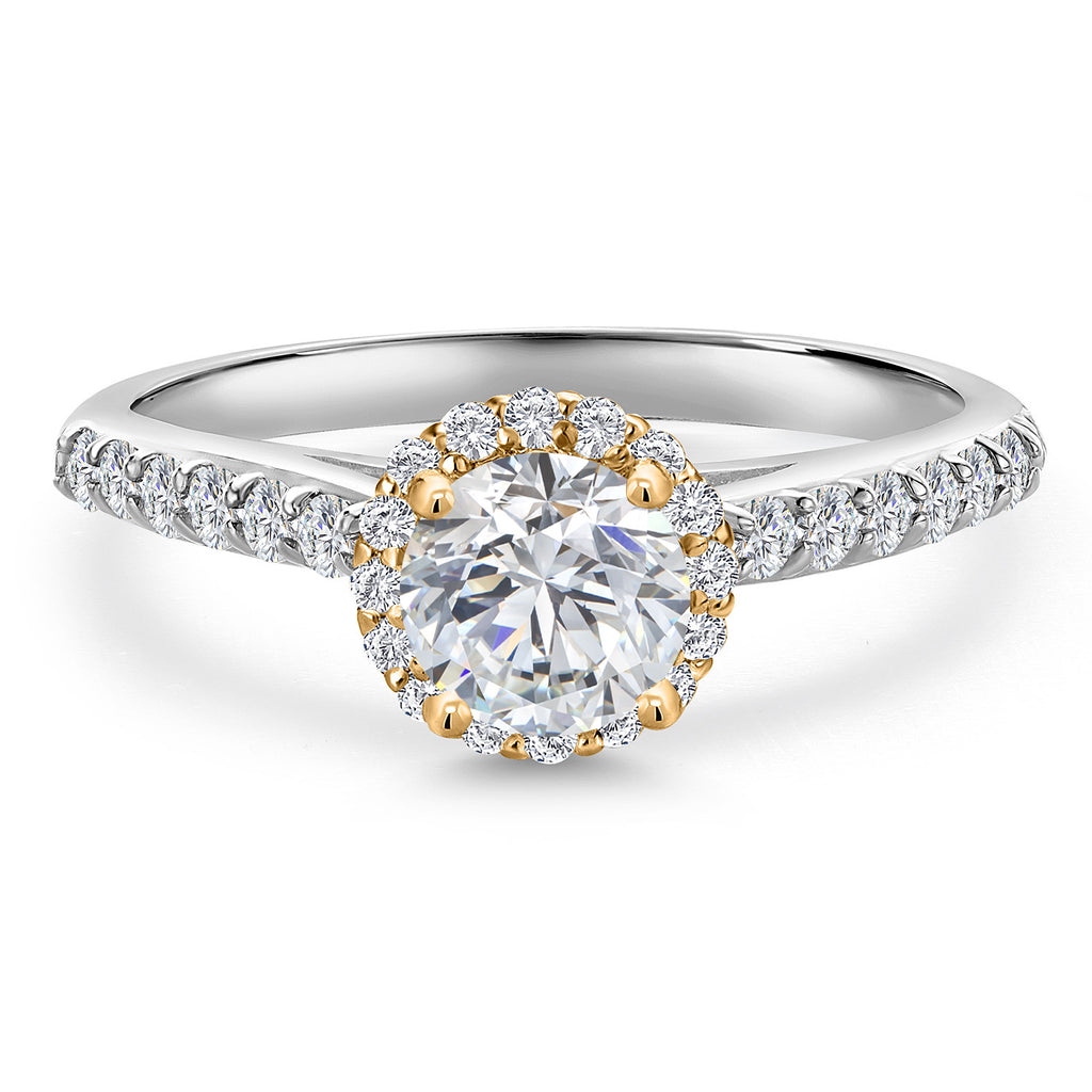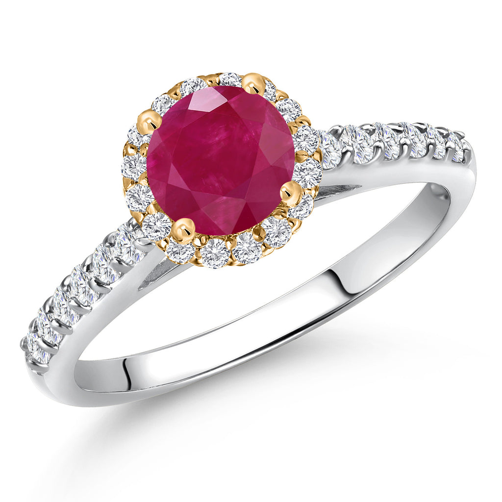 10K Two Tone Gold 6MM Gemstone Birthstone and Lab Grown Diamond Halo Engagement Ring For Women | Wedding Anniversary Promise Gold Ring | Available in Size 5, 6, 7, 8, 9