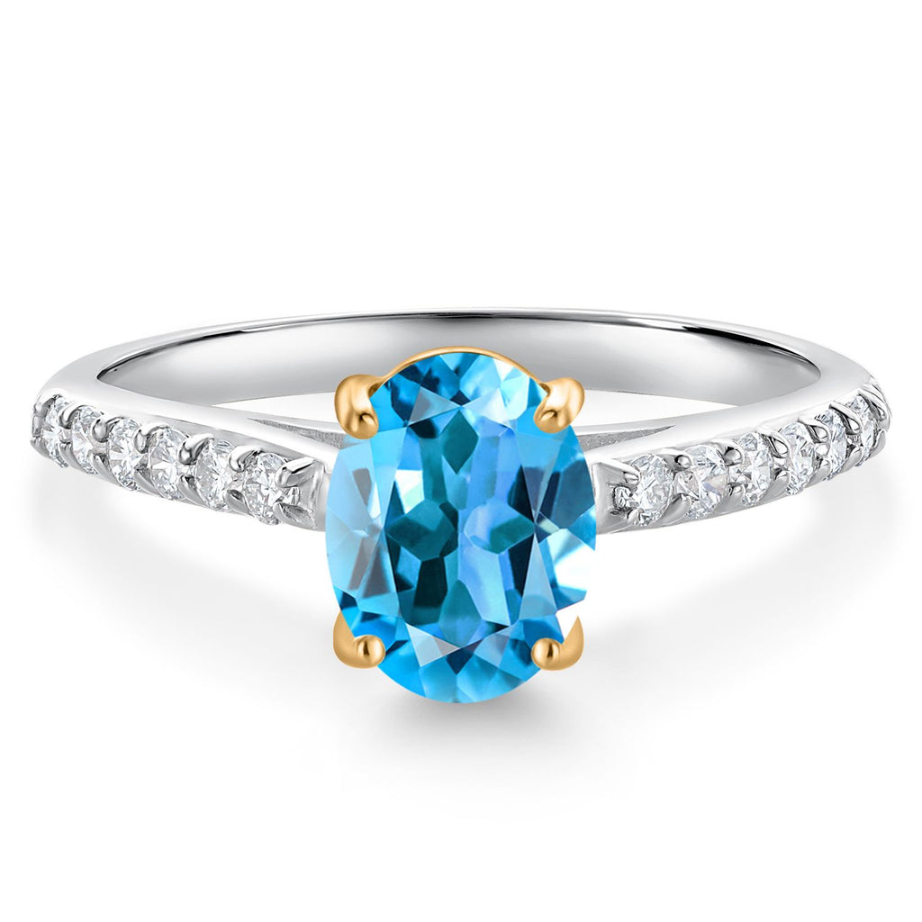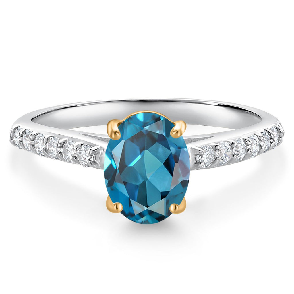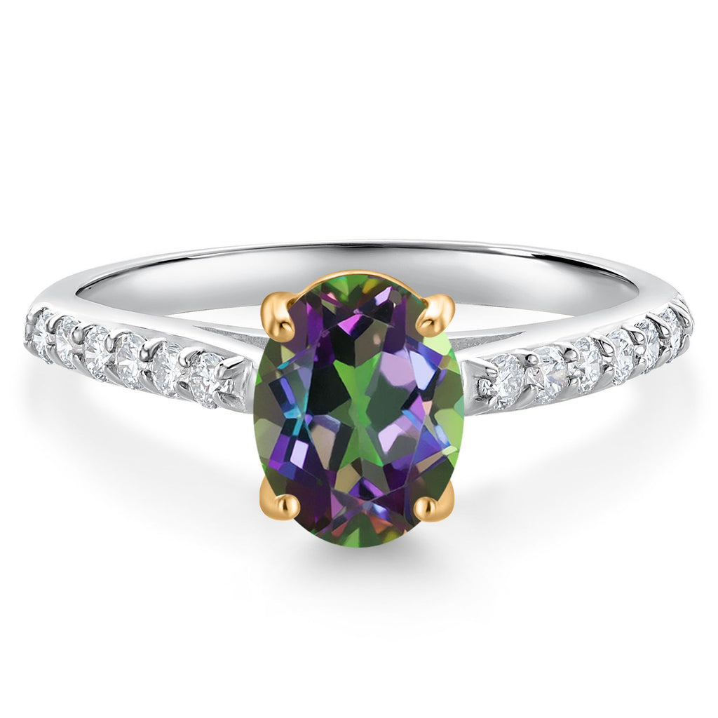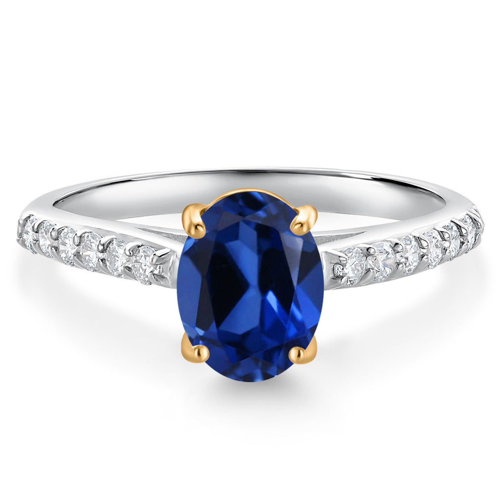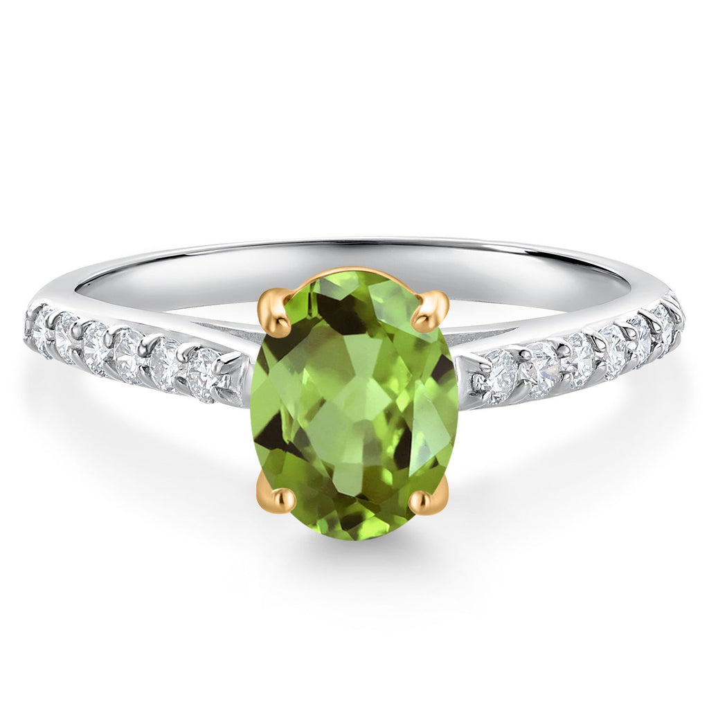10K Two Tone Gold 8X6MM Oval Gemstone Birthstone and Lab Grown Diamond Engagement Ring For Women | Wedding Engagement Anniversary Promise Ring For Women | Sizes 5, 6, 7, 8, 9