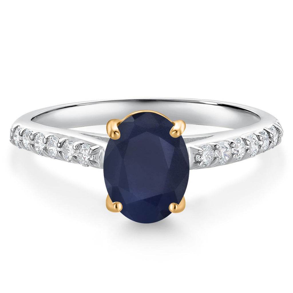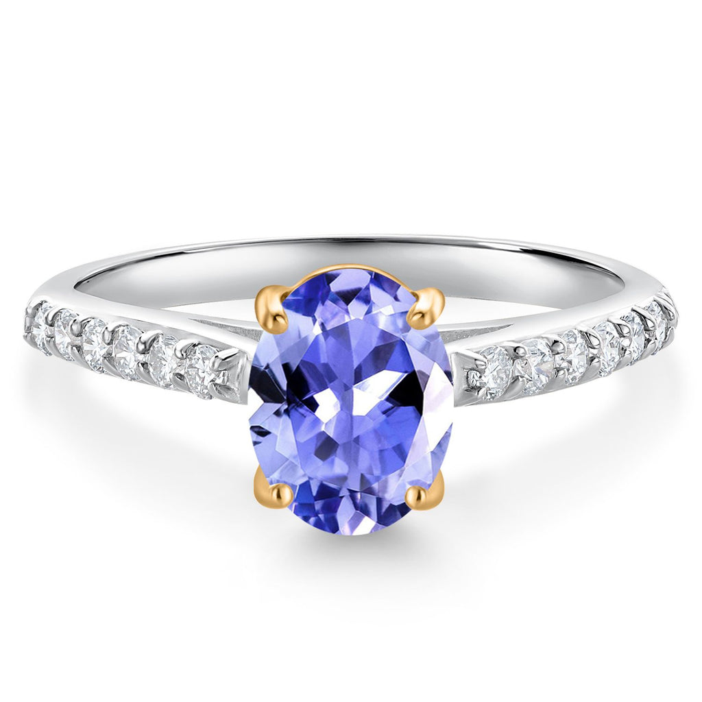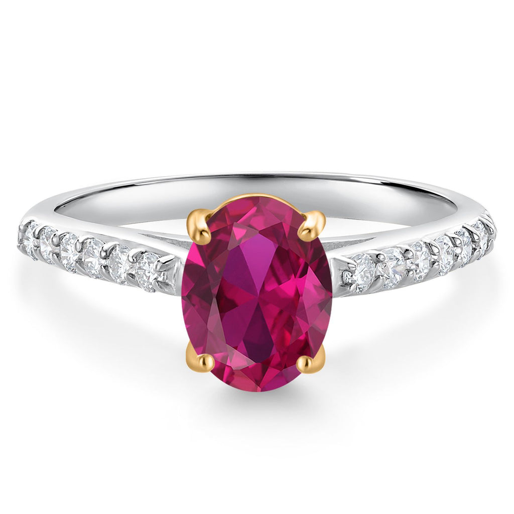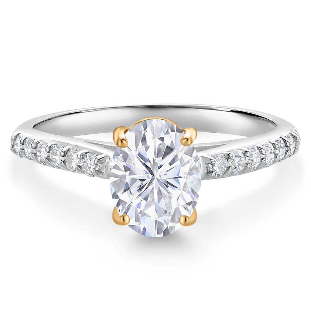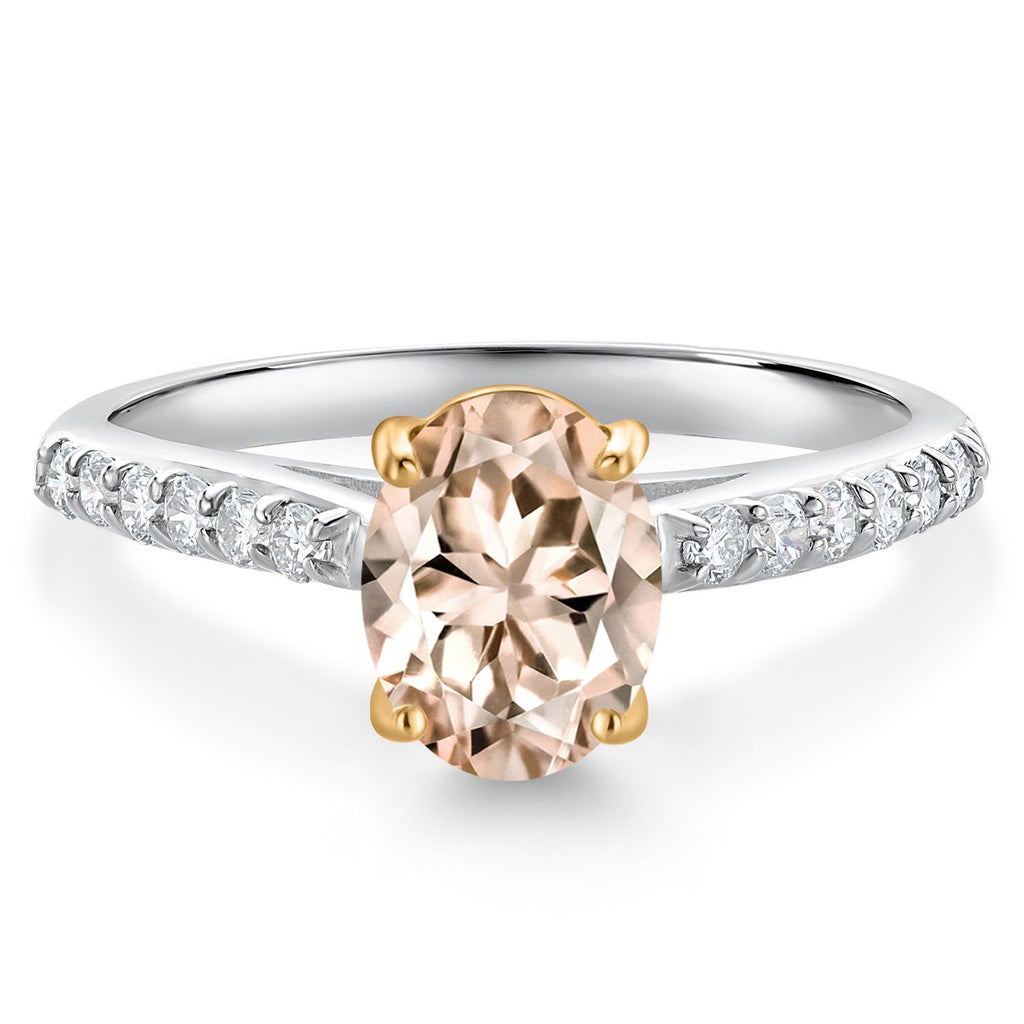 10K Two Tone Gold 8X6MM Oval Gemstone Birthstone and Lab Grown Diamond Engagement Ring For Women | Wedding Engagement Anniversary Promise Ring For Women | Sizes 5, 6, 7, 8, 9