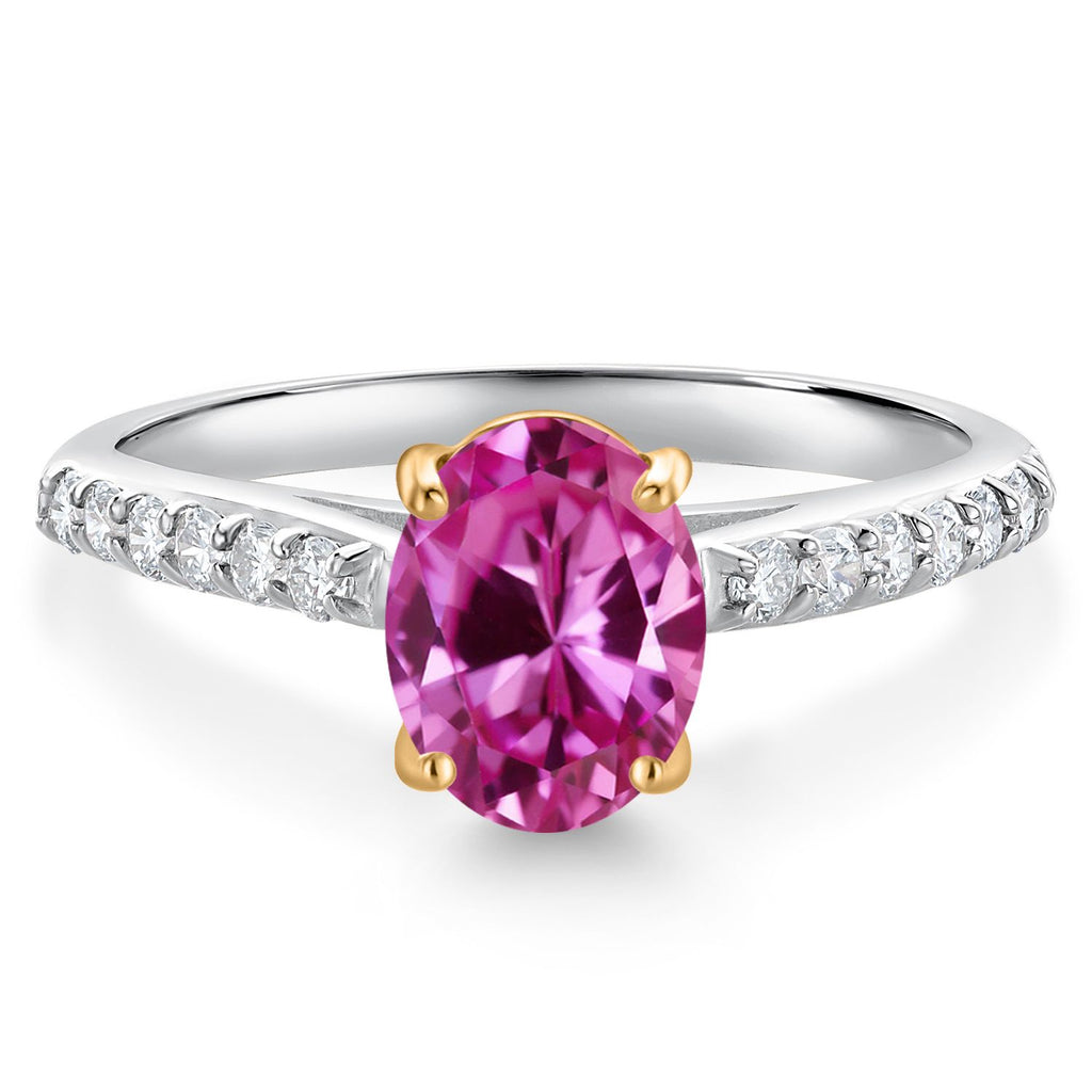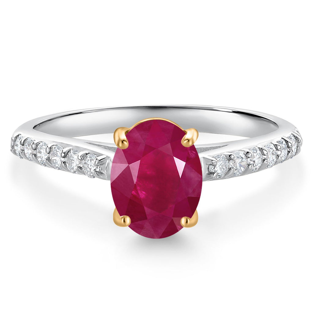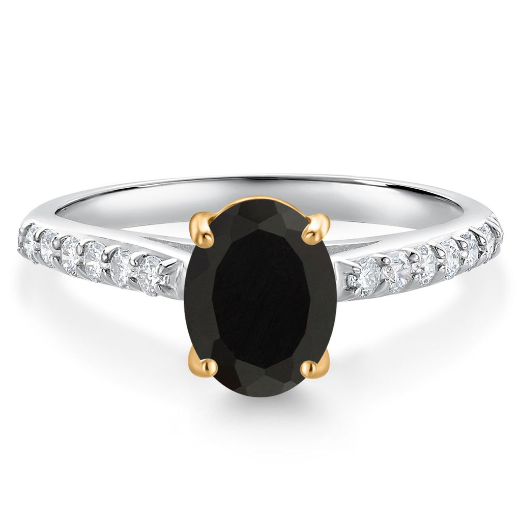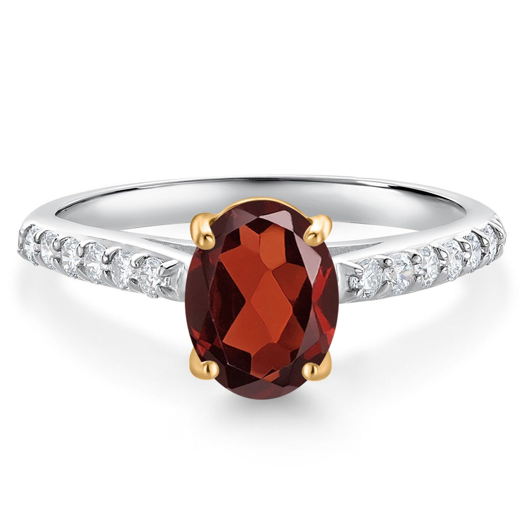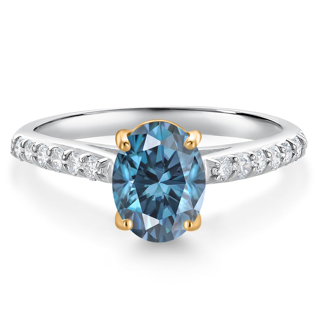 10K Two Tone Gold 8X6MM Oval Gemstone Birthstone and Lab Grown Diamond Engagement Ring For Women | Wedding Engagement Anniversary Promise Ring For Women | Sizes 5, 6, 7, 8, 9