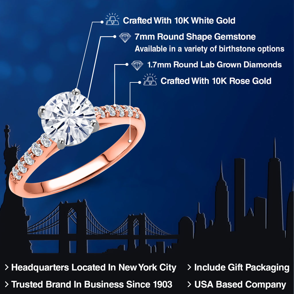 EXQUISITE 7MM ROUND GEMSTONE: This stunning engagement ring features a dazzling 7MM round gemstone, available as a birthstone to celebrate personal milestones with elegance. The gemstone's round shape symbolizes infinity and unity, making it a perfect choice for an engagement ring. Its captivating clarity and brilliance catch the light beautifully, ensuring that this piece remains a timeless symbol of love and commitment.