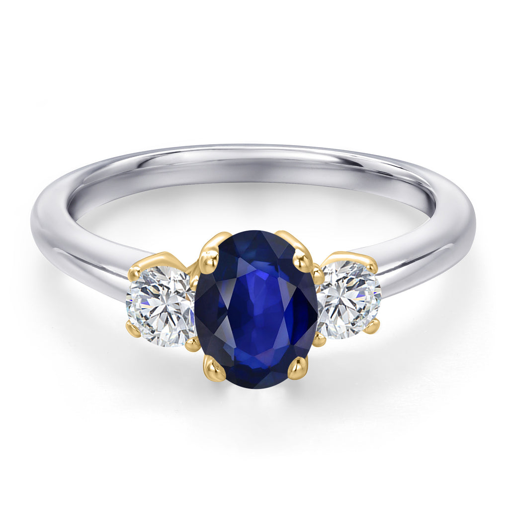 MEASUREMENTS: 7x5mm Oval Diffused Blue Sapphire, 3.5x3.5mm Round E - F Lab Grown Diamond. Total Carat Weight is 0.91 cttw
