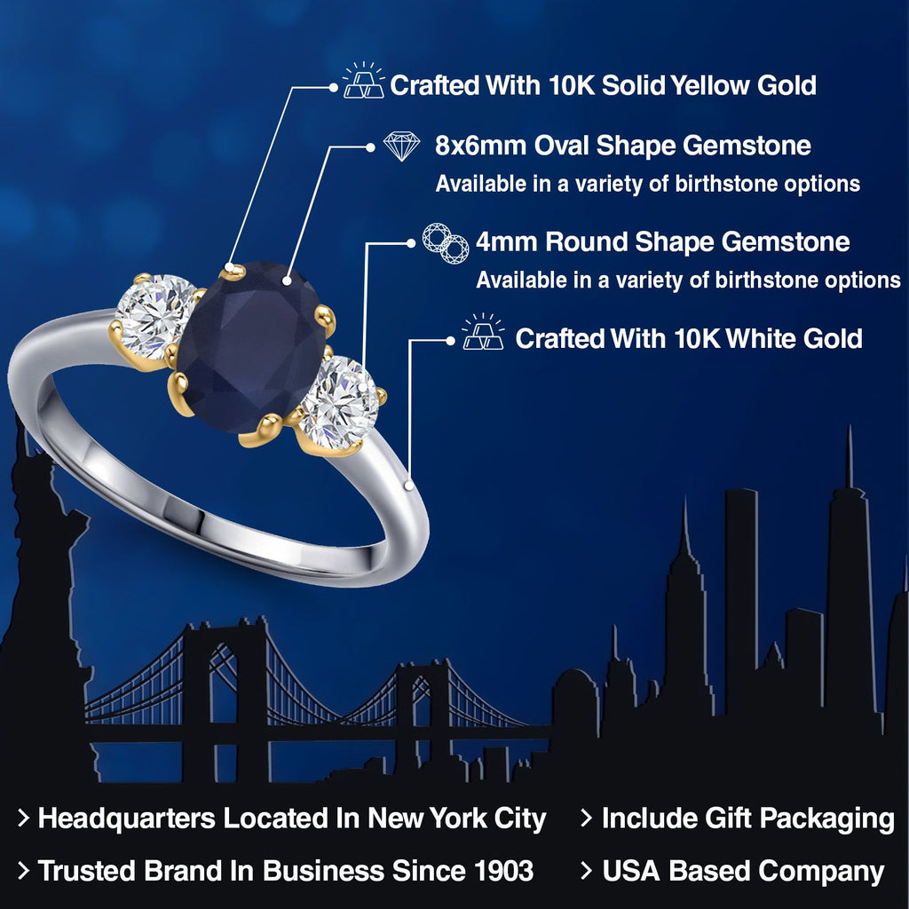 2-Tone Engagement Ring For Women | 925 Silver and 10K Yellow Gold | Gemstone Birthstone | 6MM Cushion Cut | Wedding Anniversary Promise Ring | Available In Size 5, 6, 7, 8, 9