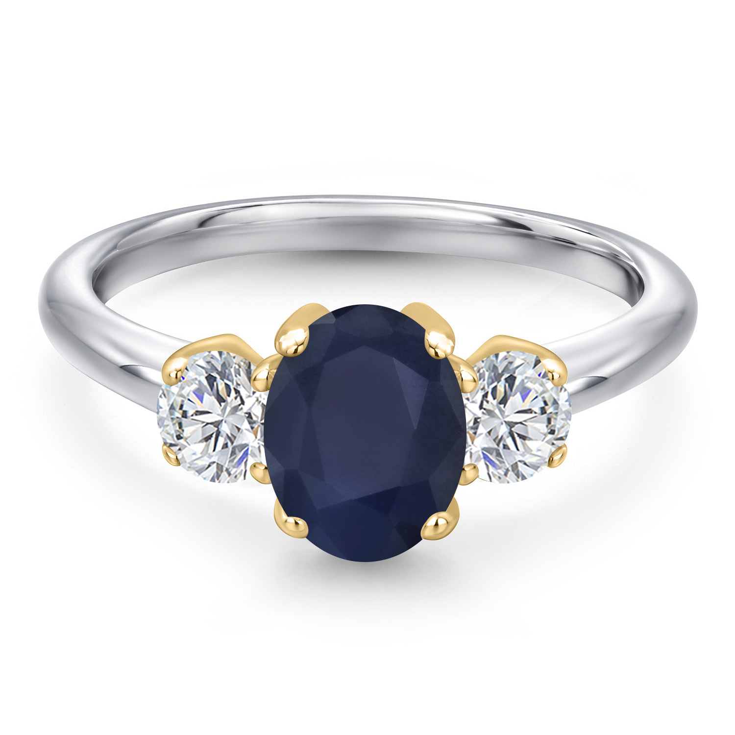MEASUREMENTS: 8x6mm Oval Diffused Blue Sapphire, 4x4mm Round E - F Lab Grown Diamond. Total Carat Weight is 2.34 cttw