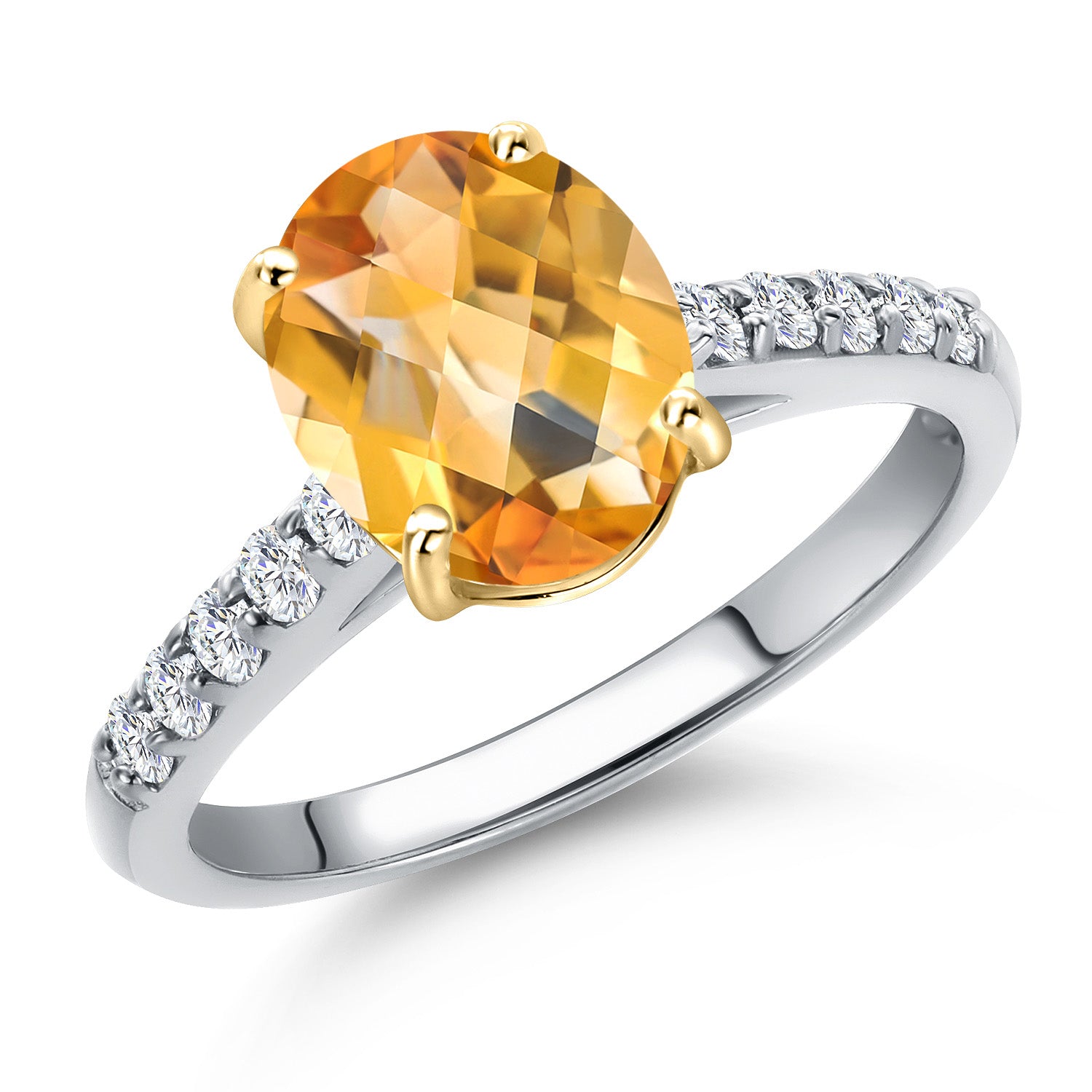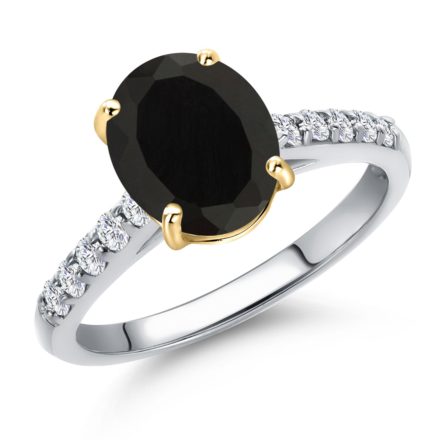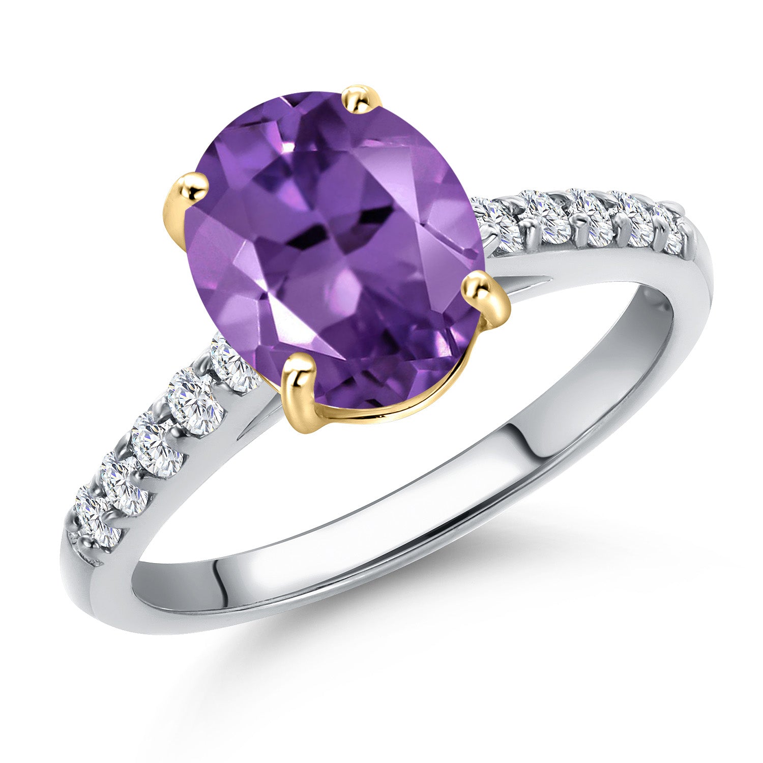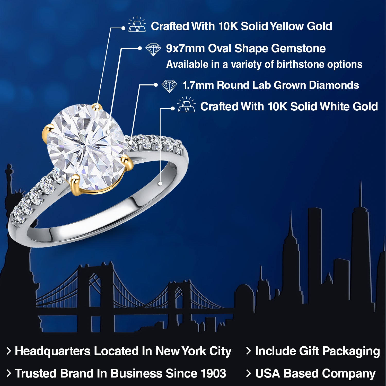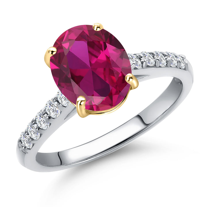 10K Two Tone Gold Oval 9X7MM Gemstone Birthstone and Lab Grown Diamond Engagement Ring For Women | Wedding Anniversary Promise Ring For Women | Size 5,6,7,8,9