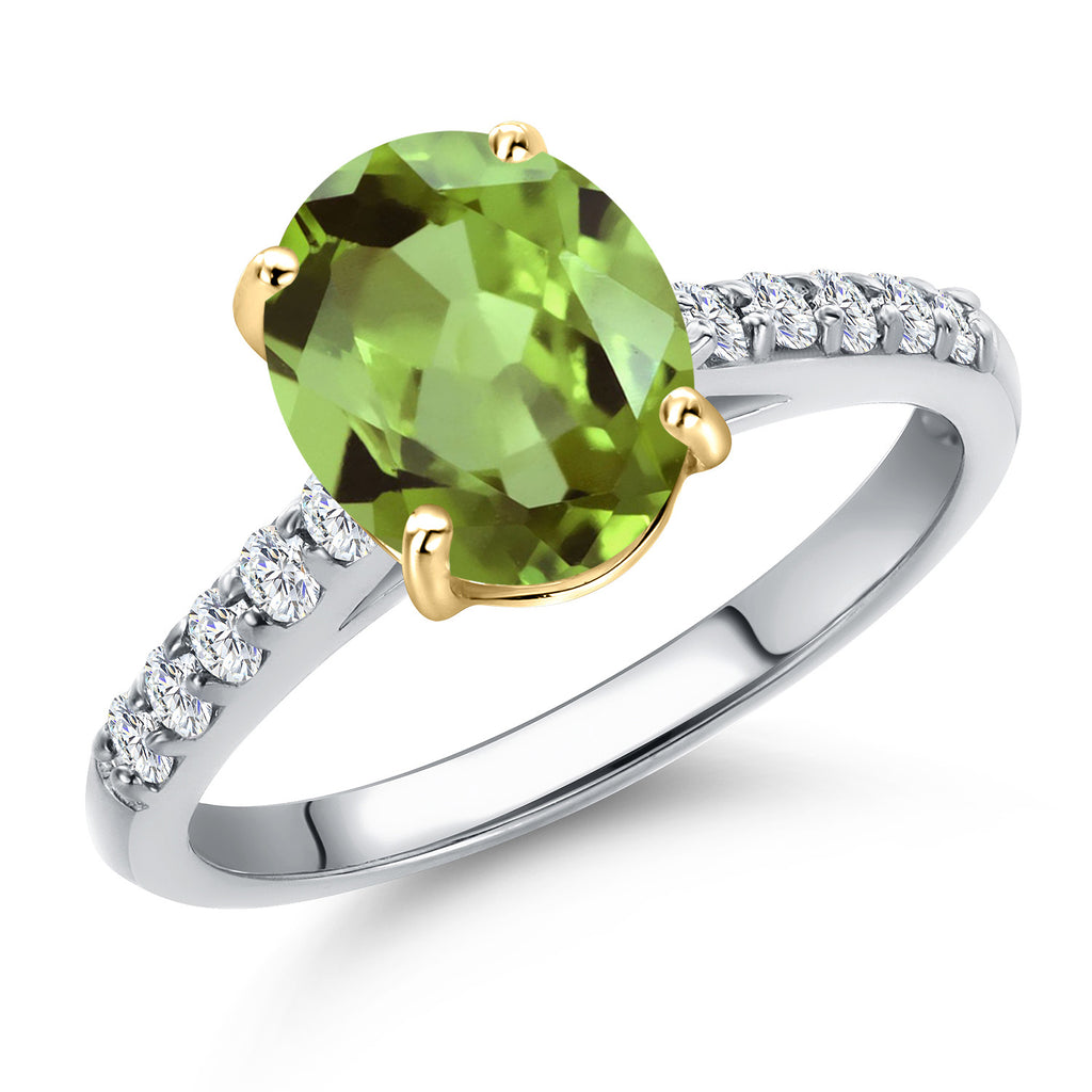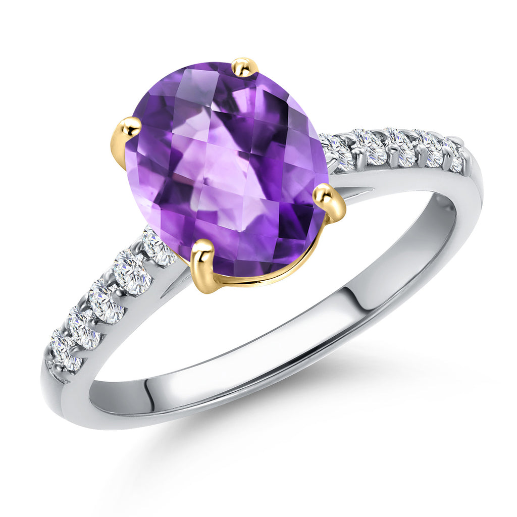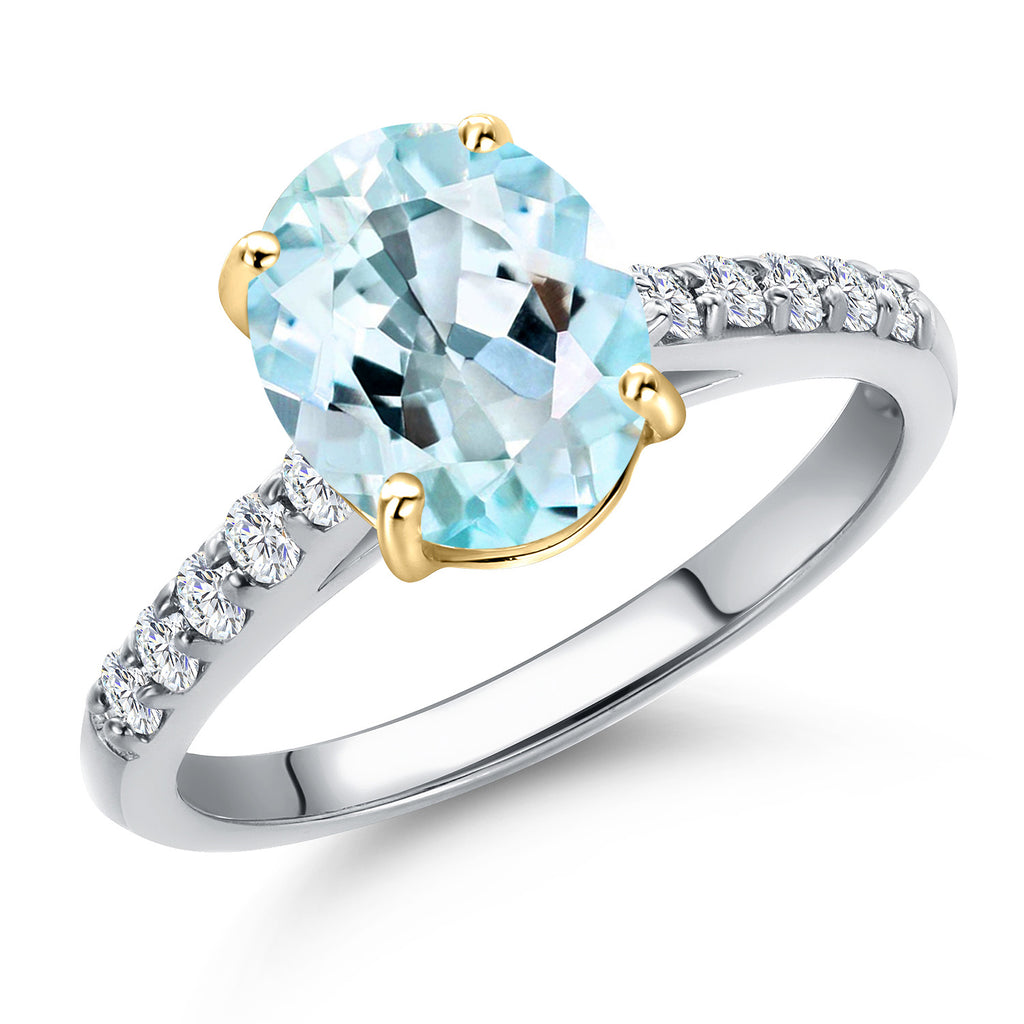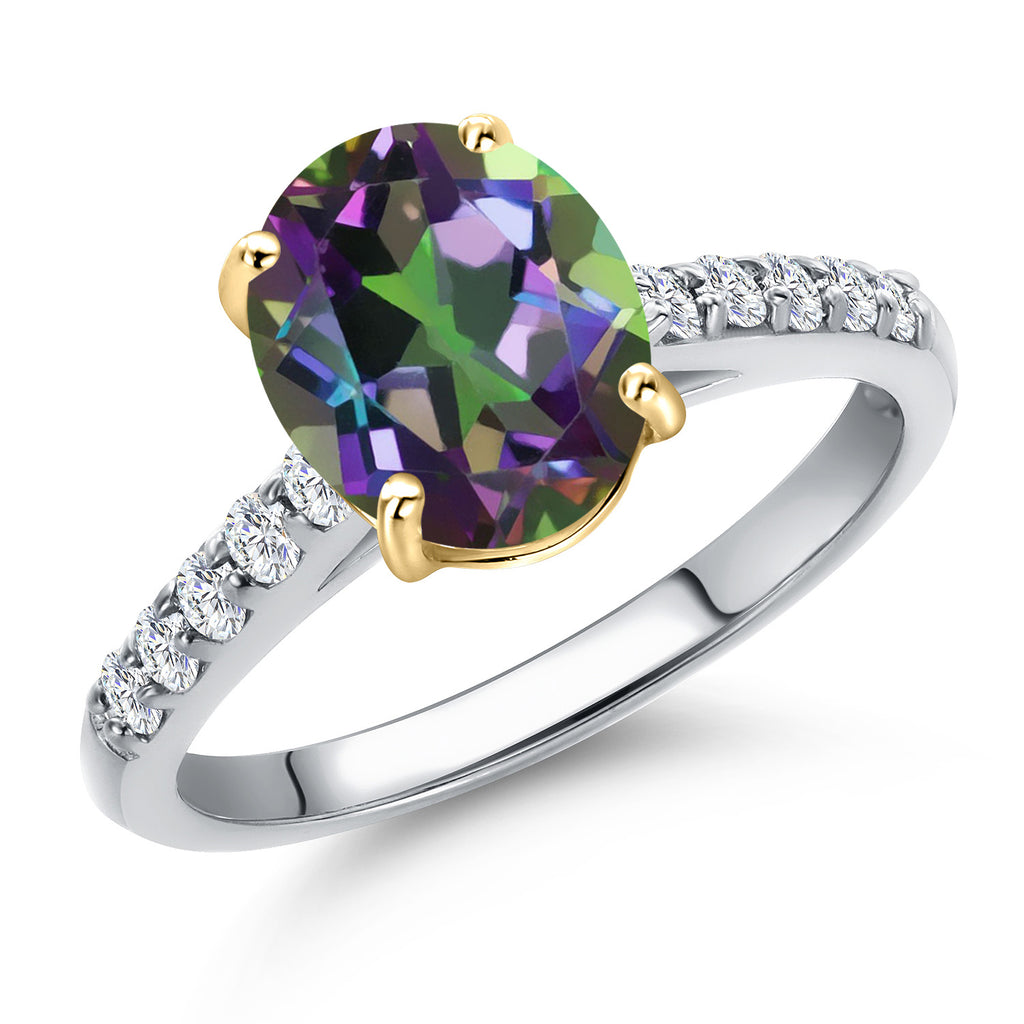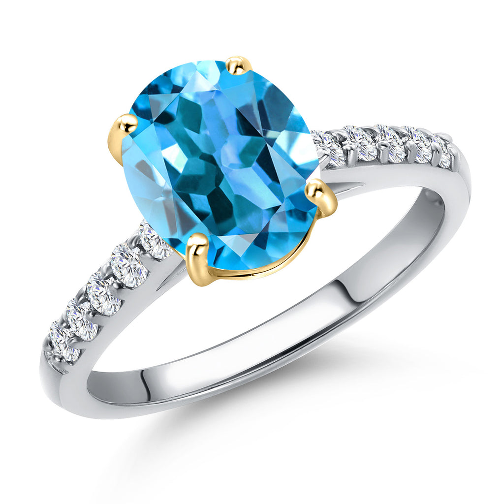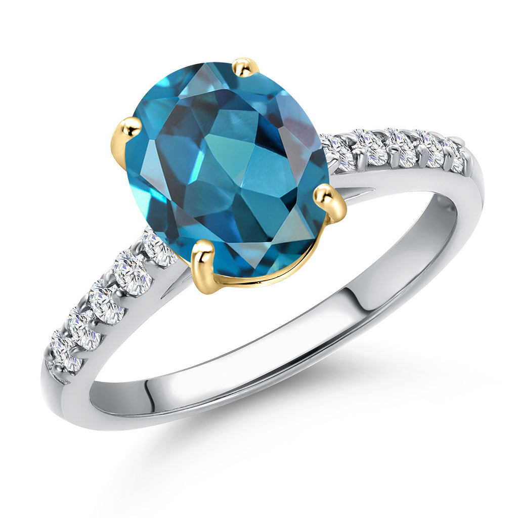 10K Two Tone Gold Oval 9X7MM Gemstone Birthstone and Lab Grown Diamond Engagement Ring For Women | Wedding Anniversary Promise Ring For Women | Size 5,6,7,8,9