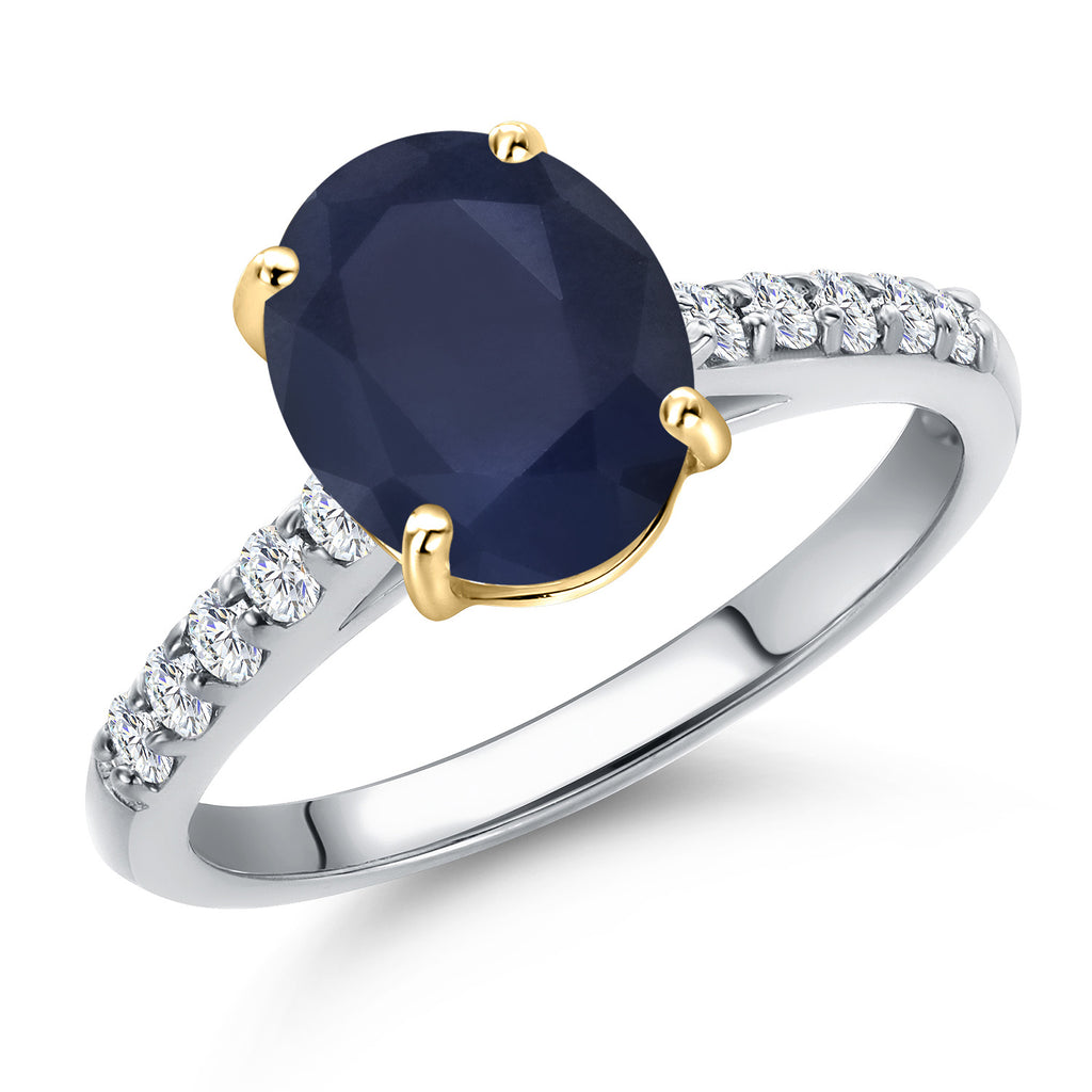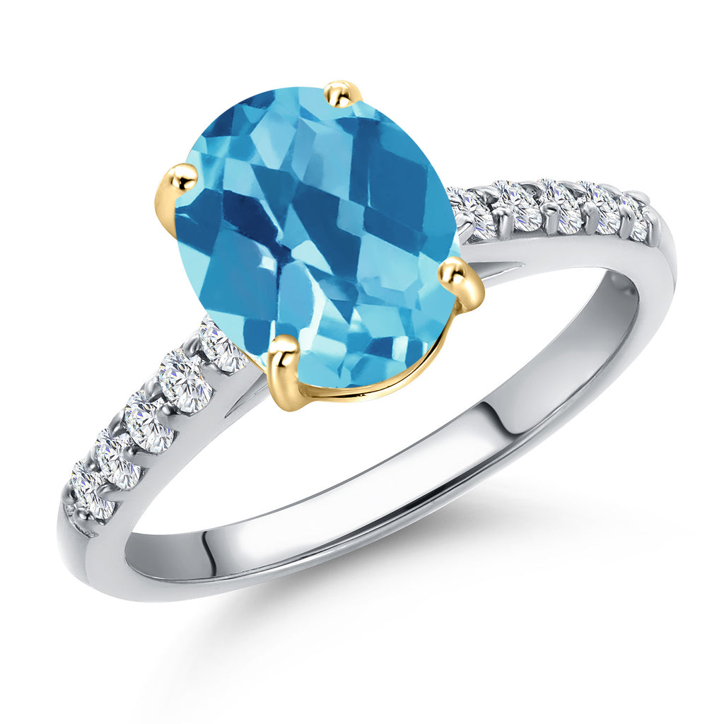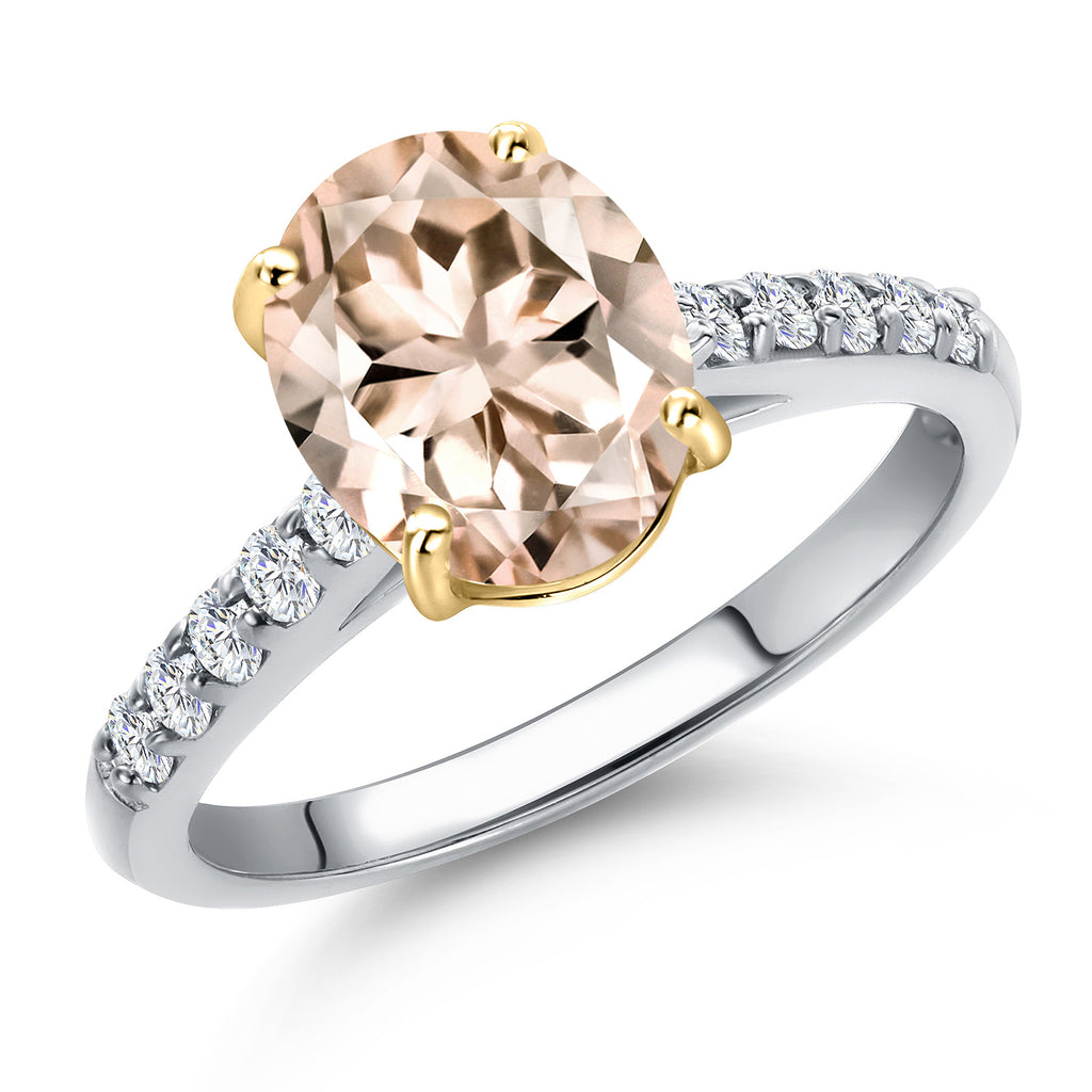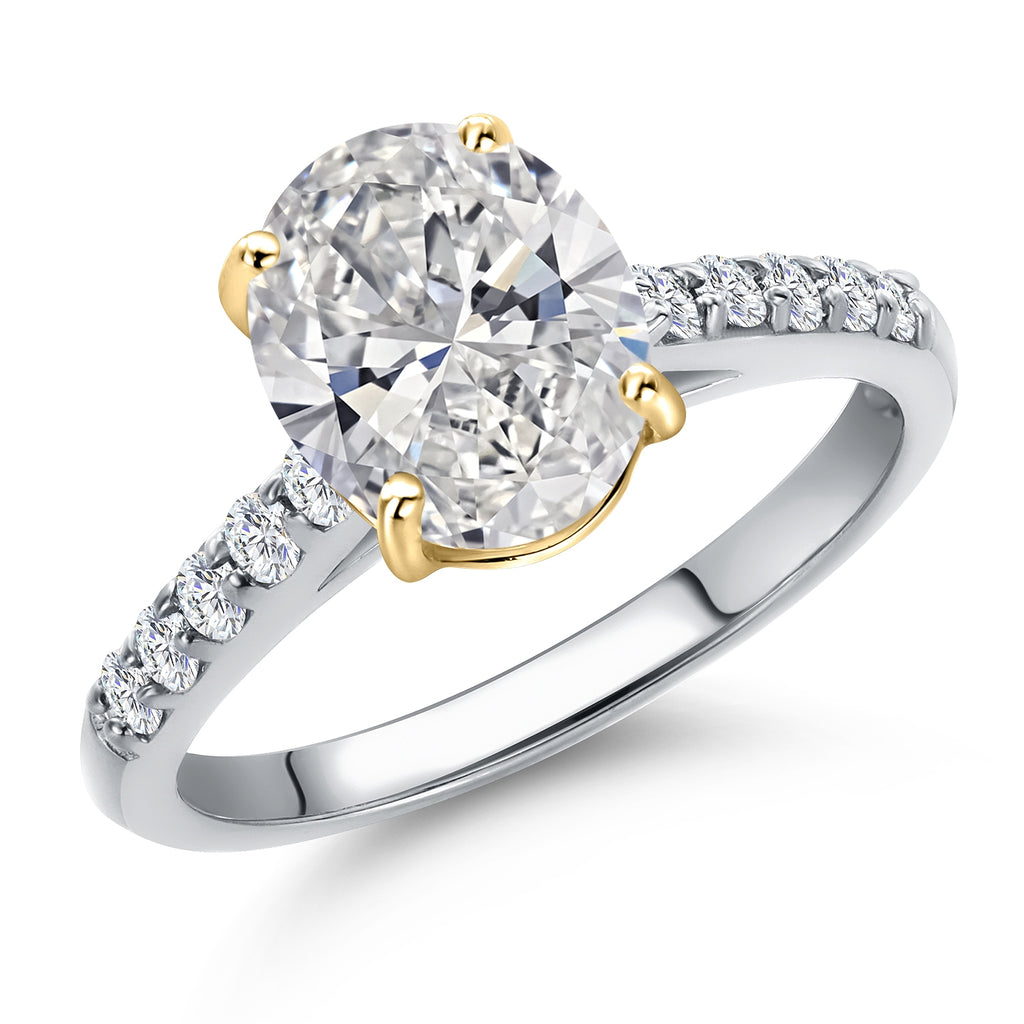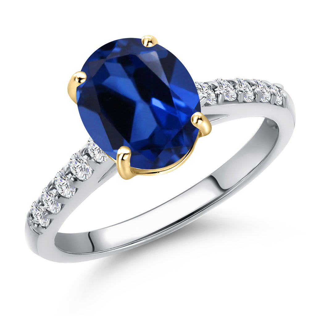 10K Two Tone Gold Oval 9X7MM Gemstone Birthstone and Lab Grown Diamond Engagement Ring For Women | Wedding Anniversary Promise Ring For Women | Size 5,6,7,8,9