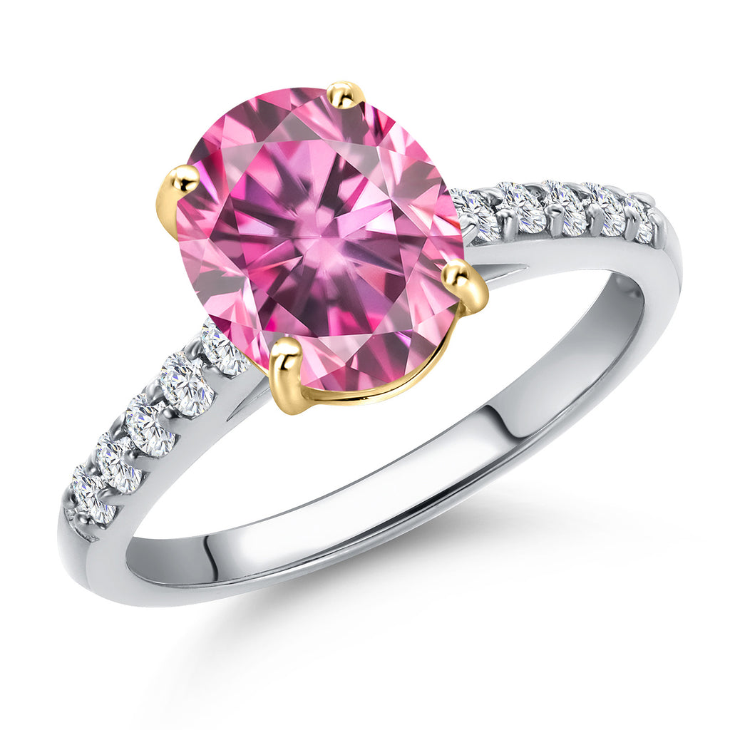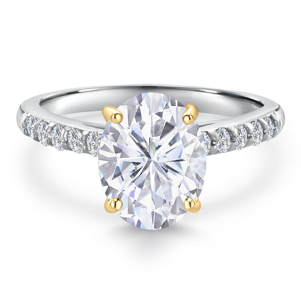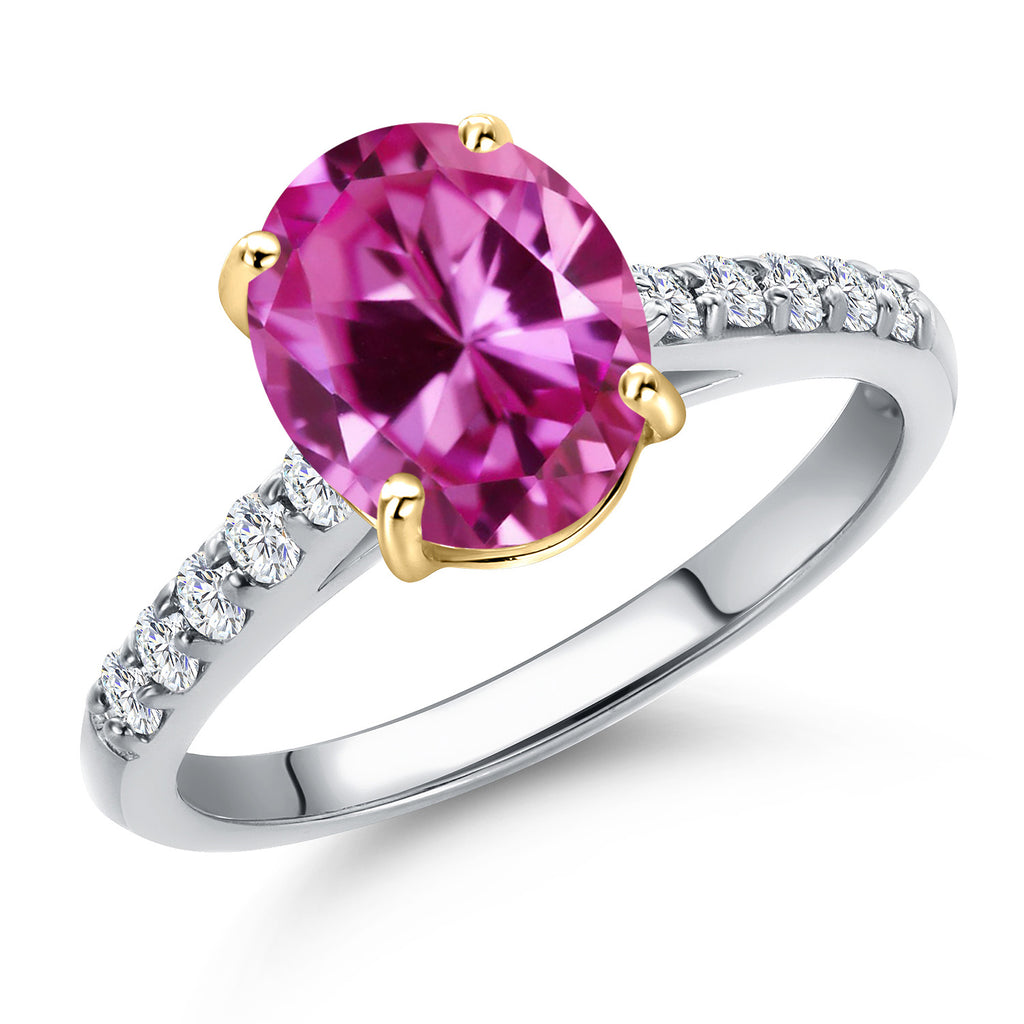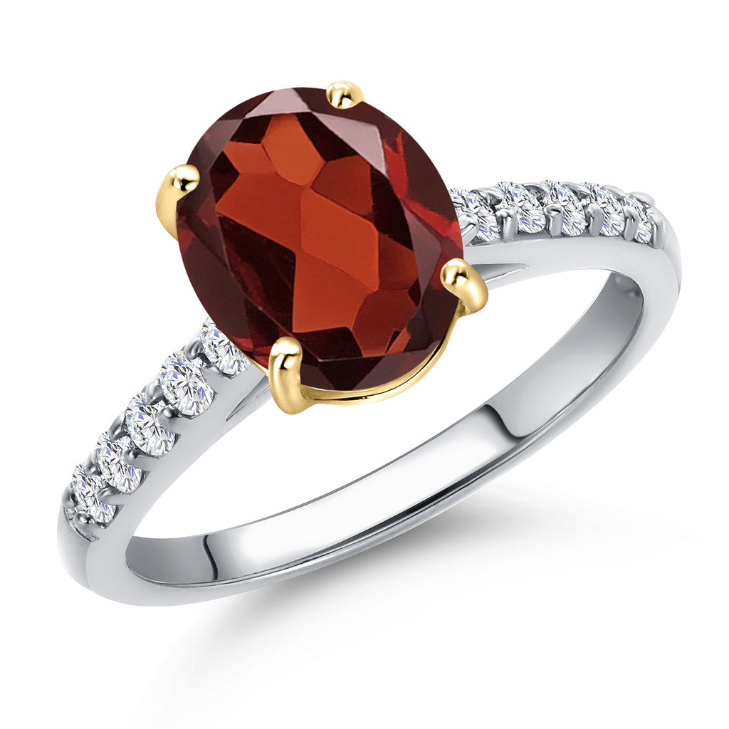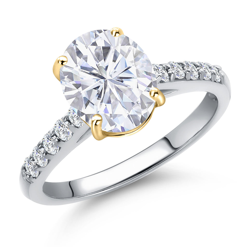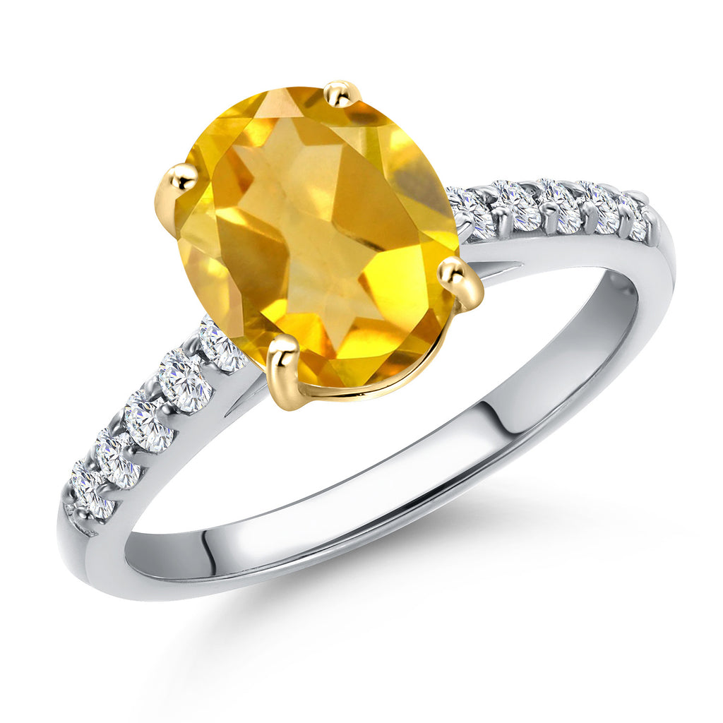 10K Two Tone Gold Oval 9X7MM Gemstone Birthstone and Lab Grown Diamond Engagement Ring For Women | Wedding Anniversary Promise Ring For Women | Size 5,6,7,8,9