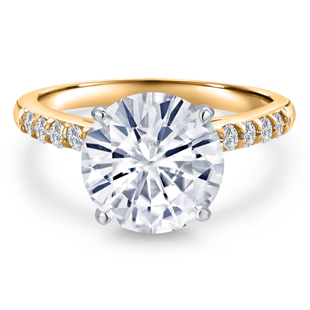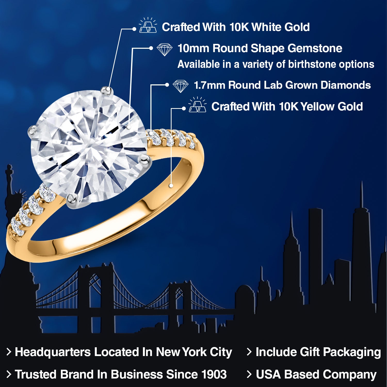 10K Two Tone Gold Round 10MM Gemstone Birthstone and Lab Grown Diamond Engagement Ring For Women | Wedding Anniversary Promise Ring For Women | Size 5,6,7,8,9