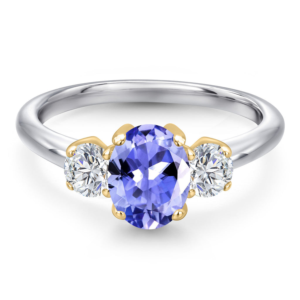 MEASUREMENTS: 8x6mm Oval Heat-Treated Blue Tanzanite, 4x4mm Round E - F Lab Grown Diamond. Total Carat Weight is 1.7 cttw