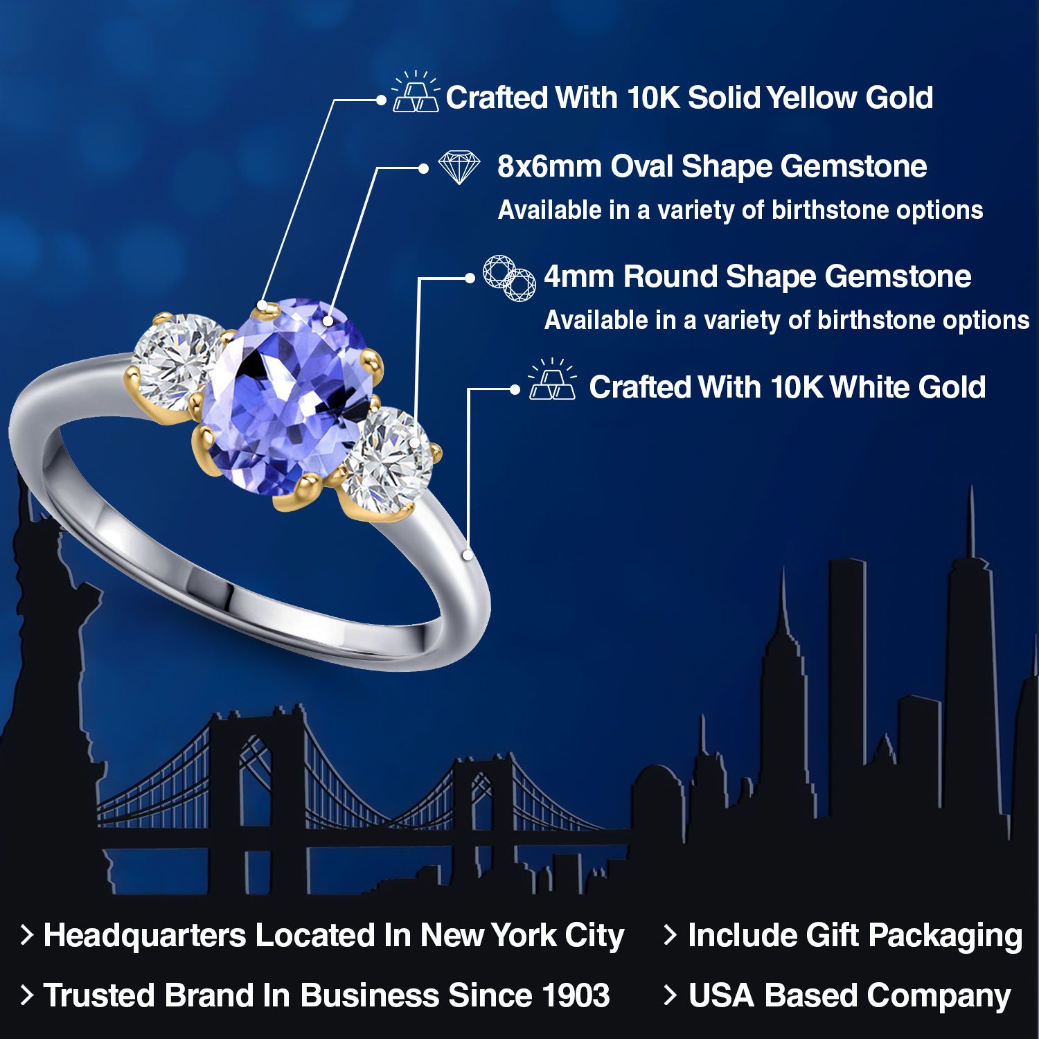 2-Tone Engagement Ring For Women | 925 Silver and 10K Yellow Gold | Gemstone Birthstone | 6MM Cushion Cut | Wedding Anniversary Promise Ring | Available In Size 5, 6, 7, 8, 9