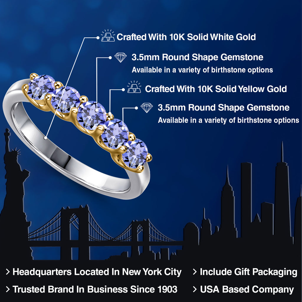 2-Tone Engagement Ring For Women | 925 Silver and 10K Yellow Gold | Gemstone Birthstone | 6MM Cushion Cut | Wedding Anniversary Promise Ring | Available In Size 5, 6, 7, 8, 9