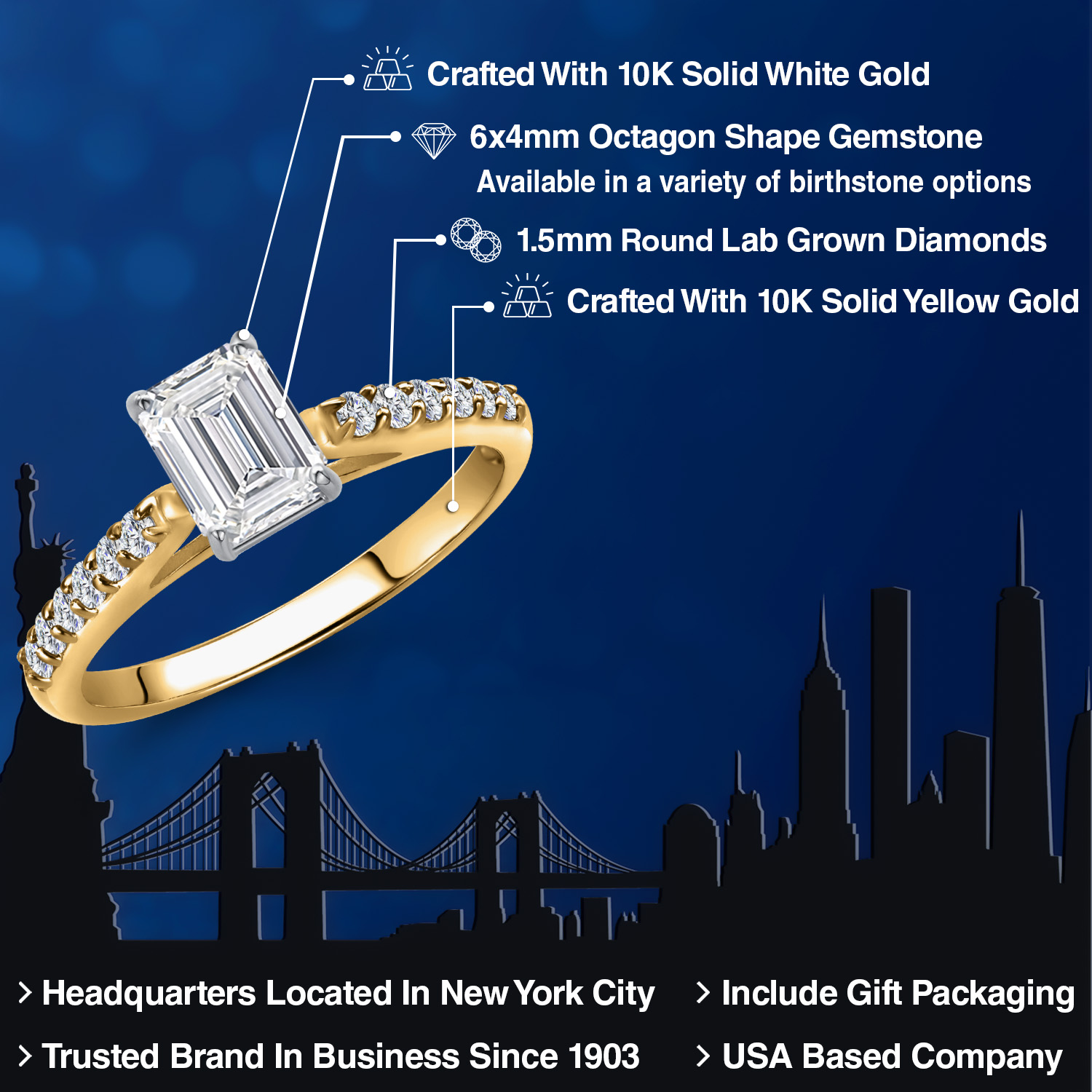 ELEGANT 10K TWO-TONE GOLD SETTING: Crafted in a luxurious blend of 10K yellow and white gold, this ring blends classic warmth with modern refinement. The contrasting metals enhance the diamond’s icy sparkle, while offering durability and long-lasting shine. Hypoallergenic and comfortable, it's ideal for everyday wear and lasting elegance.