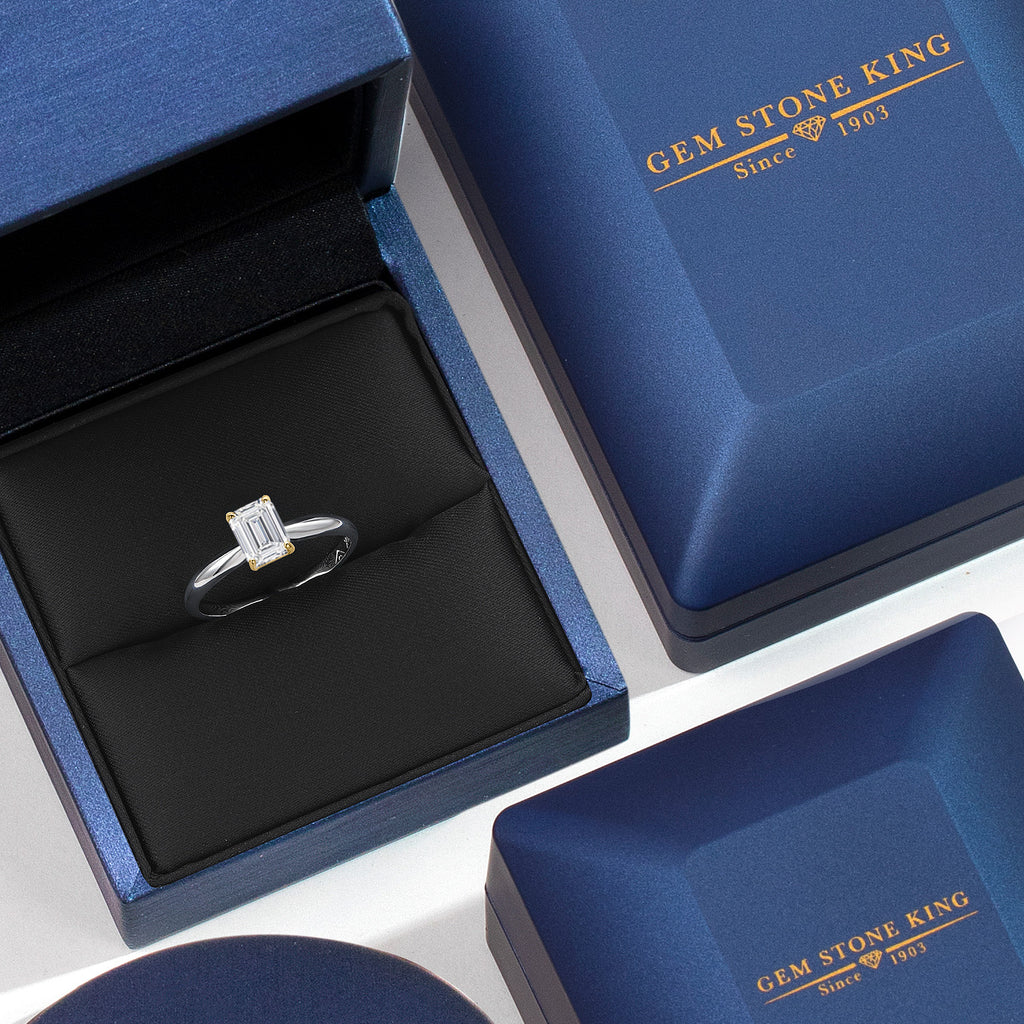 0.65 CARAT EMERALD-CUT LAB GROWN DIAMOND CENTER: Featuring a sophisticated 6x4MM emerald-cut lab grown diamond totaling 0.65 carats, this engagement ring dazzles with sleek lines and mirror-like facets. With its DEF color and VVS–VS clarity, the April birthstone radiates ethical brilliance, representing love that is as enduring as it is beautiful.
