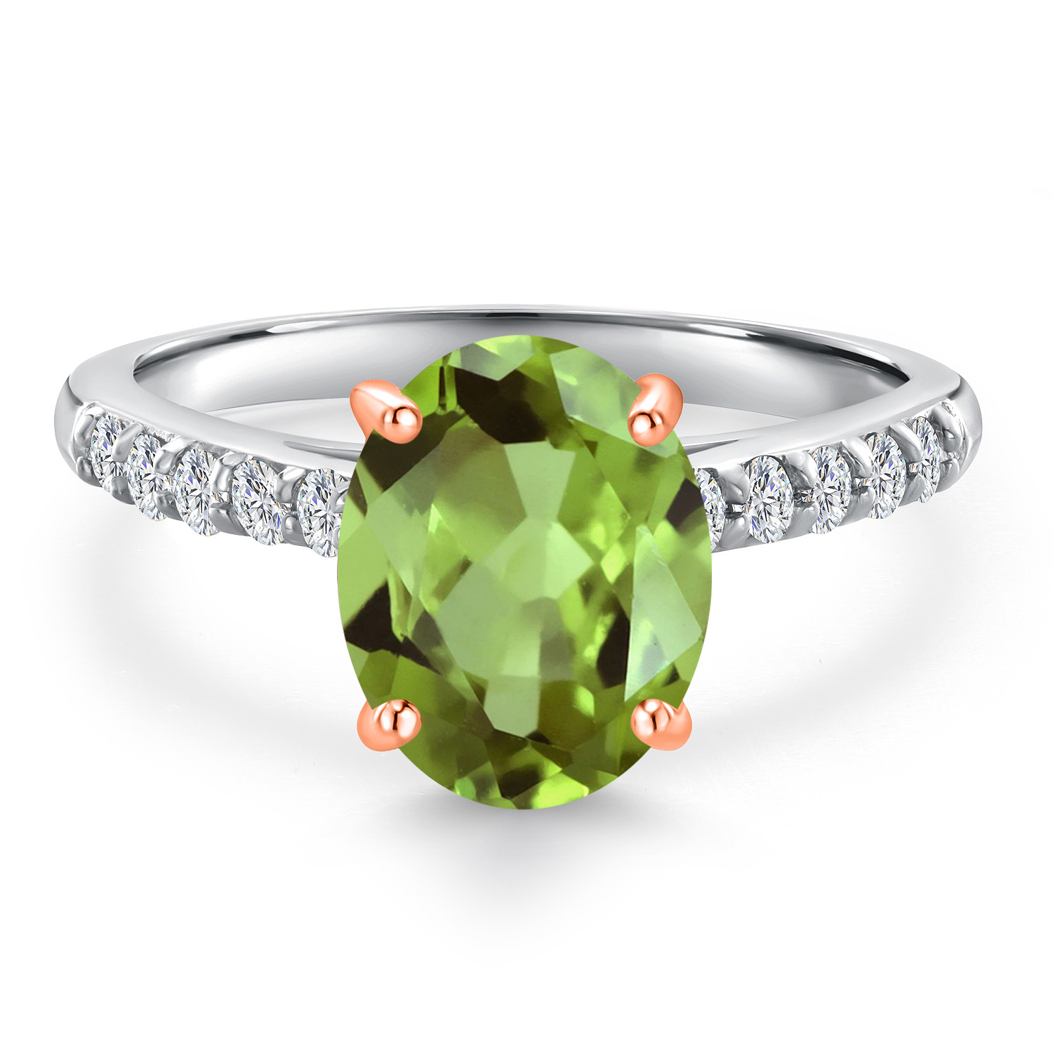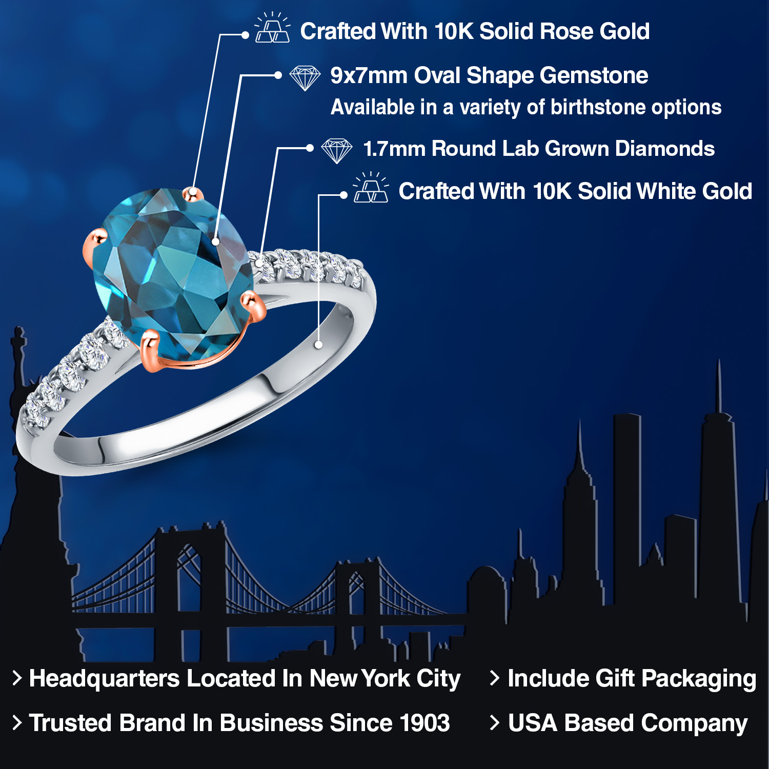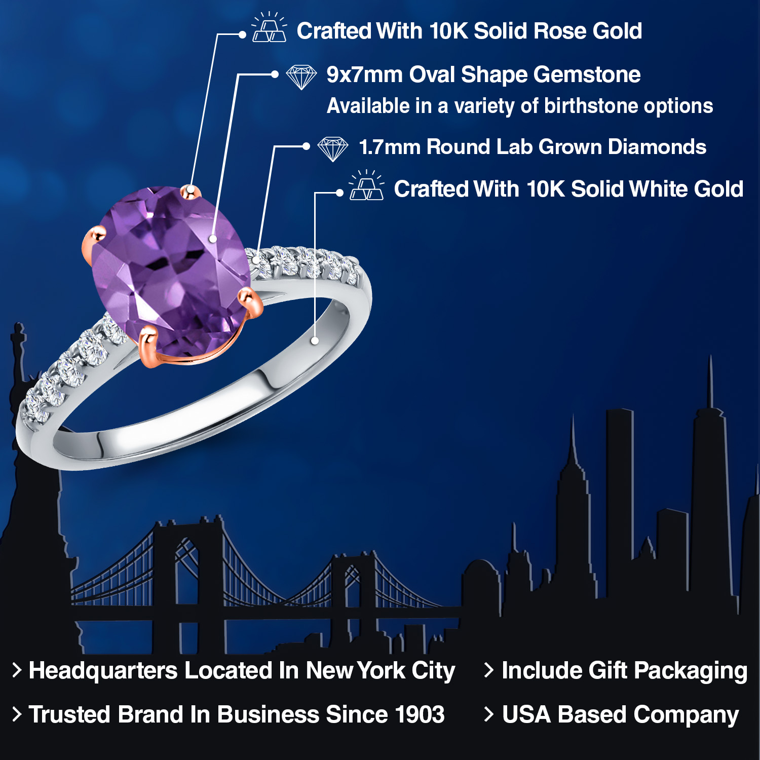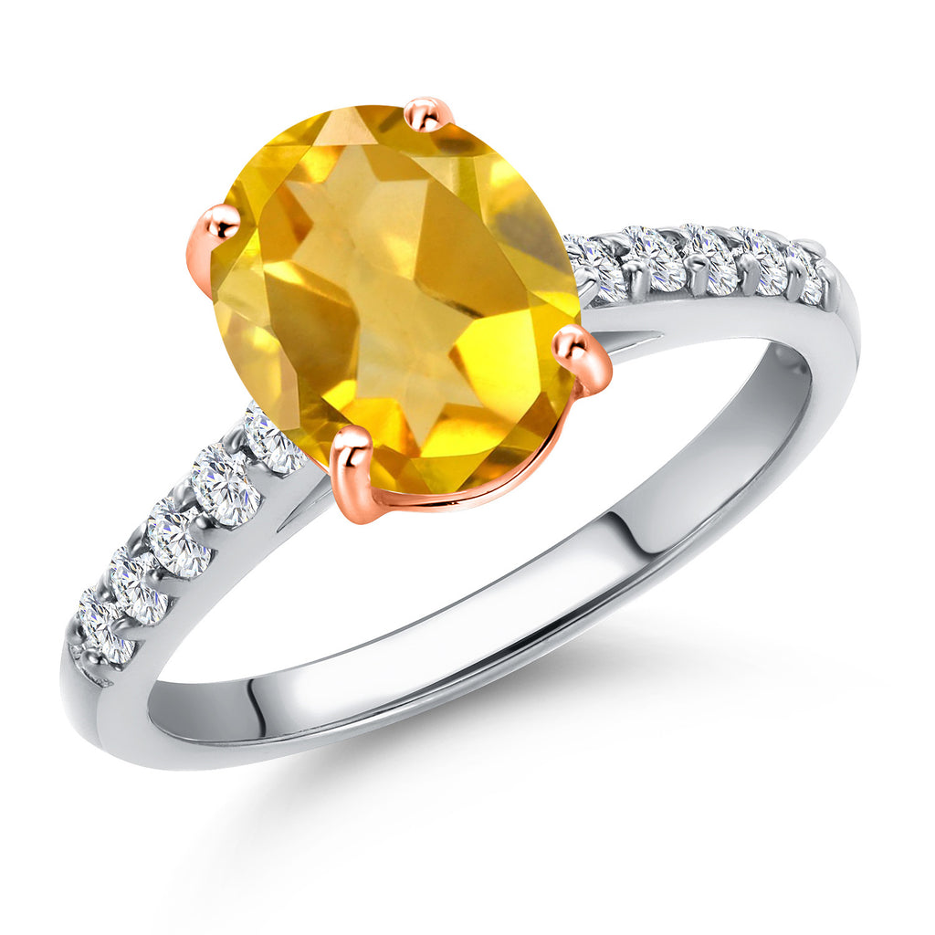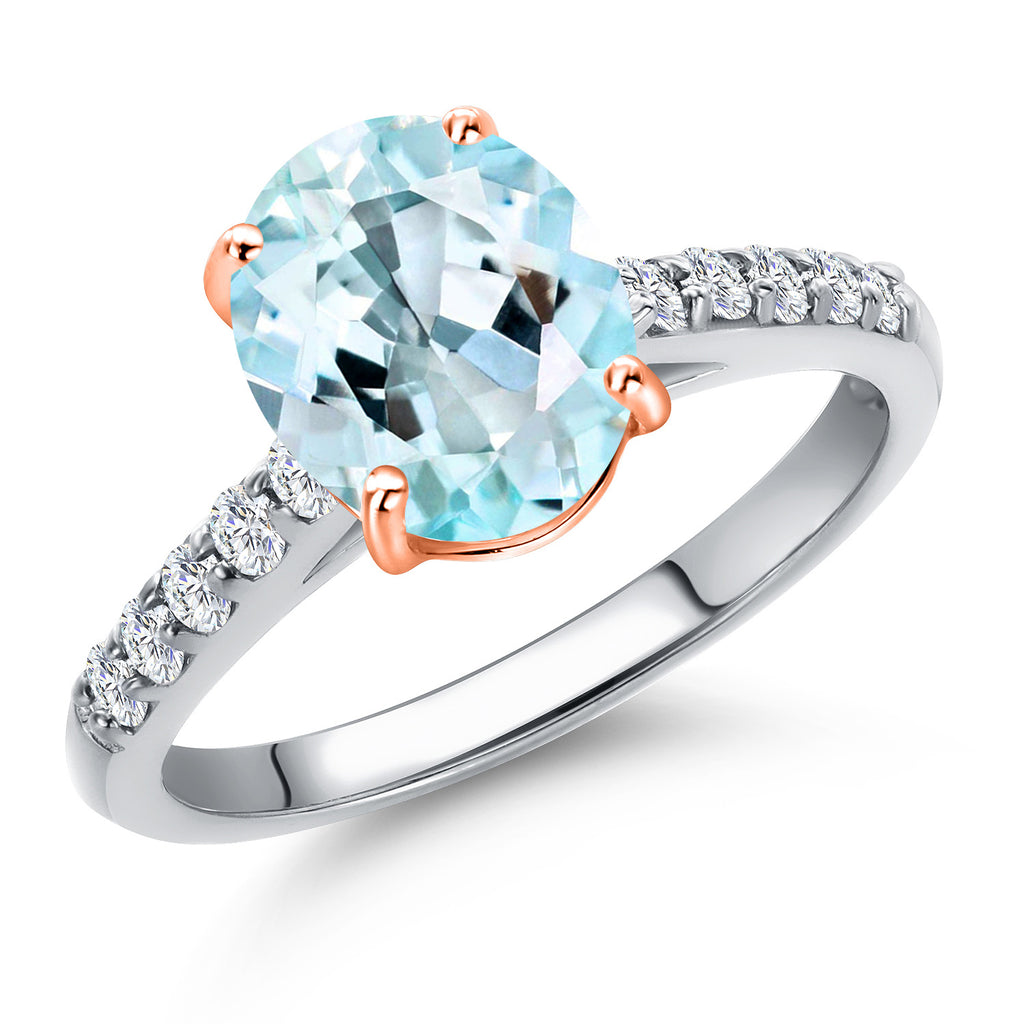 10K Two Tone Gold Gemstone Birthstone and White Lab Grown Diamond Accent Engagement Ring For Women | Oval 9X7MM and Round 1.7MM | Wedding Anniversary Promise Ring | Sizes 5, 6, 7, 8, 9