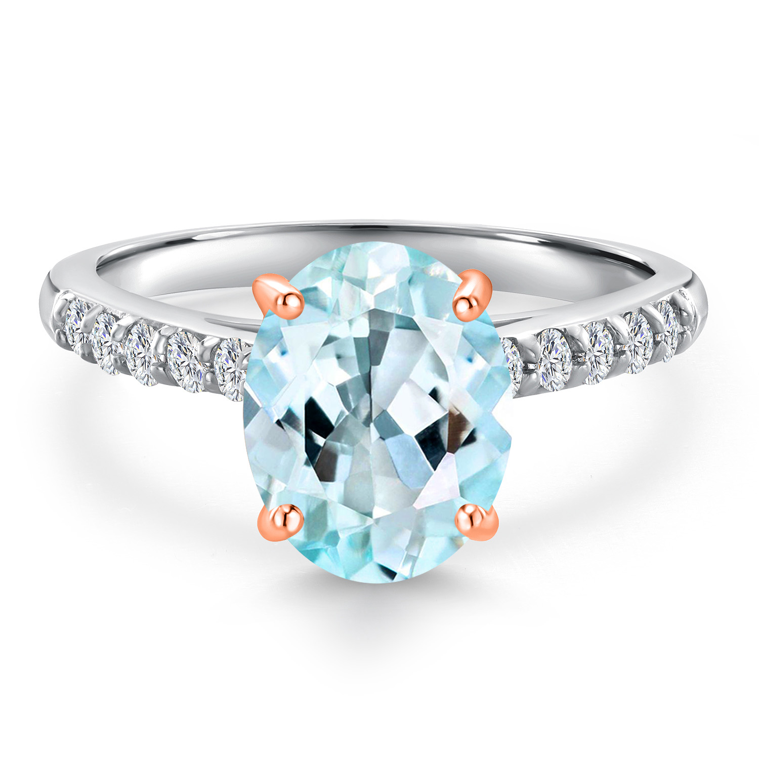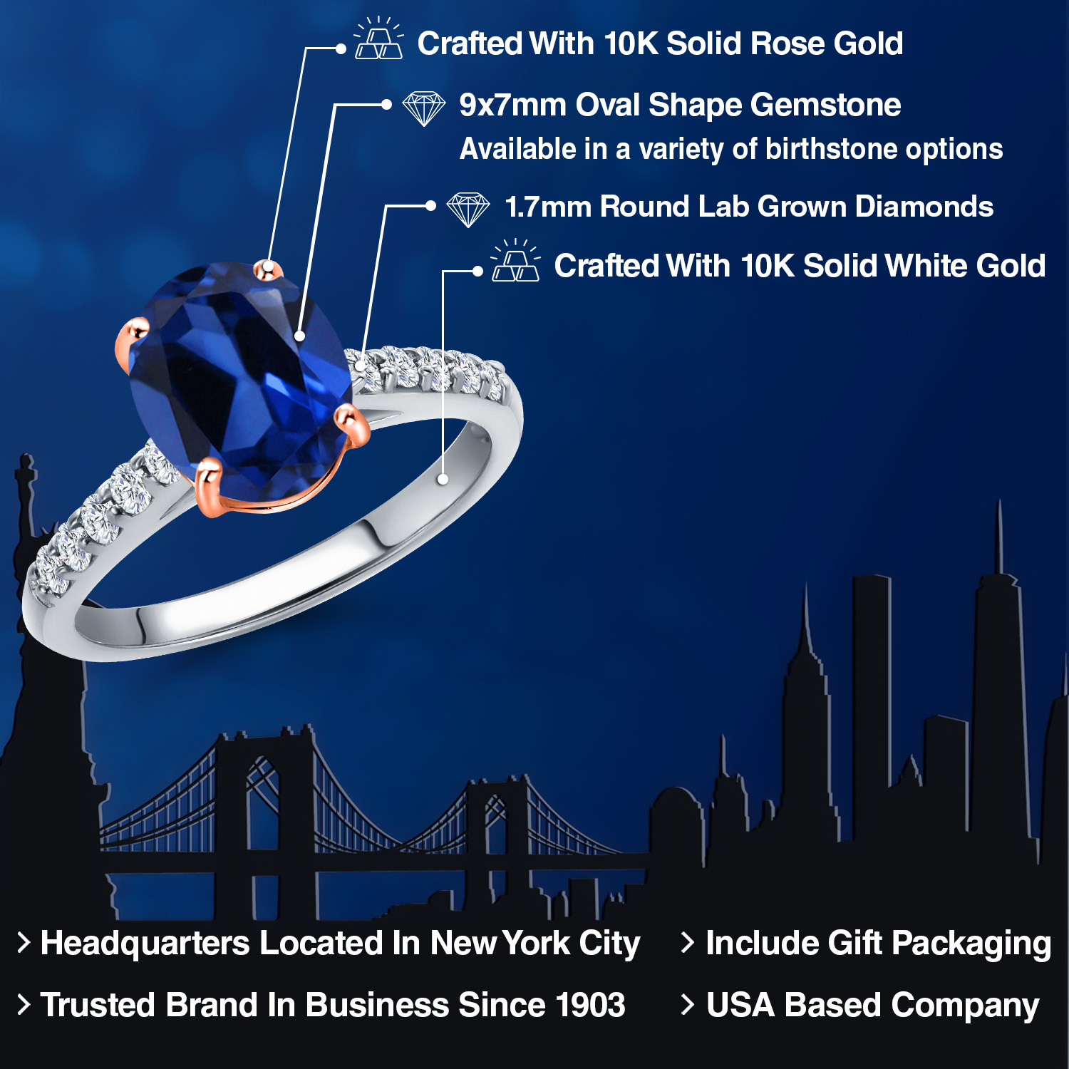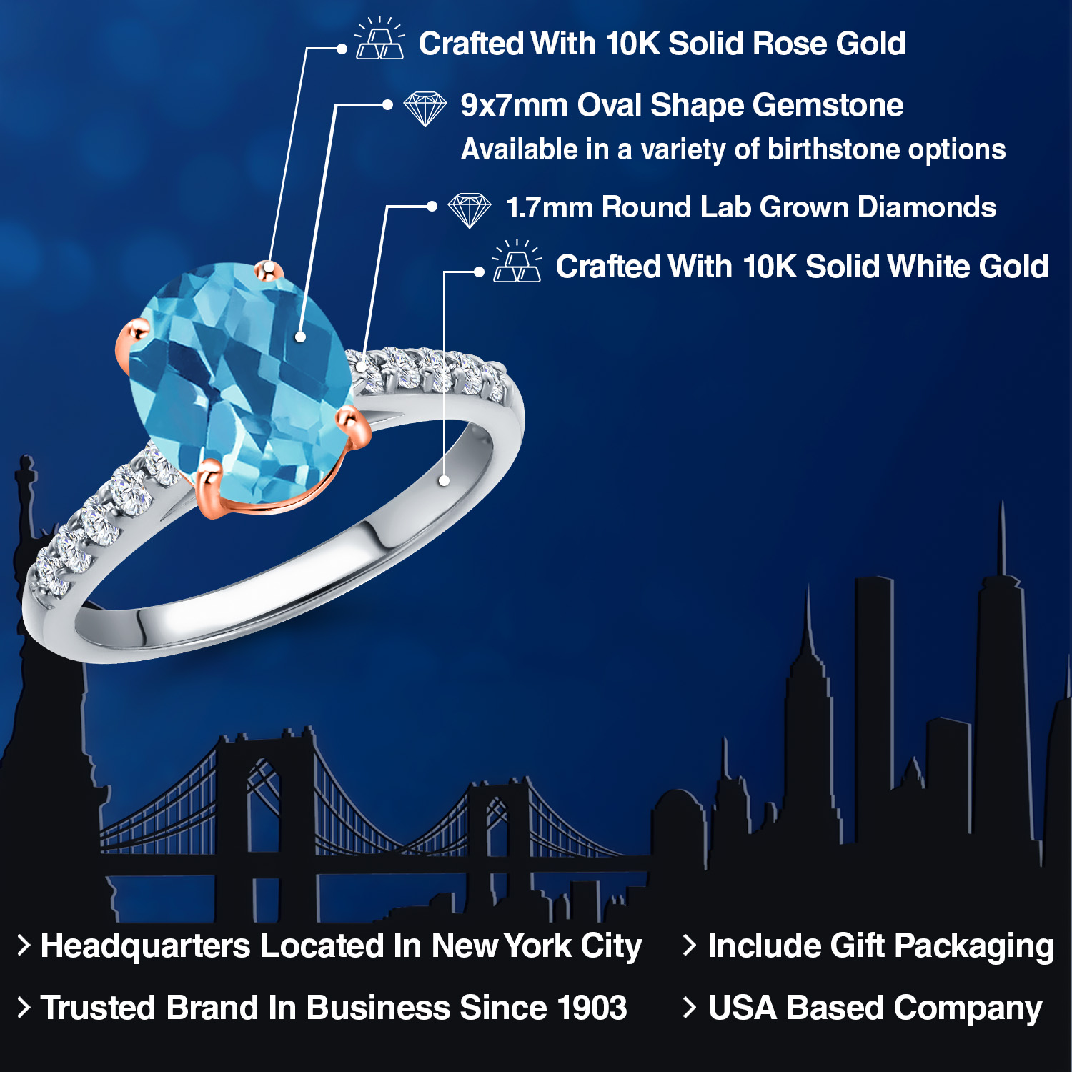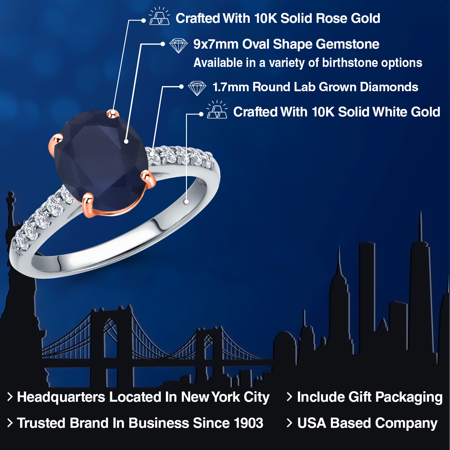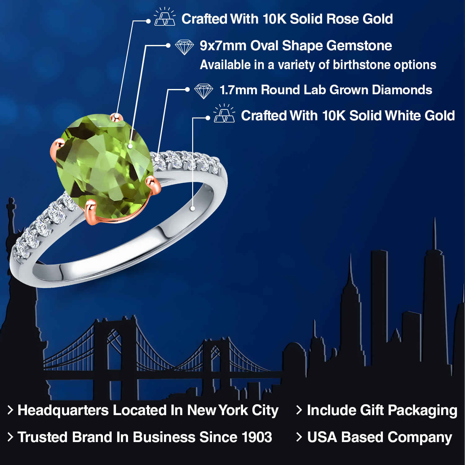 10K Two Tone Gold Gemstone Birthstone and White Lab Grown Diamond Accent Engagement Ring For Women | Oval 9X7MM and Round 1.7MM | Wedding Anniversary Promise Ring | Sizes 5, 6, 7, 8, 9