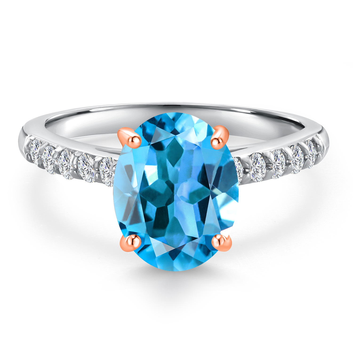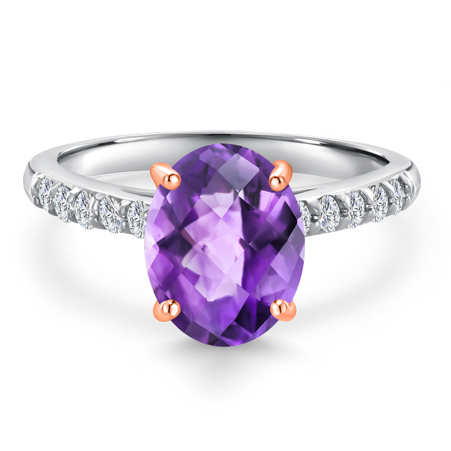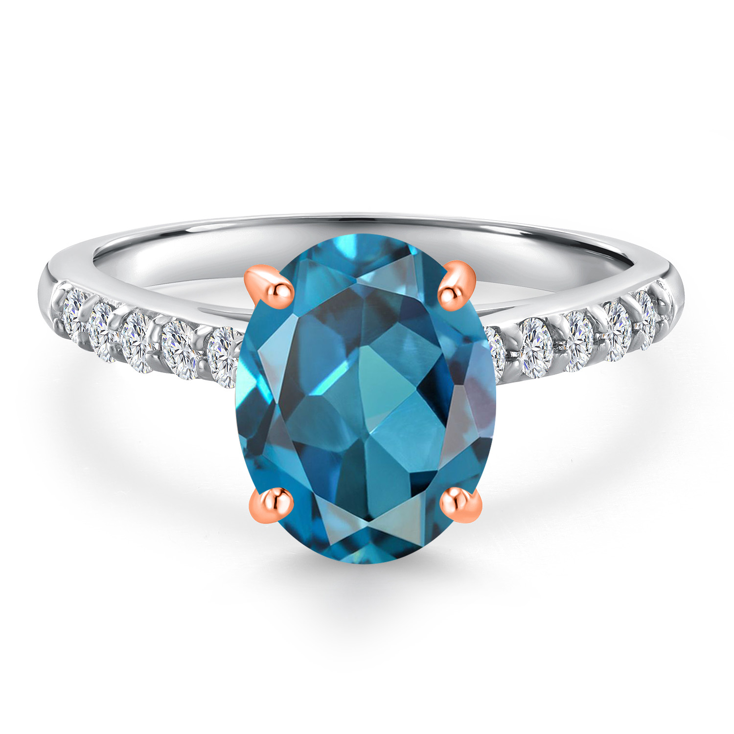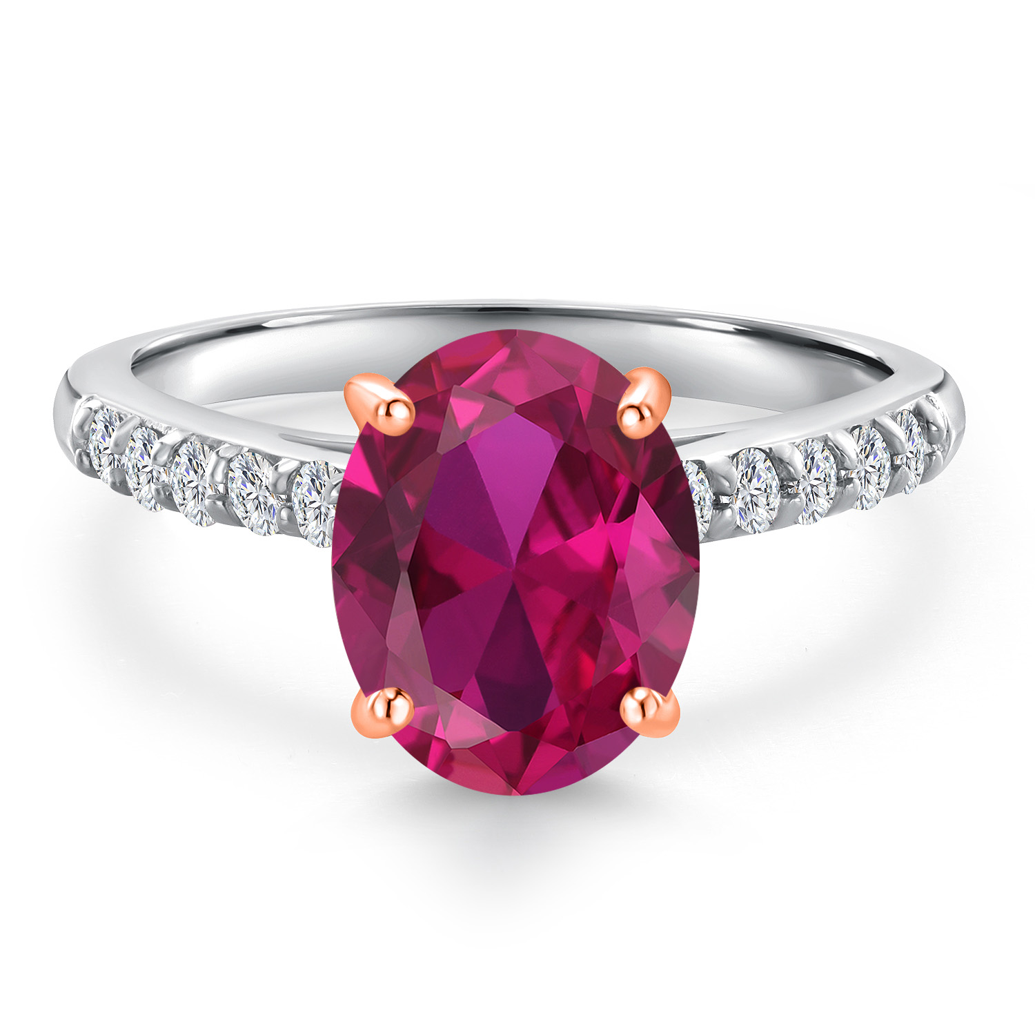 10K Two Tone Gold Gemstone Birthstone and White Lab Grown Diamond Accent Engagement Ring For Women | Oval 9X7MM and Round 1.7MM | Wedding Anniversary Promise Ring | Sizes 5, 6, 7, 8, 9