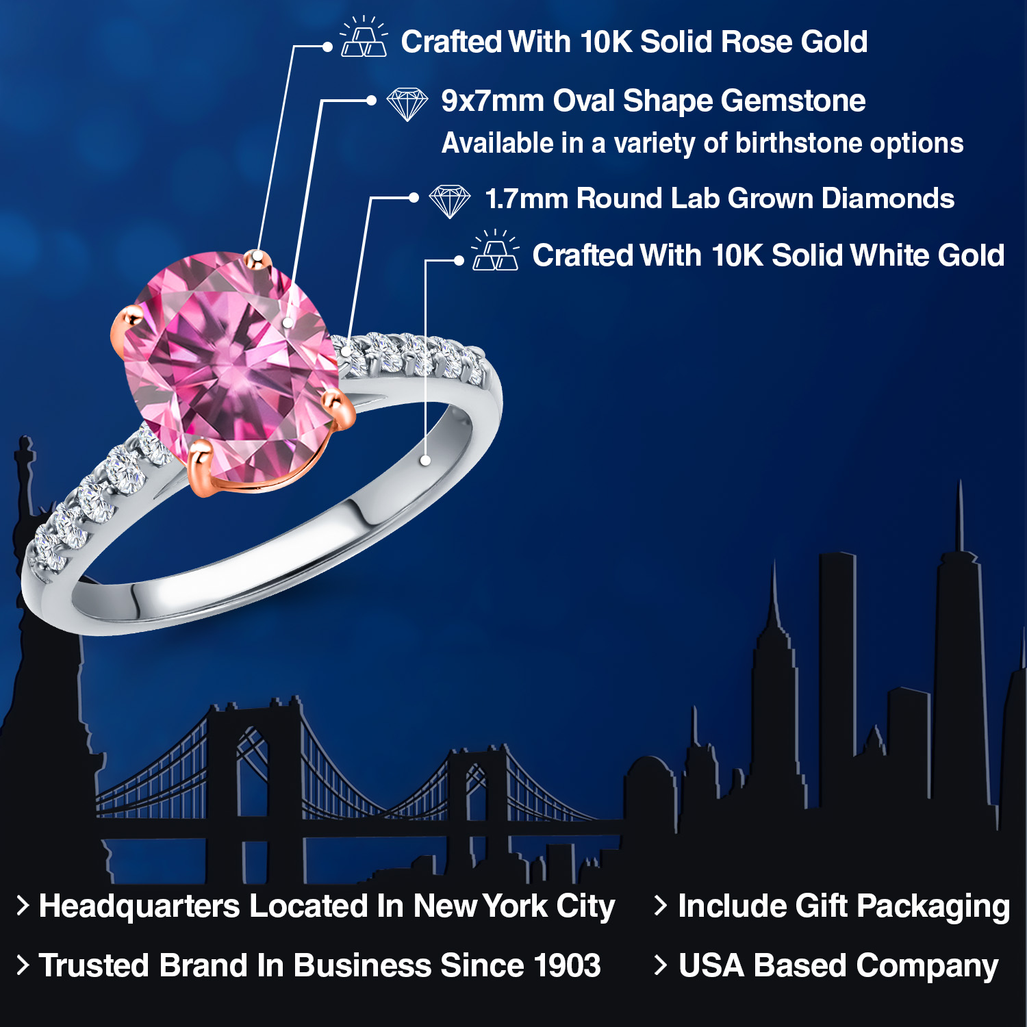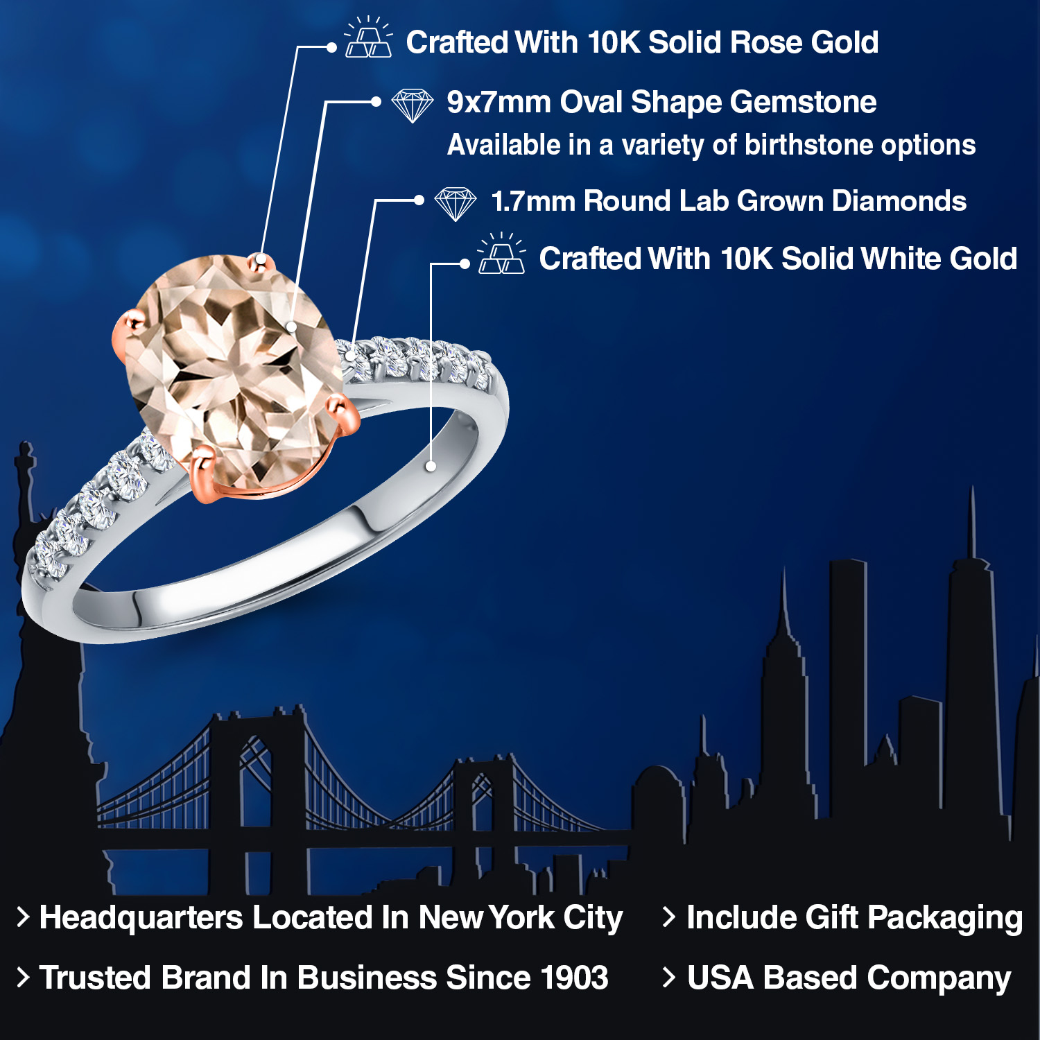 10K TWO TONE GOLD ELEGANCE: Crafted with precision, this ring boasts a harmonious blend of rose gold prongs and a white gold band, creating a stunning visual contrast that enhances the gemstone's allure. The 10K gold ensures durability while maintaining a lightweight feel, perfect for everyday wear. This hypoallergenic metal is gentle on the skin, offering both beauty and comfort for those with sensitive skin, ensuring a worry-free experience.