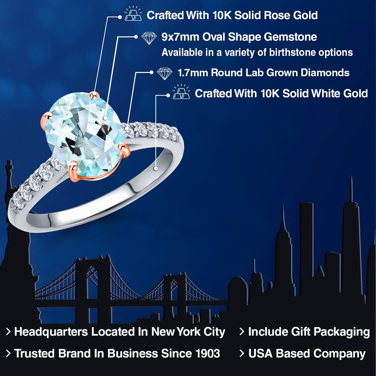 OVAL GEMSTONE BRILLIANCE: This exquisite engagement ring features a captivating 9x7MM oval gemstone, elegantly set to showcase its natural brilliance. With birthstone options available, each stone is handpicked for its exceptional clarity and vibrant hue, offering a personal touch that resonates with your unique story. The oval shape, known for its elongating effect, adds a touch of sophistication and grace, making it a timeless choice for any occasion.