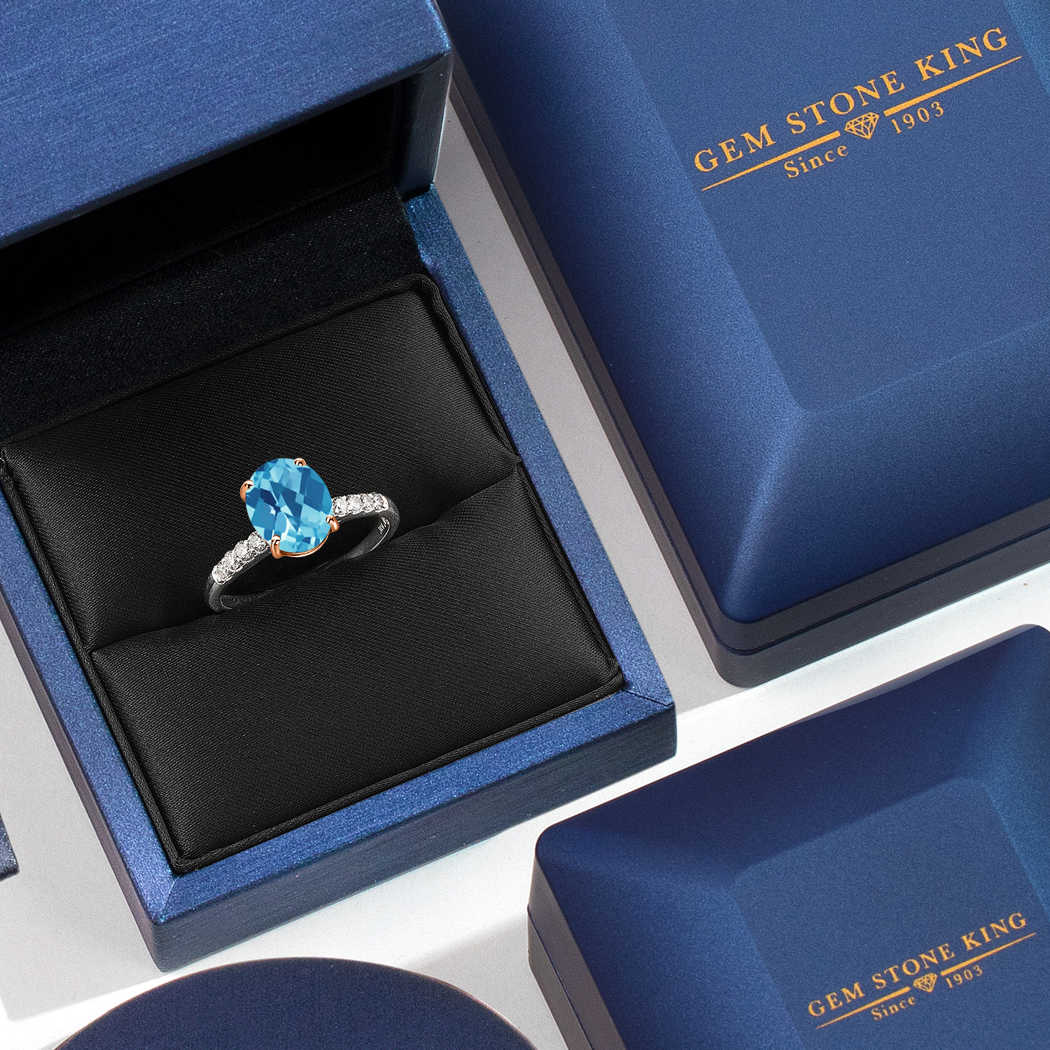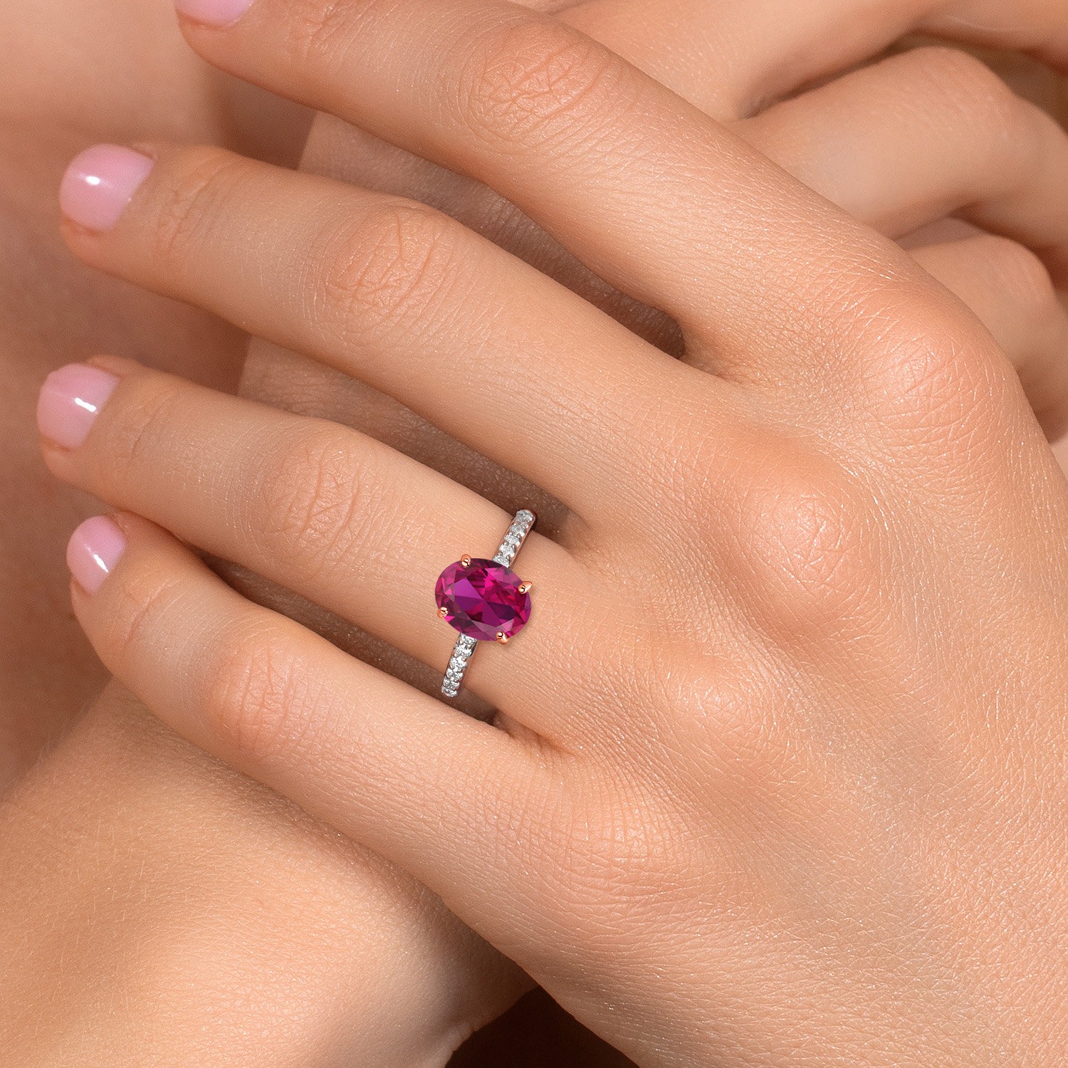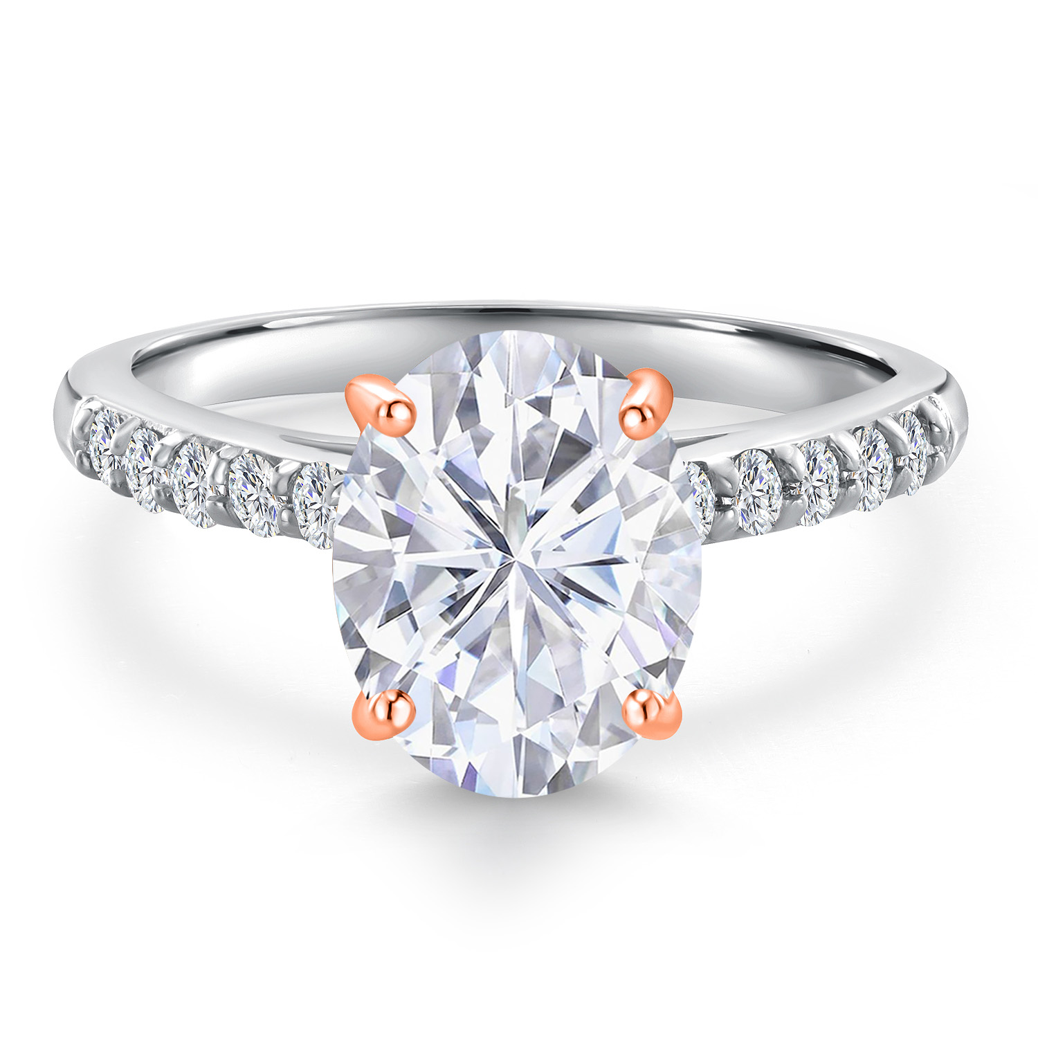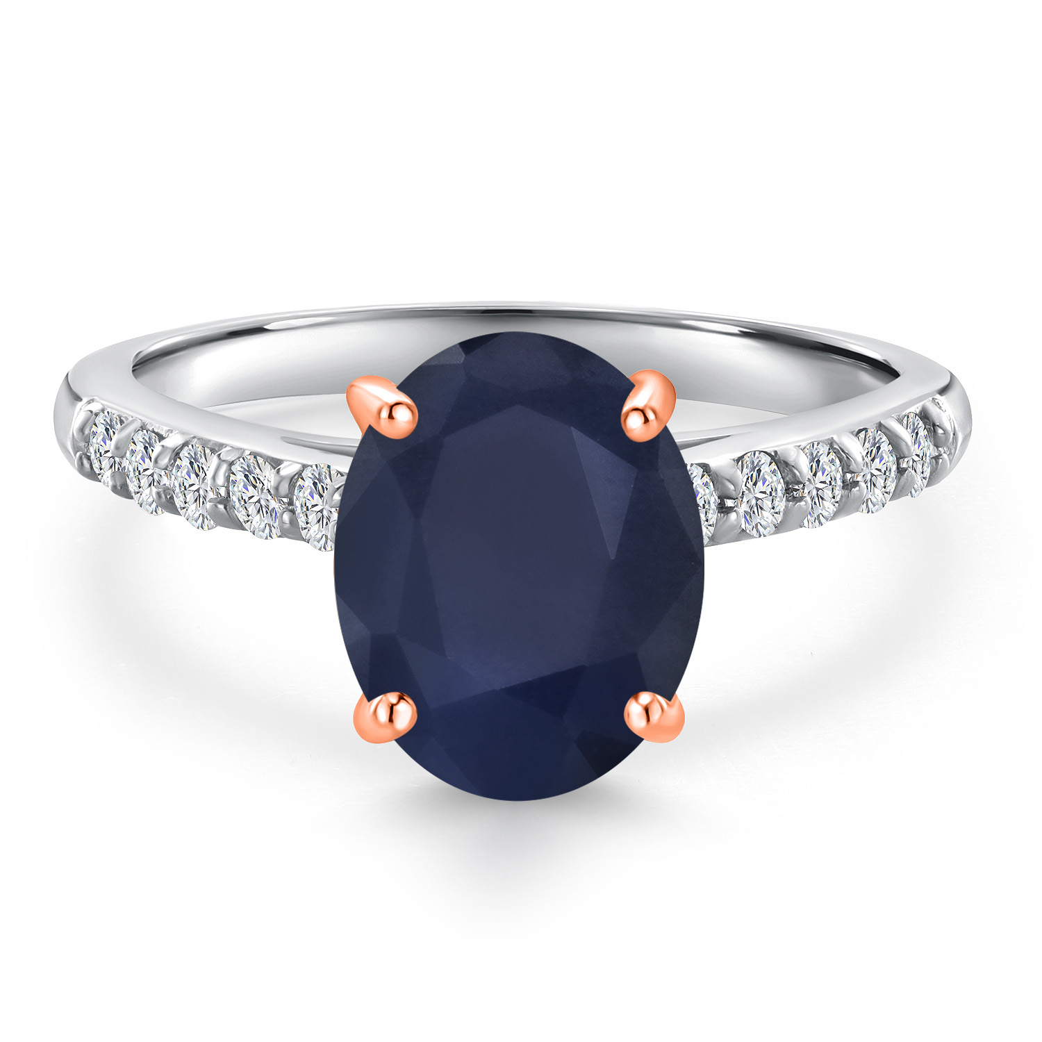ROSE GOLD PRONG CRAFTSMANSHIP: The delicate rose gold prongs securely cradle the main gemstone, complemented by round 1.7MM white lab-grown diamond accents that add an extra layer of sparkle. These ethically sourced diamonds are expertly set to enhance the ring's overall brilliance, showcasing superior craftsmanship and attention to detail. This engagement ring embodies elegance and sophistication, making it a perfect symbol of love and commitment.