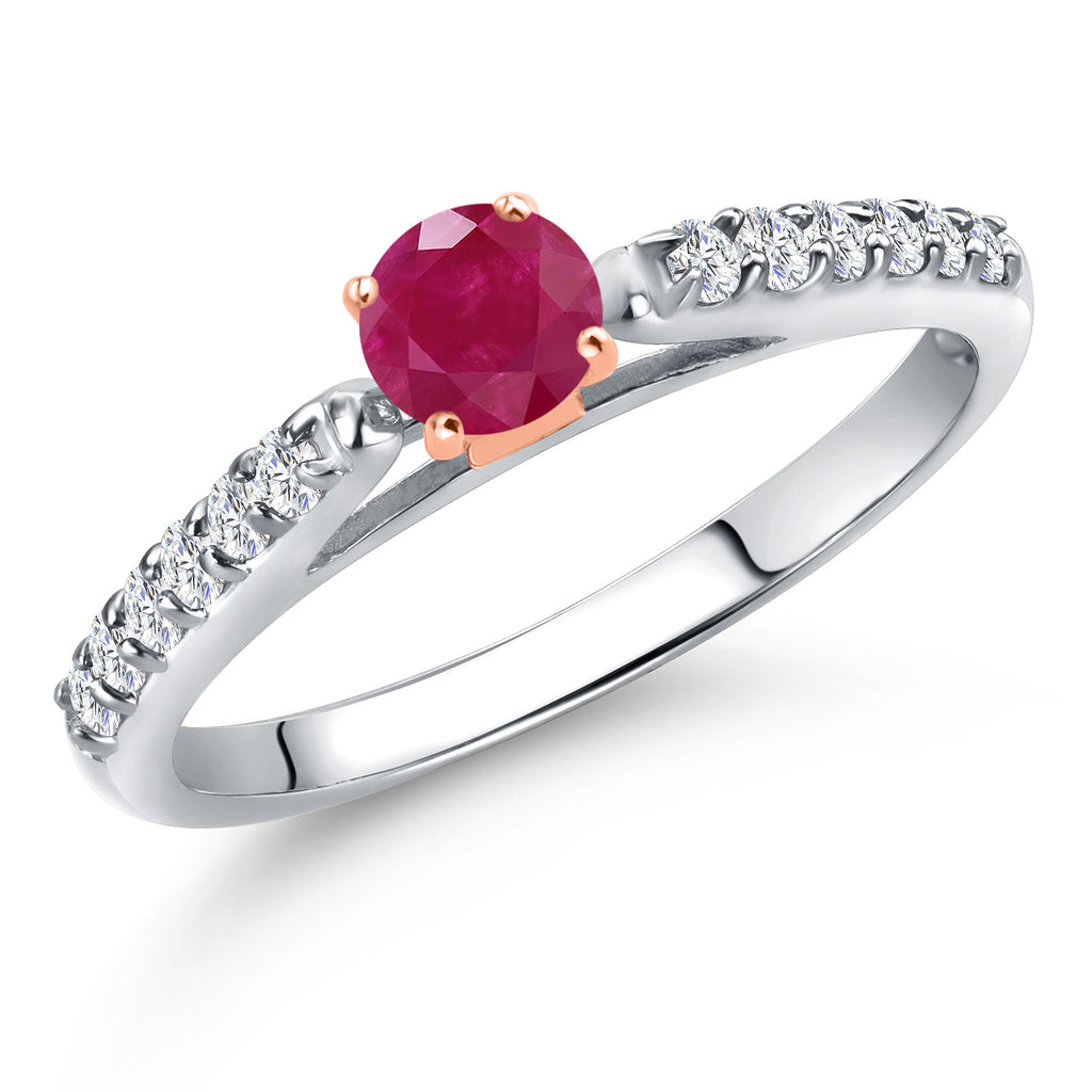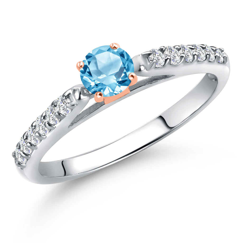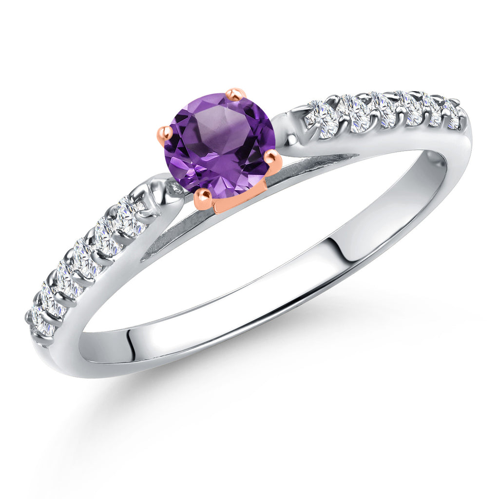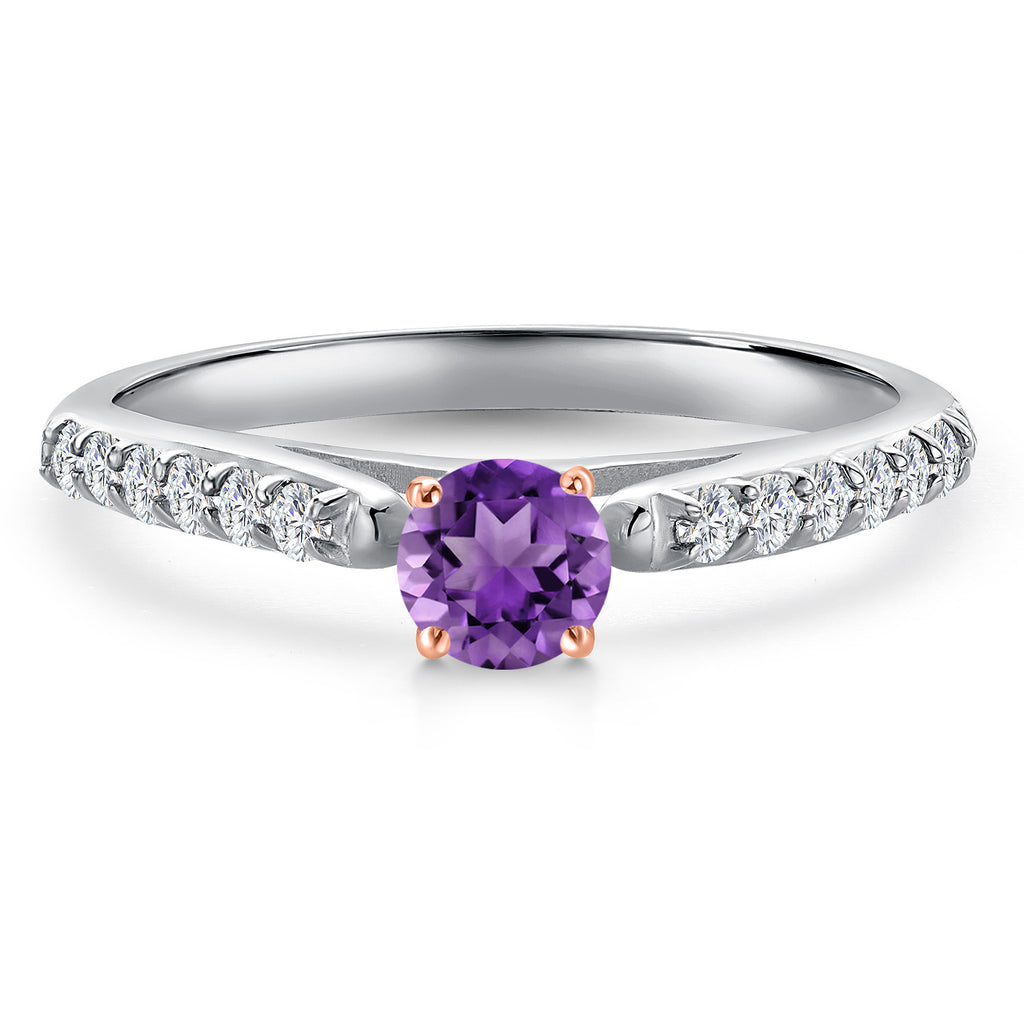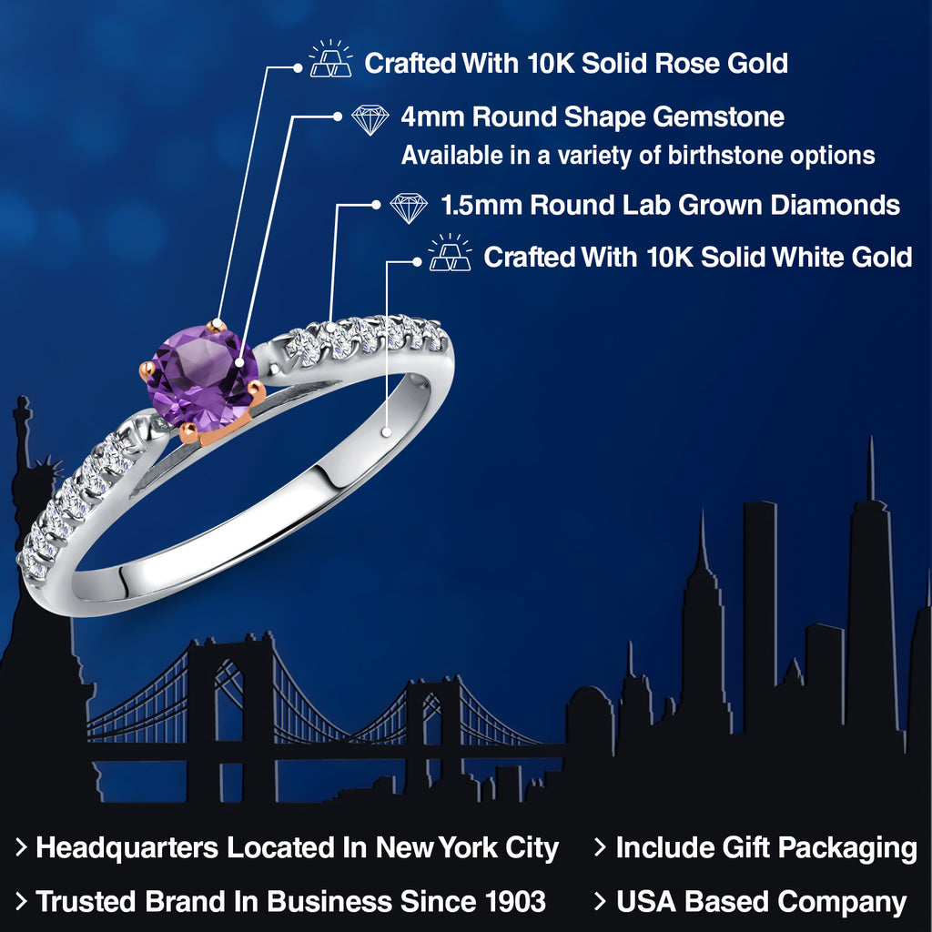 10K Two Tone Gold Gemstone Birthstone and White Lab Grown Diamond Accent Engagement Ring For Women | Round 4MM and 1.5MM Accent | Wedding Anniversary Promise Ring | Sizes 5, 6, 7, 8, 9