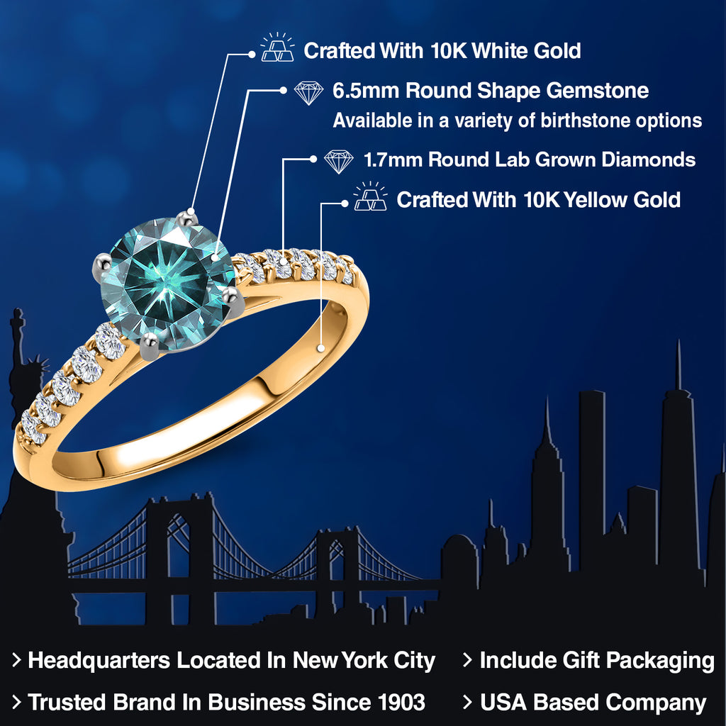 10K Two Tone Gold Gemstone Birthstone and White Lab Grown Diamond Engagement Ring For Women | Round 6.5MM and 1.7MM | Wedding Anniversary Promise Ring | Sizes 5, 6, 7, 8, 9
