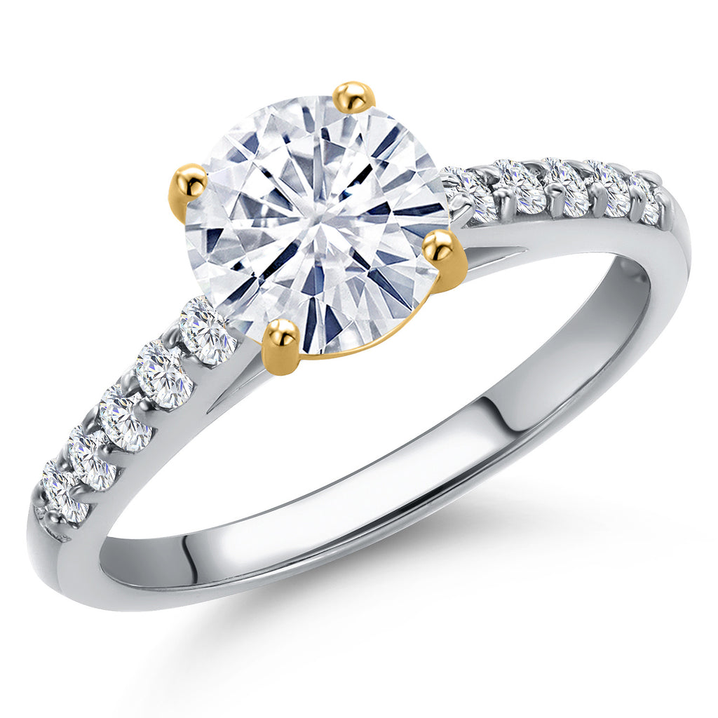 10K Two Tone Gold Gemstone Birthstone and White Lab Grown Diamond Engagement Ring For Women | Round 7MM and 1.7MM | Wedding Anniversary Promise Ring | Sizes 5, 6, 7, 8, 9