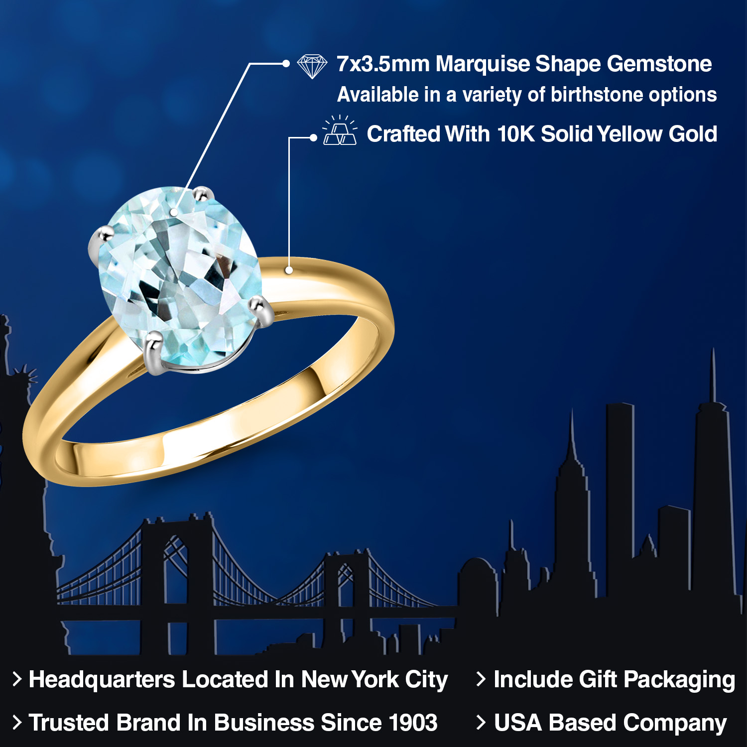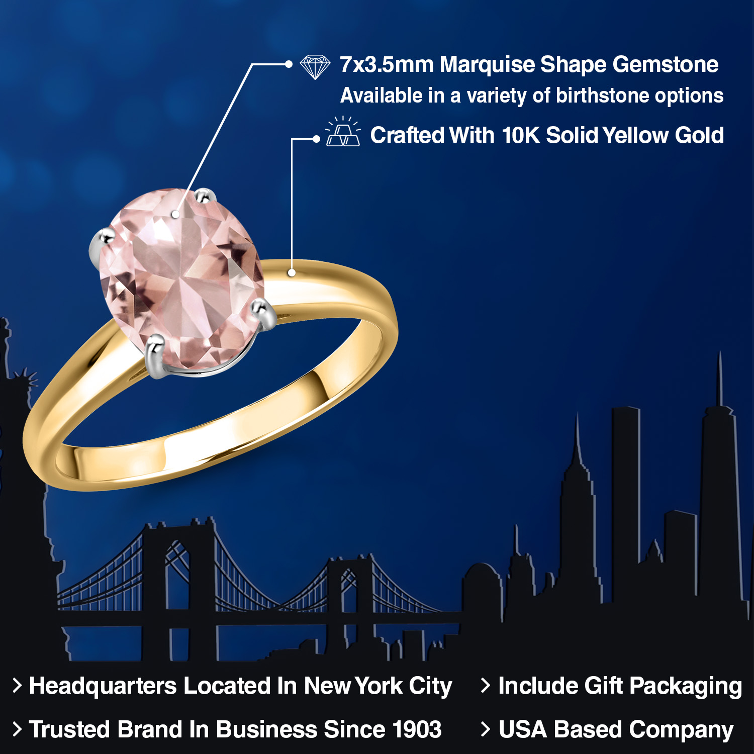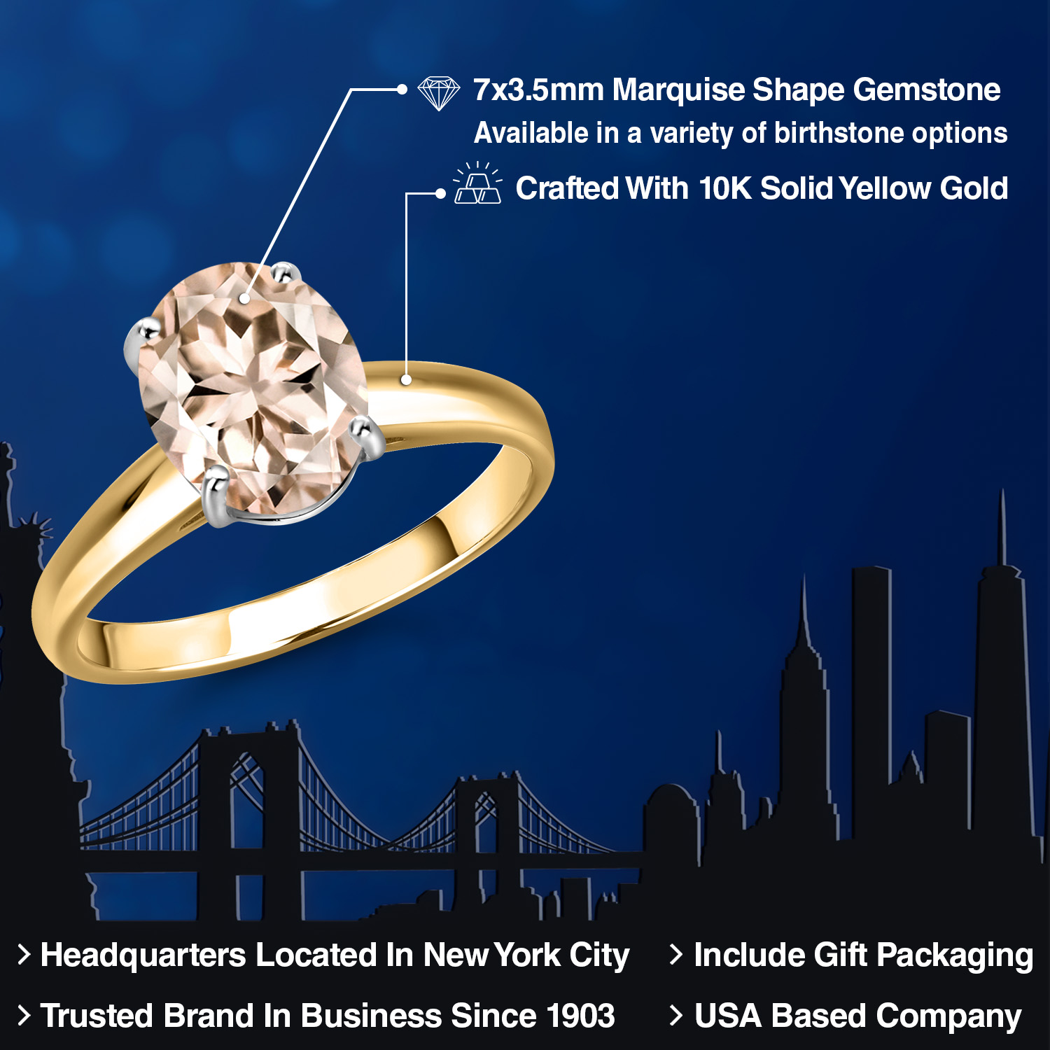 TWO-TONE GOLD RADIANCE: Crafted with meticulous attention to detail, this ring features a harmonious blend of 10K white gold prongs and a yellow gold band, offering a striking two-tone contrast that enhances the gemstone's allure. The high-quality gold ensures a radiant finish that withstands the test of time, providing both durability and a luxurious feel. Its hypoallergenic properties make it suitable for even the most sensitive skin, ensuring comfort and peace of mind.
