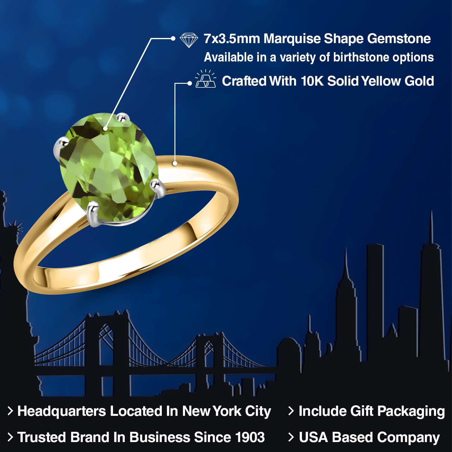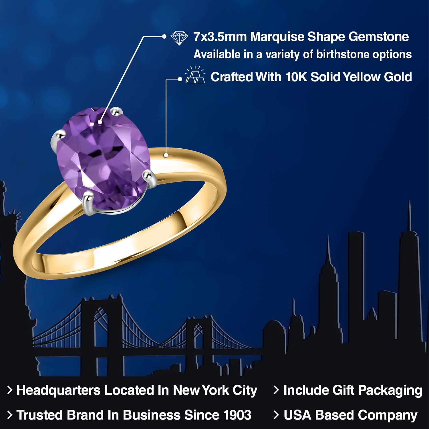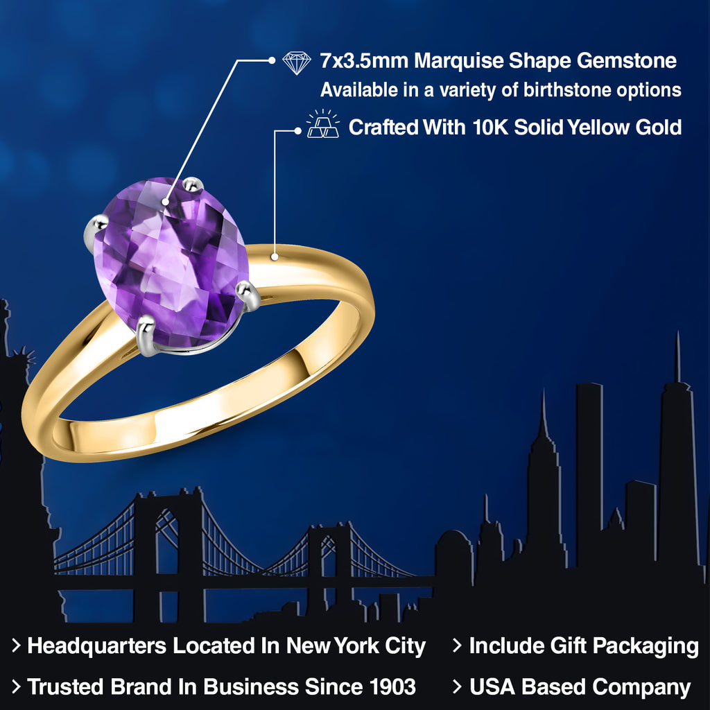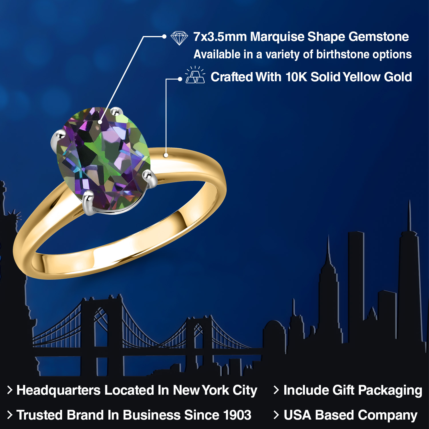 TWO-TONE GOLD RADIANCE: Crafted with meticulous attention to detail, this ring features a harmonious blend of 10K white gold prongs and a yellow gold band, offering a striking two-tone contrast that enhances the gemstone's allure. The high-quality gold ensures a radiant finish that withstands the test of time, providing both durability and a luxurious feel. Its hypoallergenic properties make it suitable for even the most sensitive skin, ensuring comfort and peace of mind.