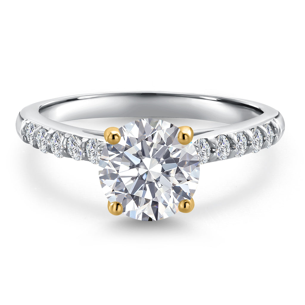 2-Tone Engagement Ring For Women | 925 Silver and 10K Yellow Gold | Gemstone Birthstone | 6MM Cushion Cut | Wedding Anniversary Promise Ring | Available In Size 5, 6, 7, 8, 9