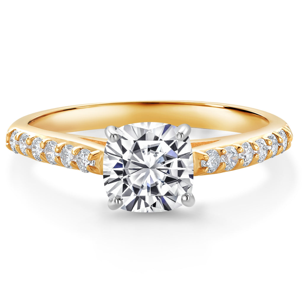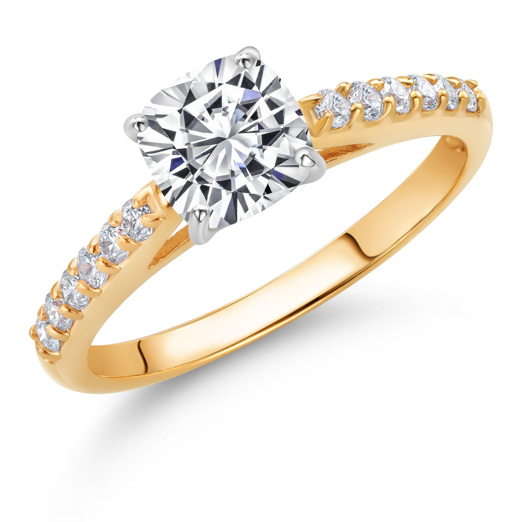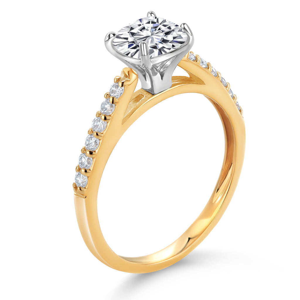 2-Tone Engagement Ring For Women | 925 Silver and 10K Yellow Gold | Gemstone Birthstone | 6MM Cushion Cut | Wedding Anniversary Promise Ring | Available In Size 5, 6, 7, 8, 9
