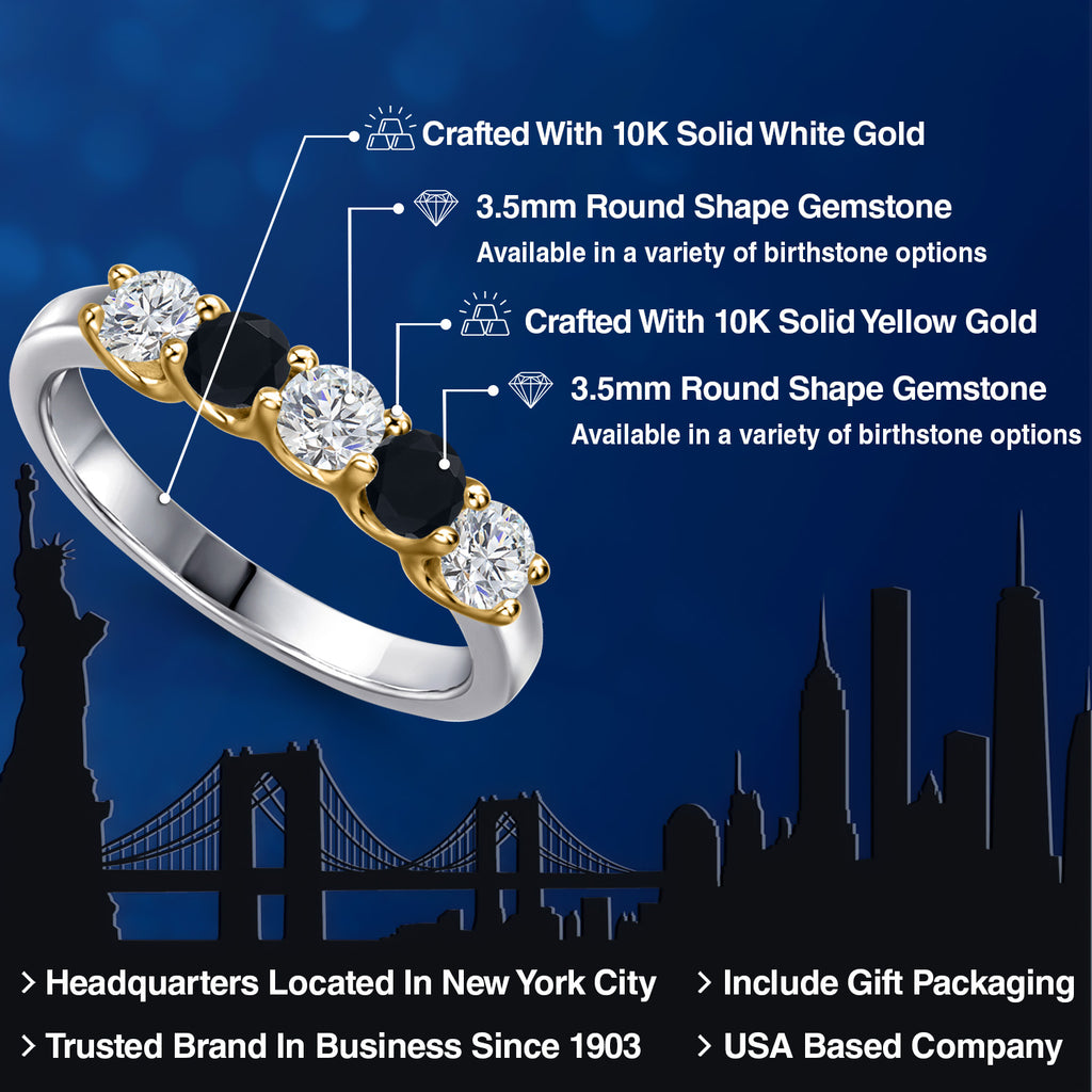 2-Tone Engagement Ring For Women | 925 Silver and 10K Yellow Gold | Gemstone Birthstone | 6MM Cushion Cut | Wedding Anniversary Promise Ring | Available In Size 5, 6, 7, 8, 9
