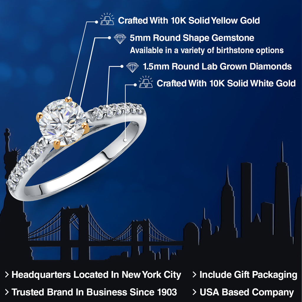 2-Tone Engagement Ring For Women | 925 Silver and 10K Yellow Gold | Gemstone Birthstone | 6MM Cushion Cut | Wedding Anniversary Promise Ring | Available In Size 5, 6, 7, 8, 9
