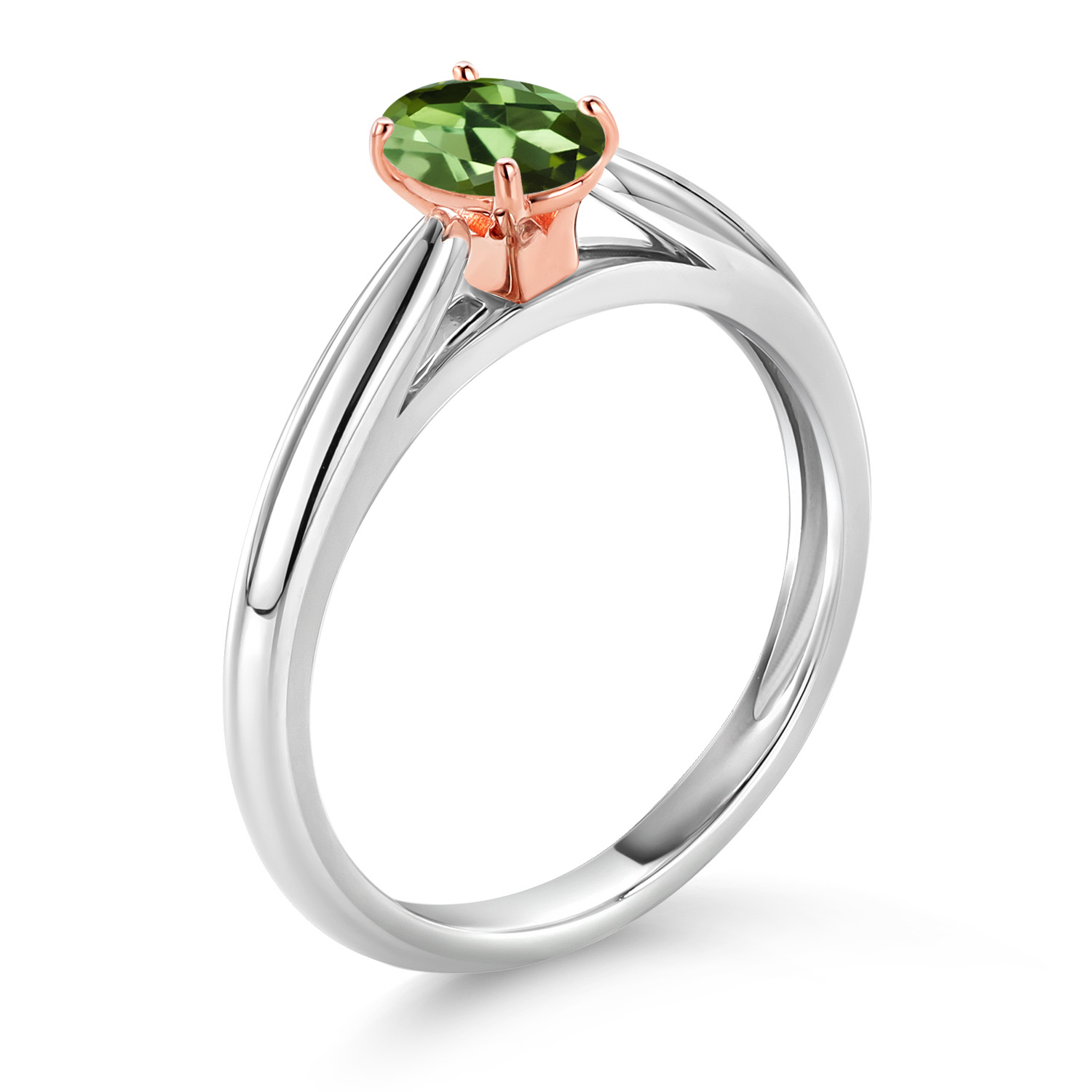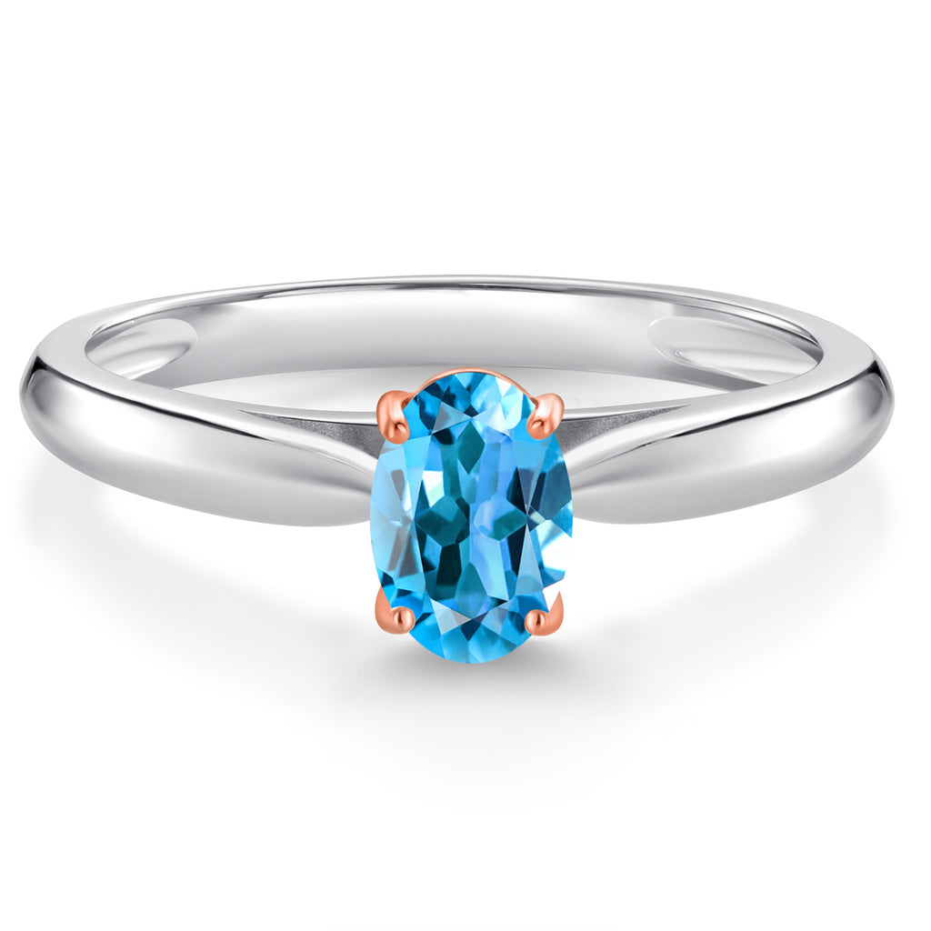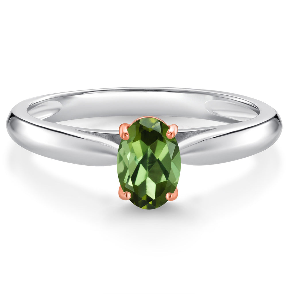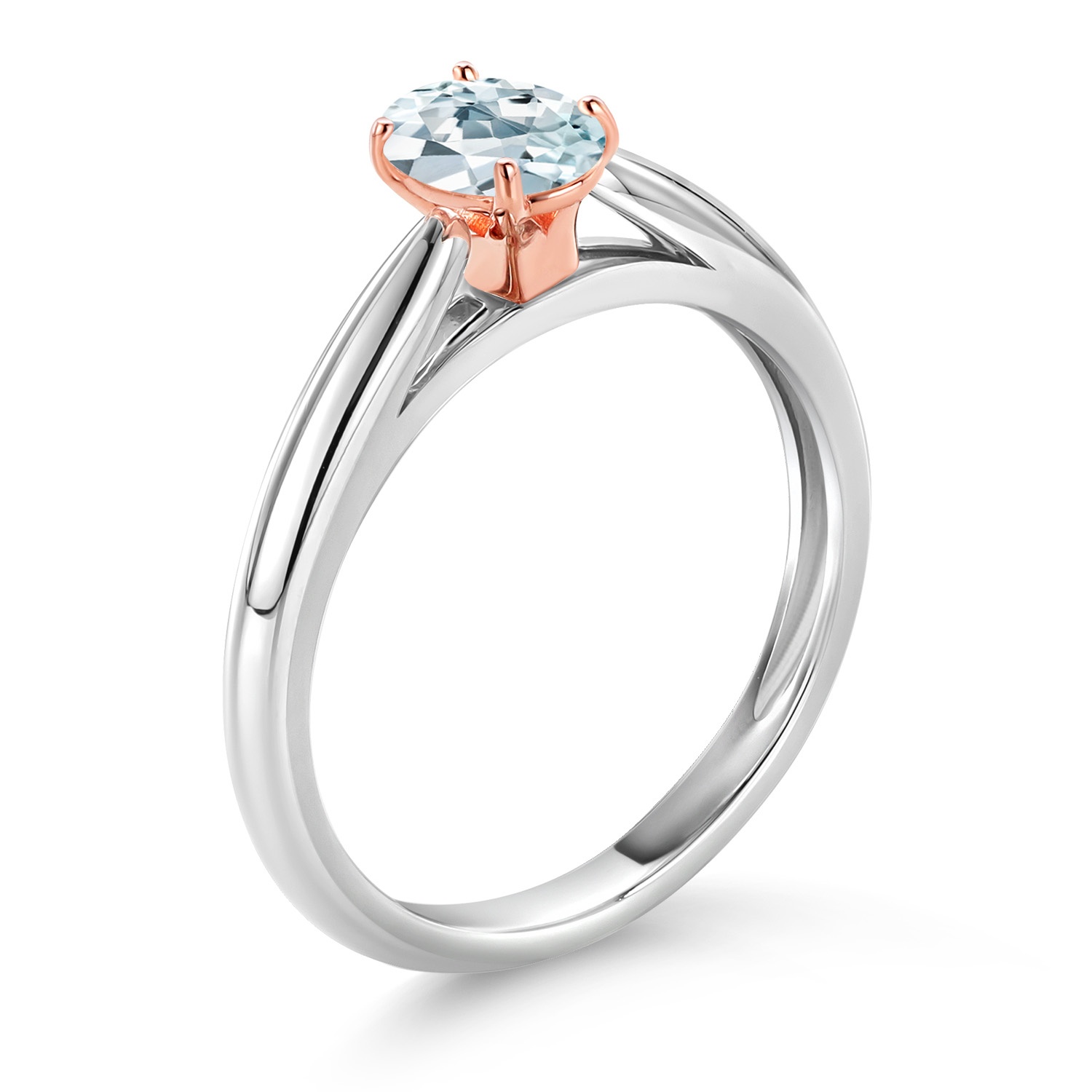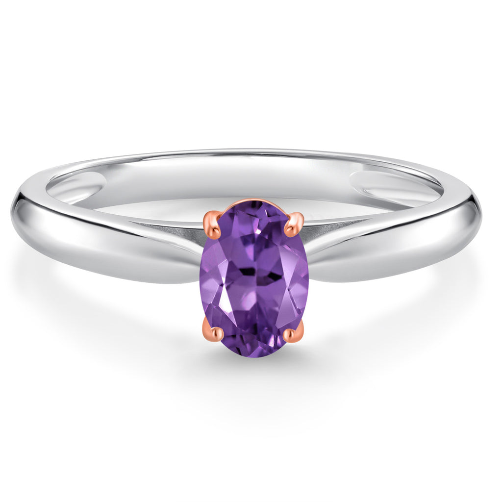 2-Tone 10K Gold Gemstone Birthstone Solitaire Engagement Ring For Women | Oval 6X4MM | Wedding Engagement Anniversary Promise Ring For Women | Available In Size 5, 6, 7, 8, 9