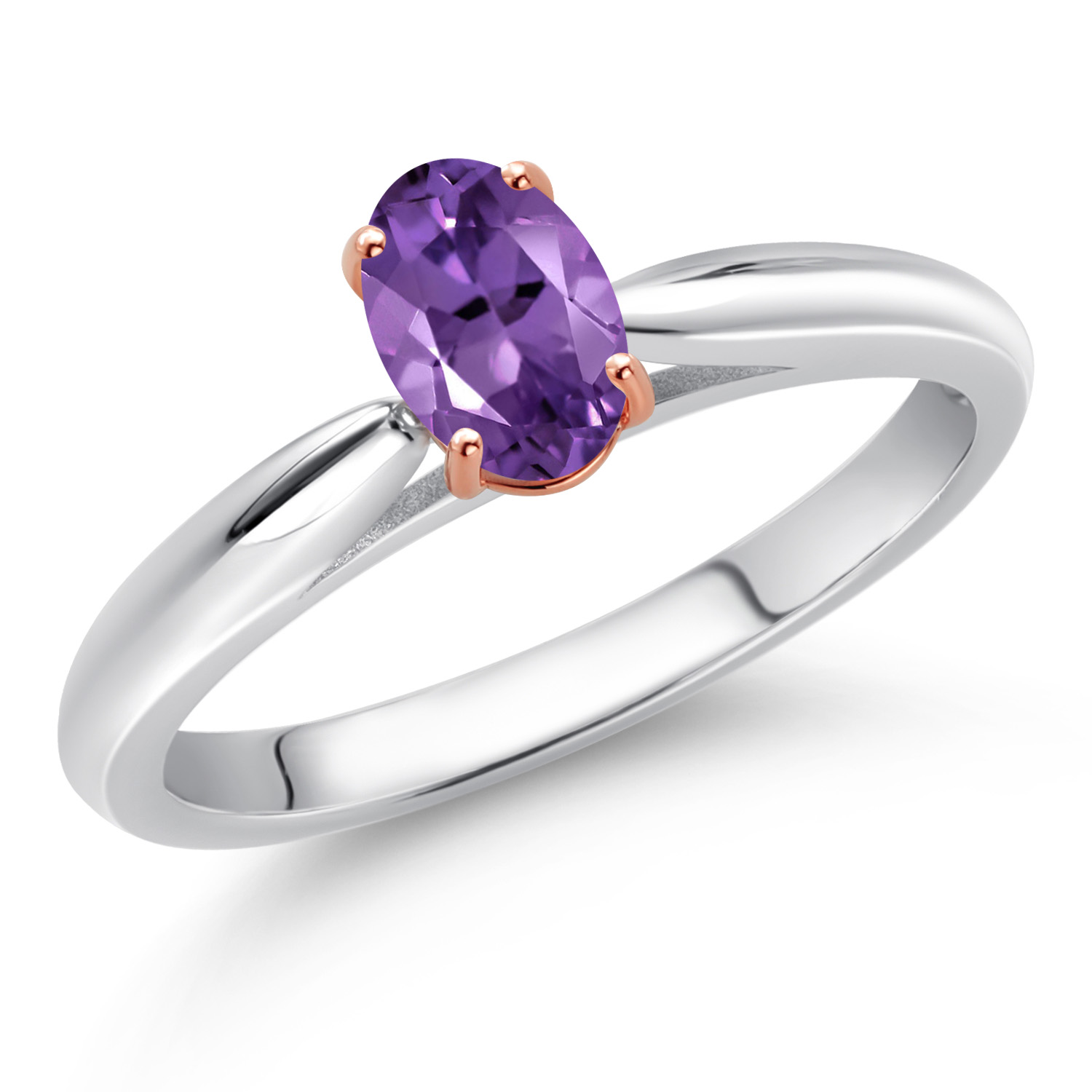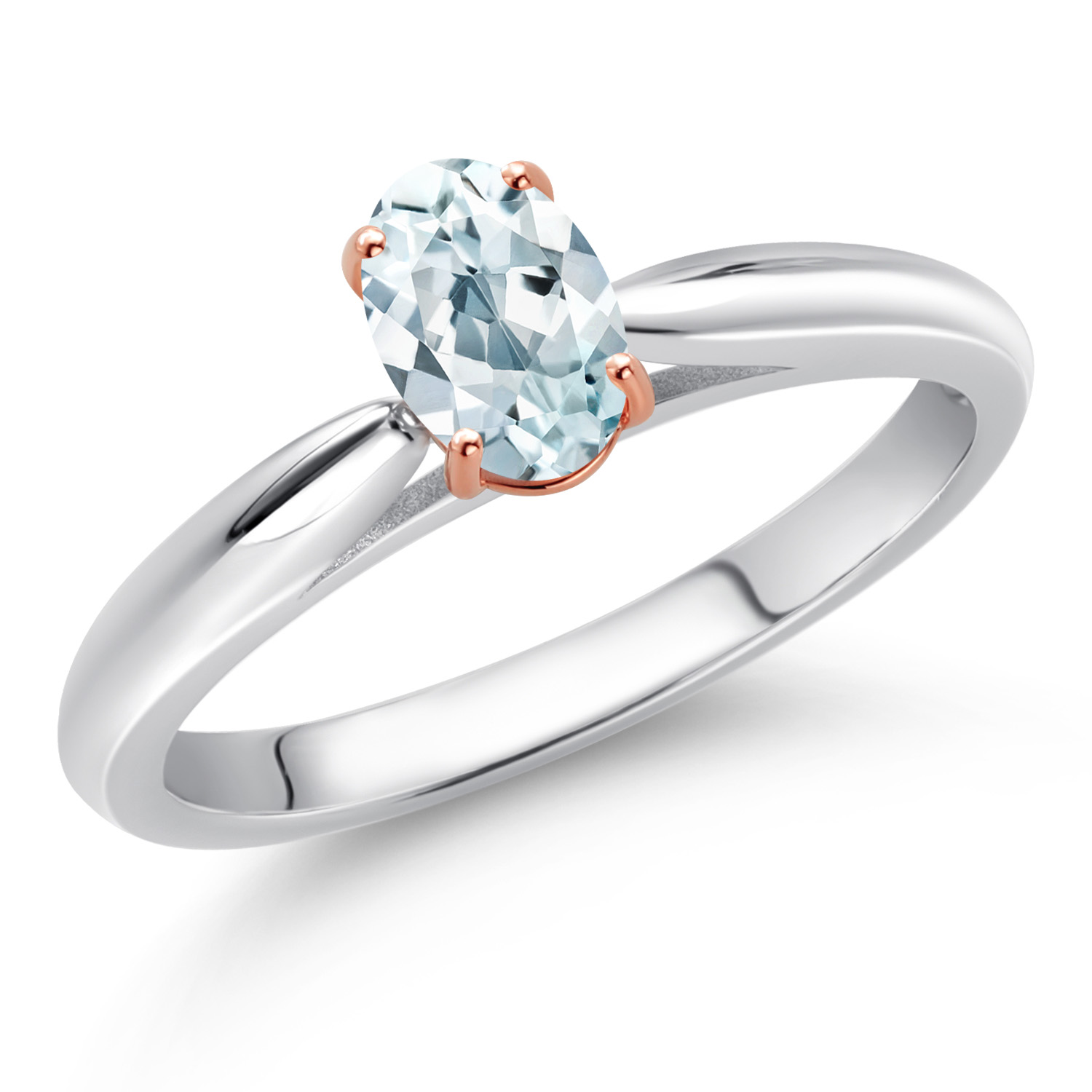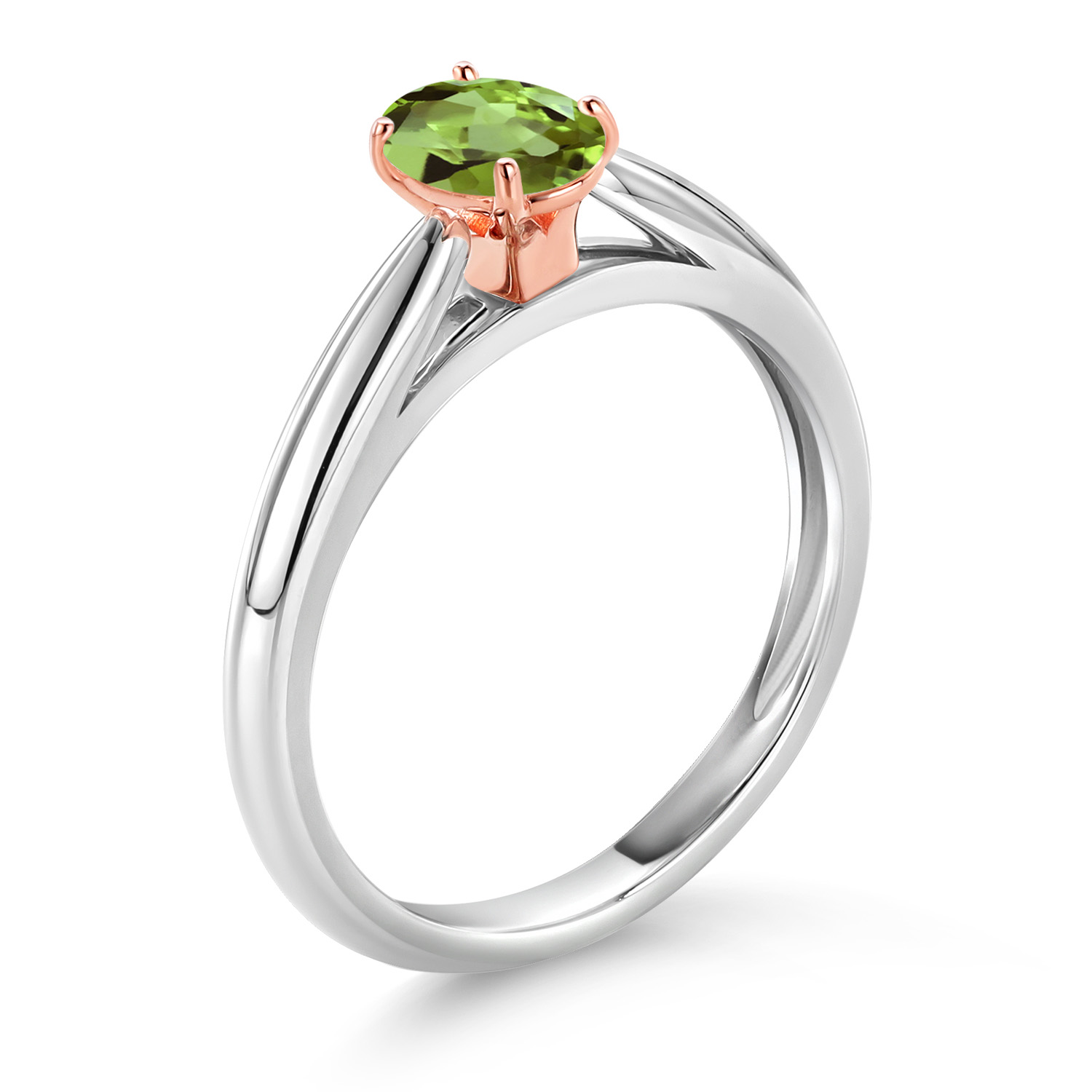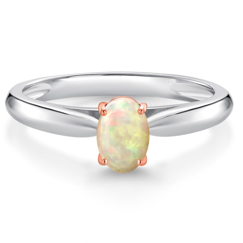2-Tone 10K Gold Gemstone Birthstone Solitaire Engagement Ring For Women | Oval 6X4MM | Wedding Engagement Anniversary Promise Ring For Women | Available In Size 5, 6, 7, 8, 9