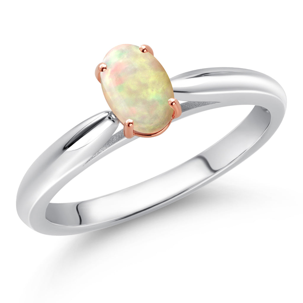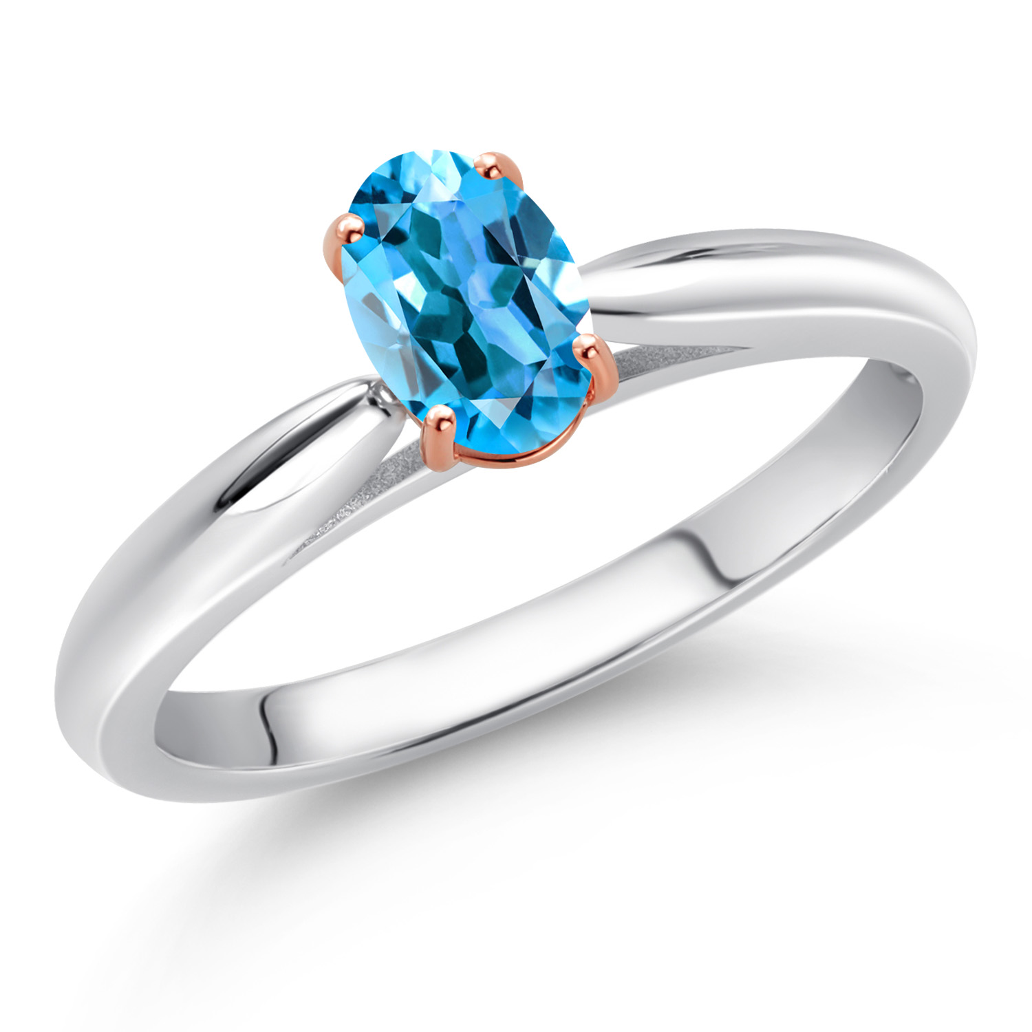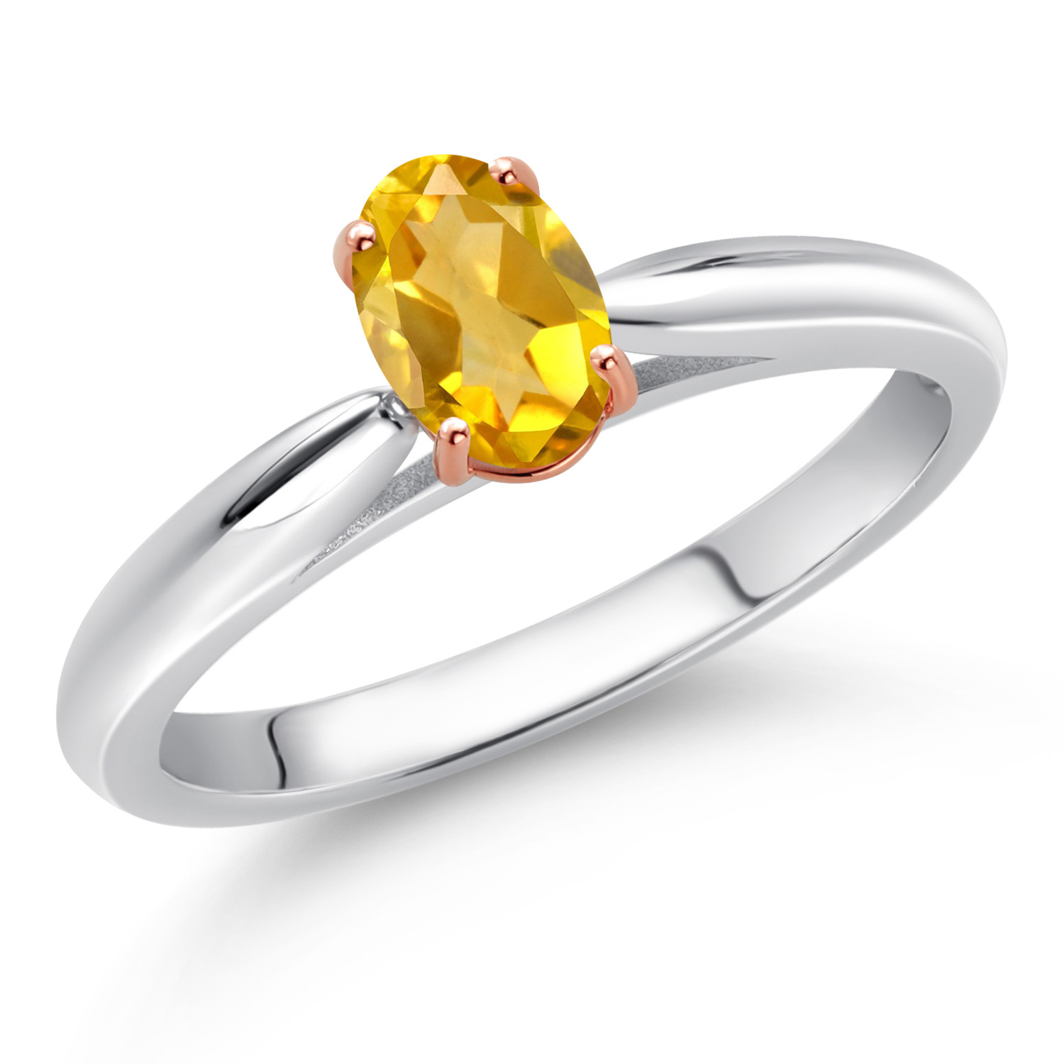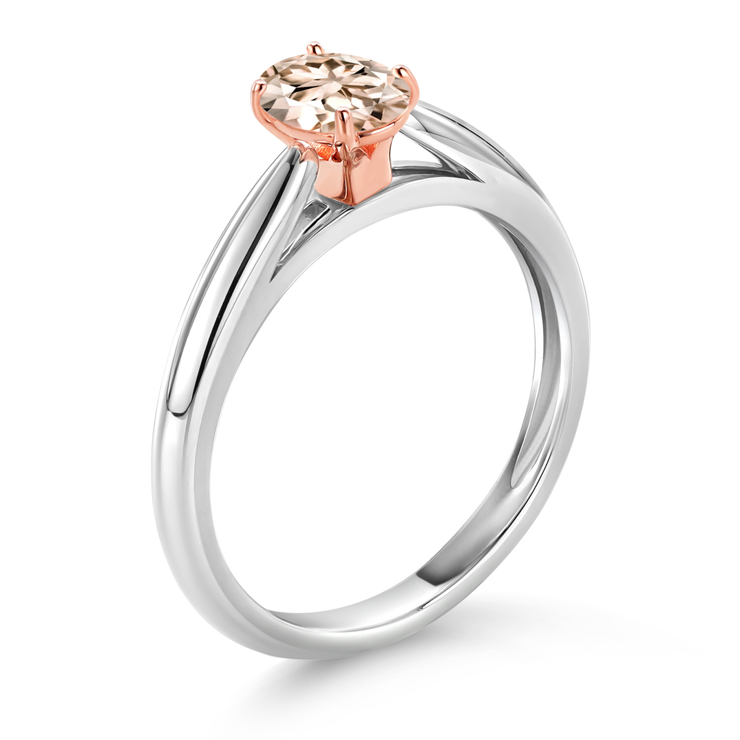2-Tone 10K Gold Gemstone Birthstone Solitaire Engagement Ring For Women | Oval 6X4MM | Wedding Engagement Anniversary Promise Ring For Women | Available In Size 5, 6, 7, 8, 9