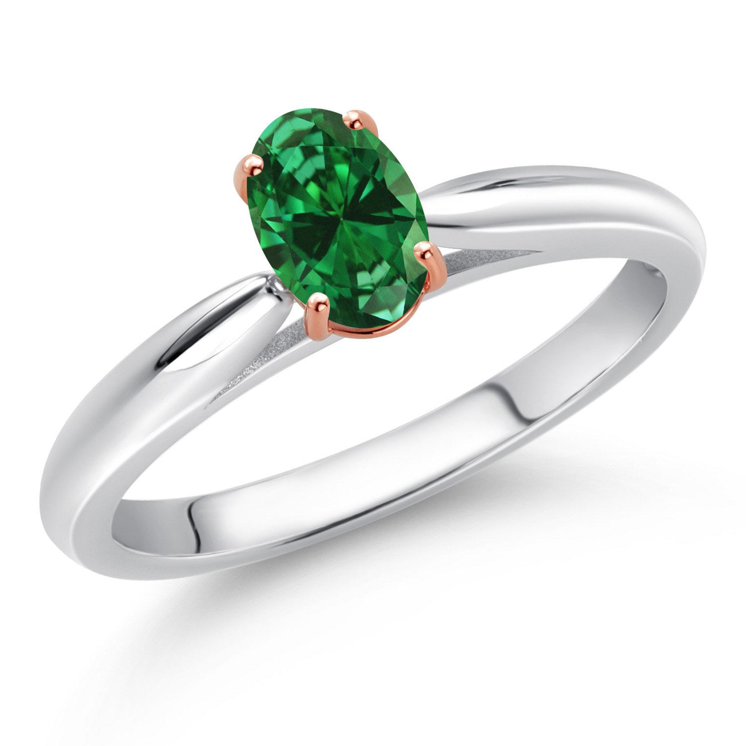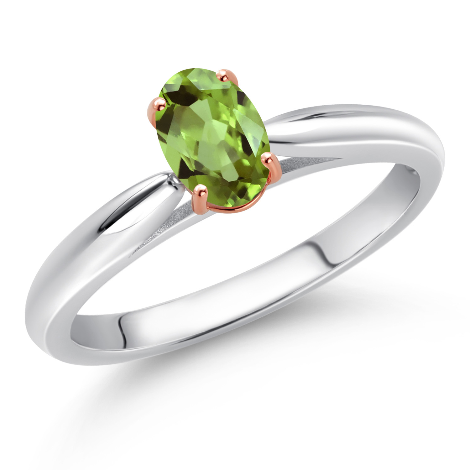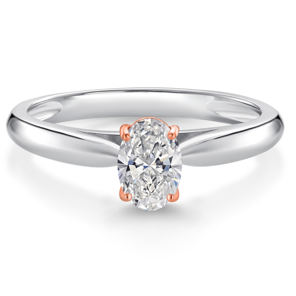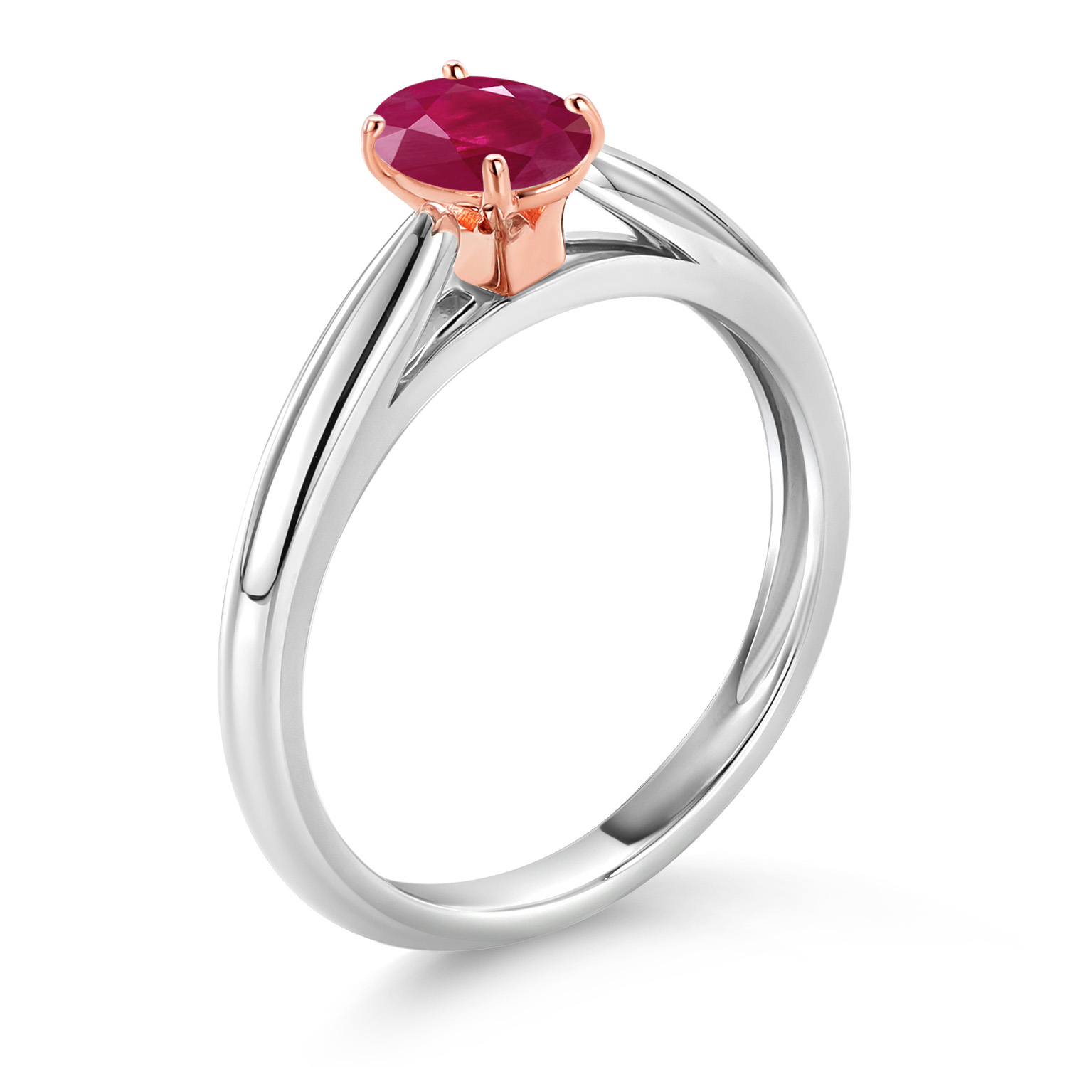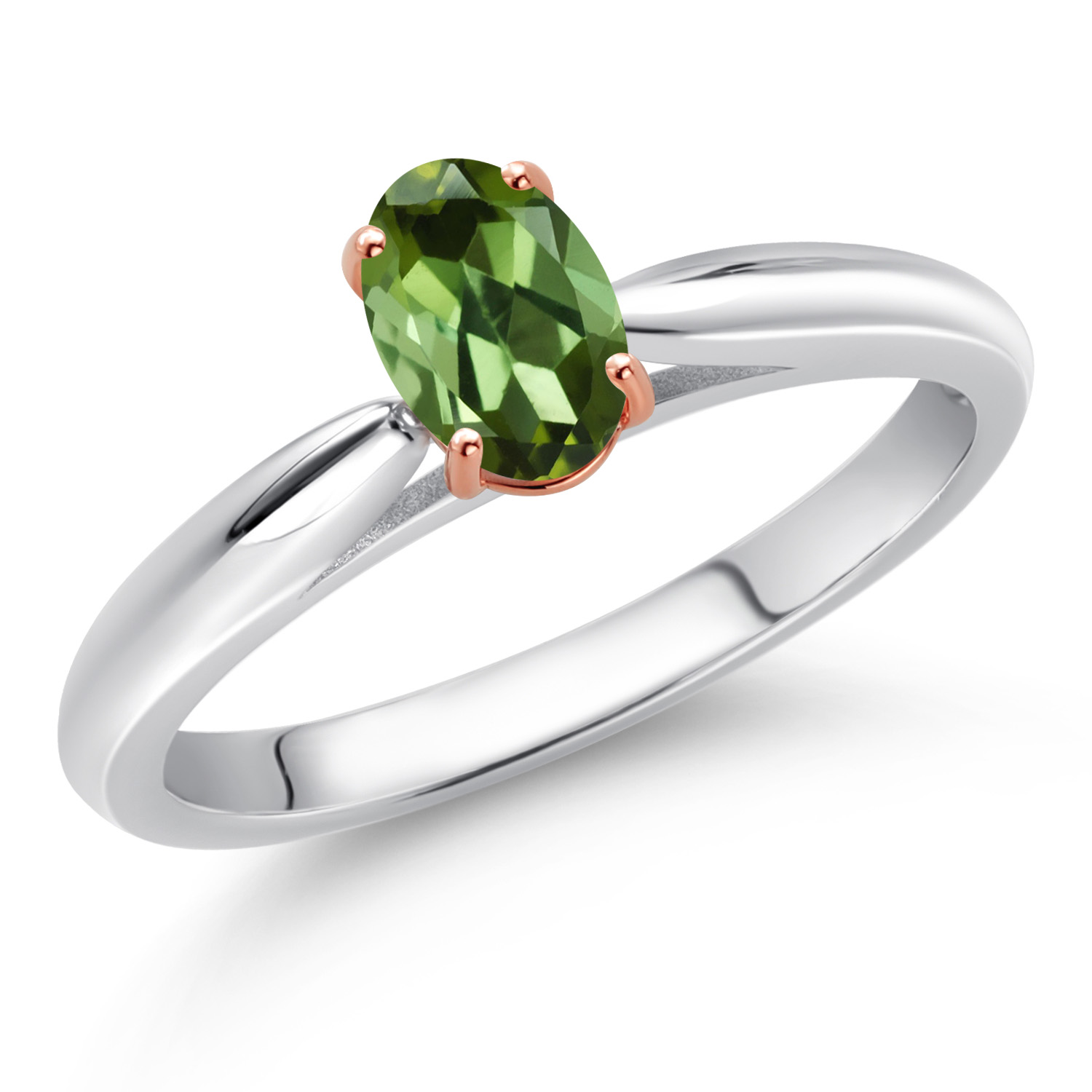 2-Tone 10K Gold Gemstone Birthstone Solitaire Engagement Ring For Women | Oval 6X4MM | Wedding Engagement Anniversary Promise Ring For Women | Available In Size 5, 6, 7, 8, 9