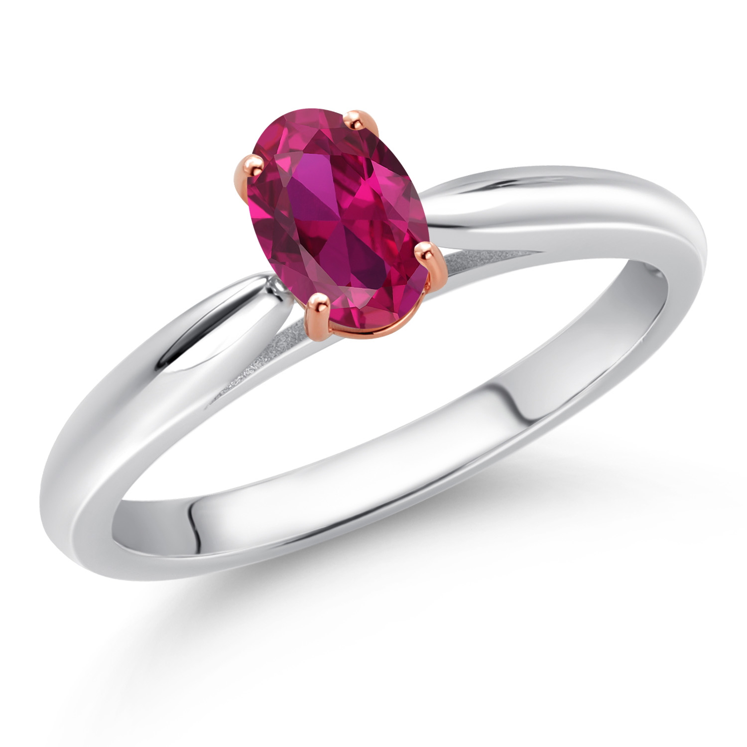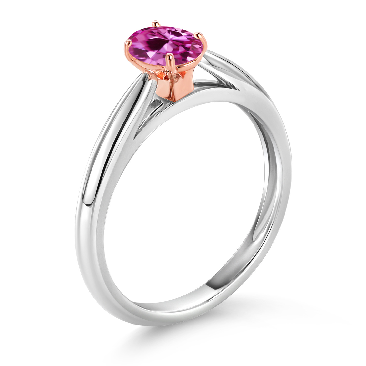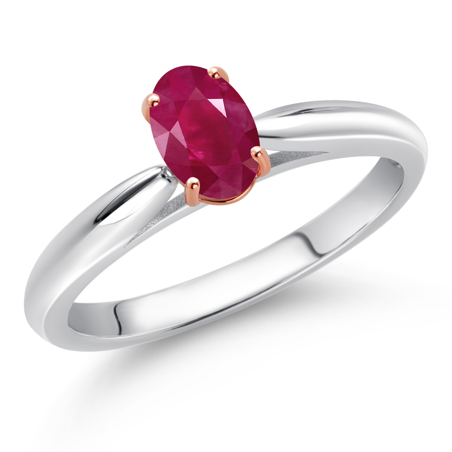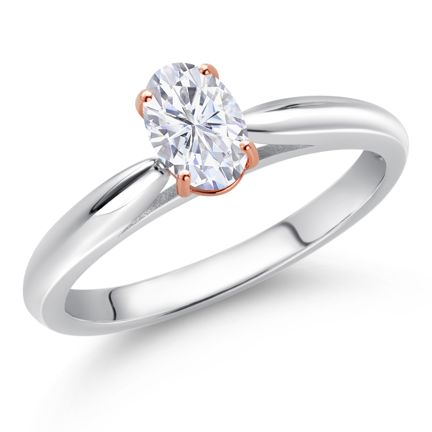 2-Tone 10K Gold Gemstone Birthstone Solitaire Engagement Ring For Women | Oval 6X4MM | Wedding Engagement Anniversary Promise Ring For Women | Available In Size 5, 6, 7, 8, 9