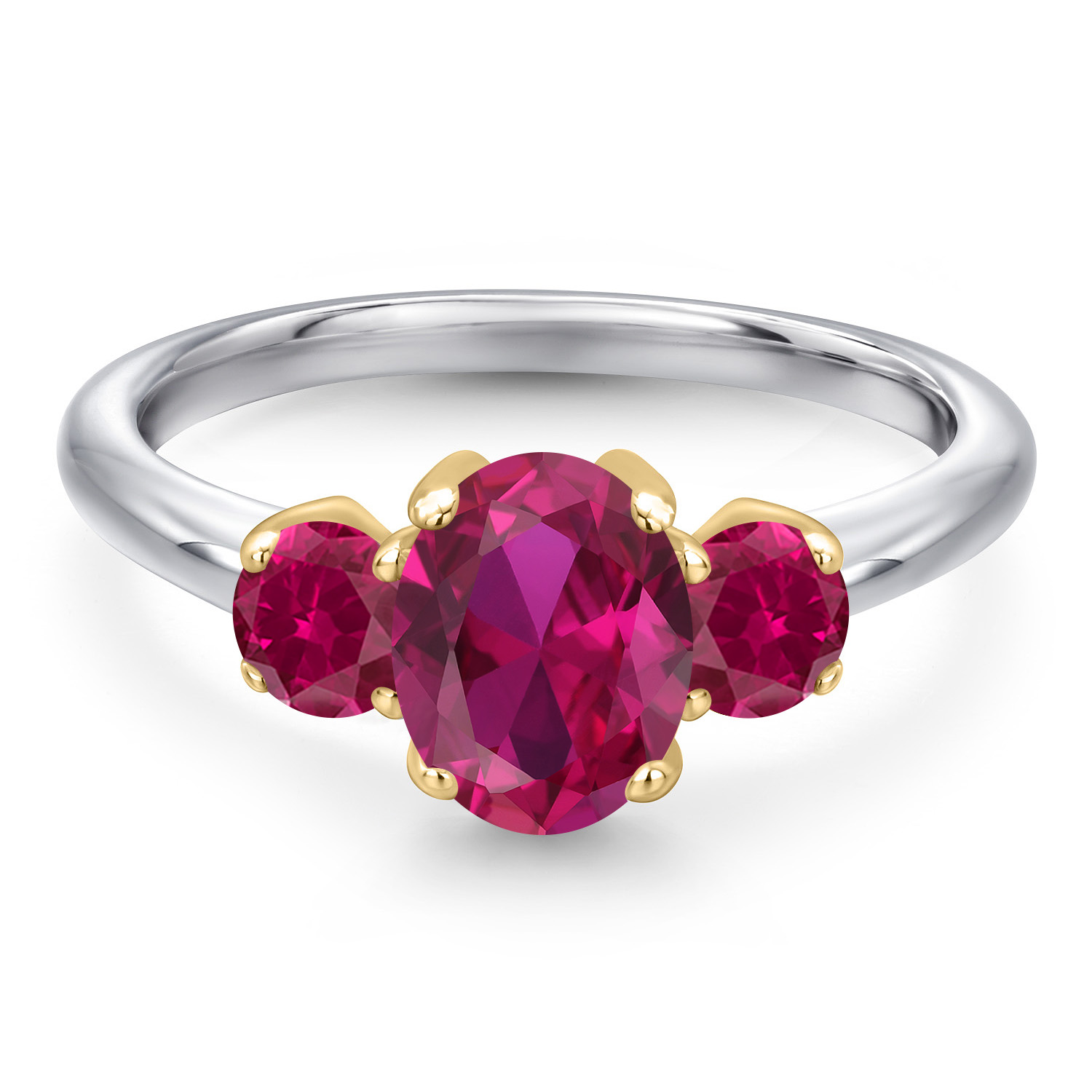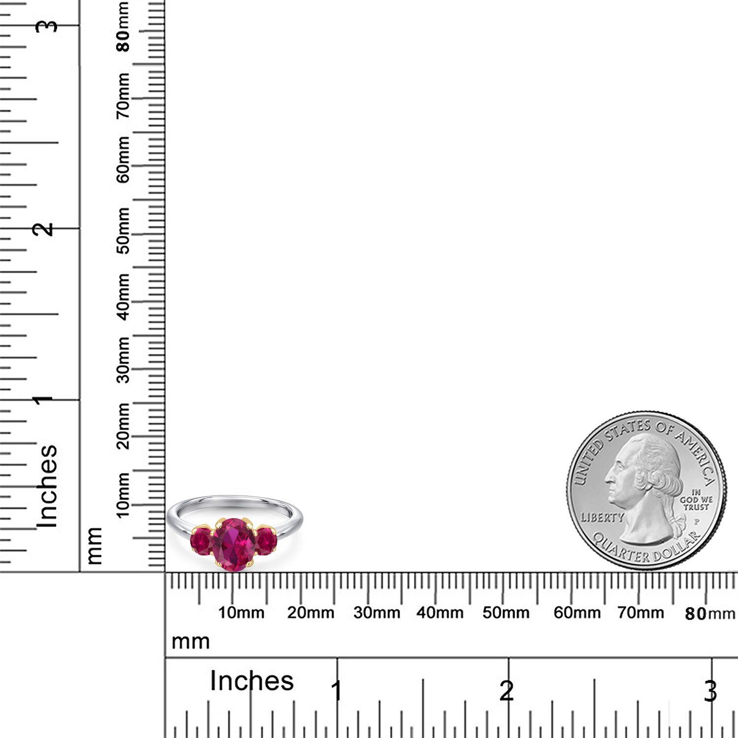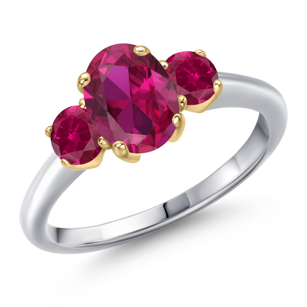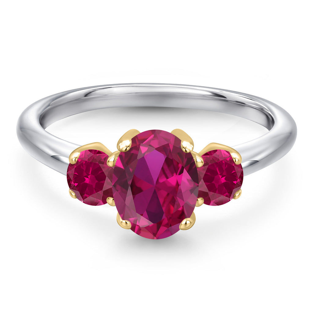 MEASUREMENTS: 8x6mm Oval Heat-Treated Red Created Ruby, 4x4mm Round Heat-Treated Red Created Ruby. Total Carat Weight is 1.85 cttw