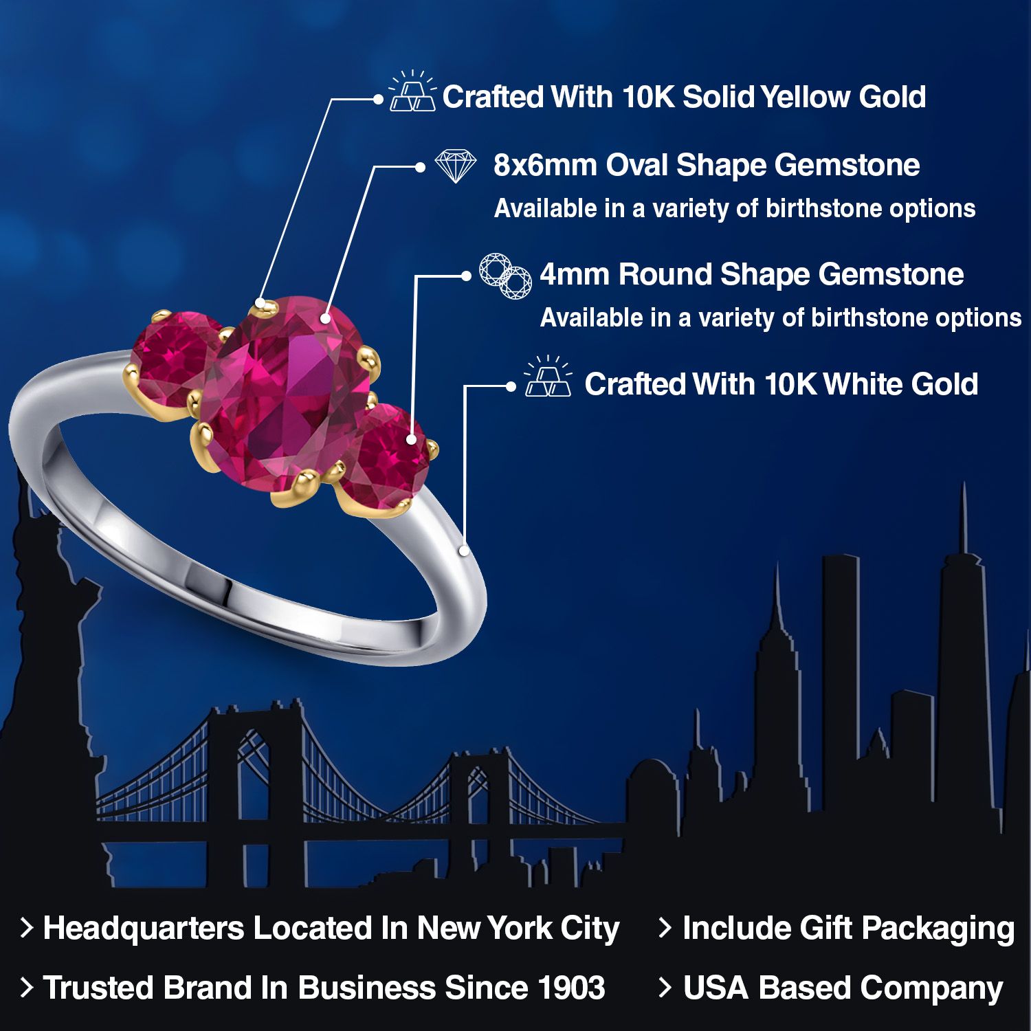 2-Tone Engagement Ring For Women | 925 Silver and 10K Yellow Gold | Gemstone Birthstone | 6MM Cushion Cut | Wedding Anniversary Promise Ring | Available In Size 5, 6, 7, 8, 9