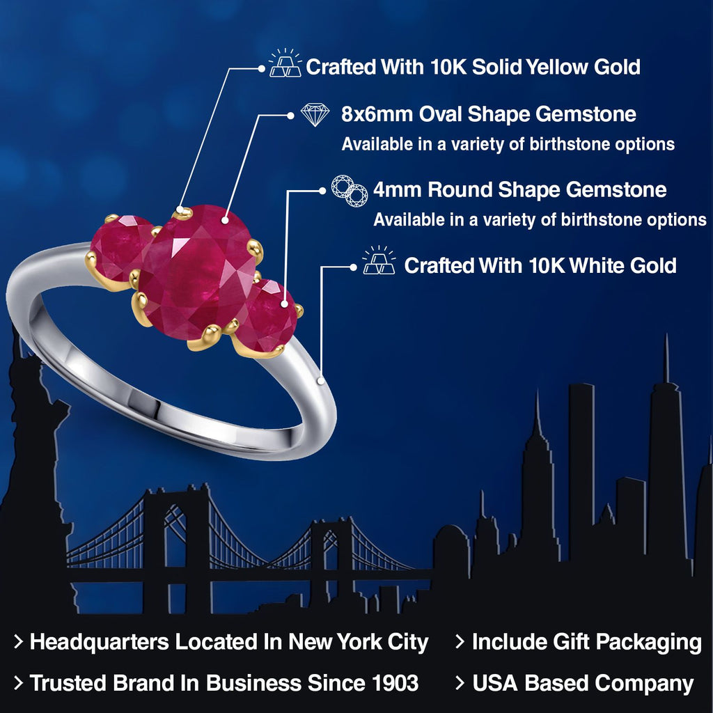 2-Tone Engagement Ring For Women | 925 Silver and 10K Yellow Gold | Gemstone Birthstone | 6MM Cushion Cut | Wedding Anniversary Promise Ring | Available In Size 5, 6, 7, 8, 9