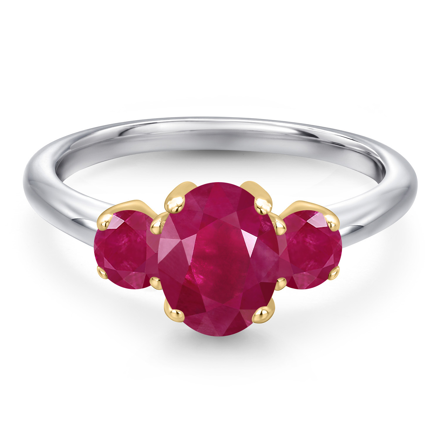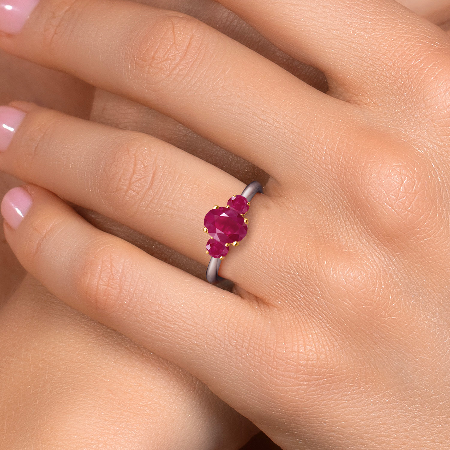 MEASUREMENTS: 8x6mm Oval Heat-Treated Red Ruby, 4x4mm Round Heat-Treated Red Ruby. Total Carat Weight is 2.3 cttw