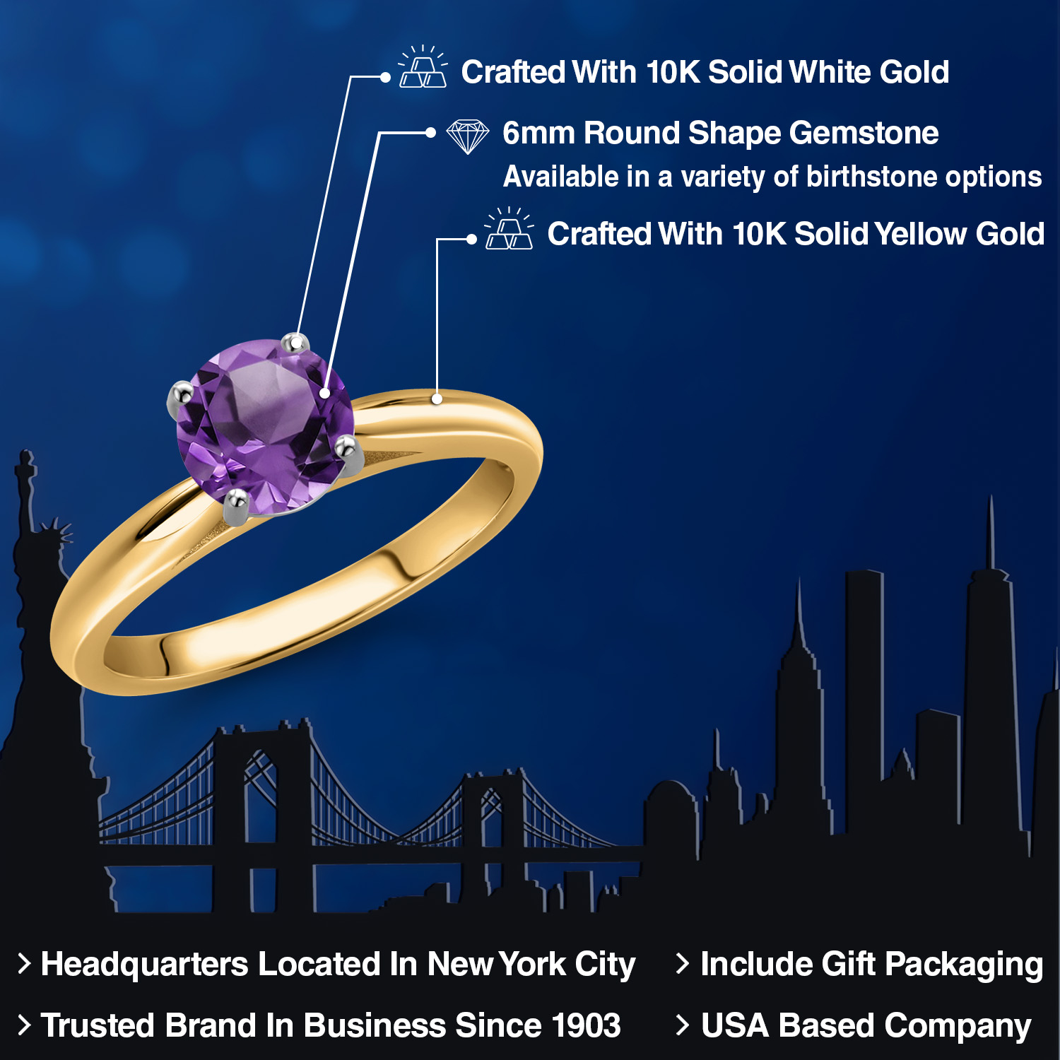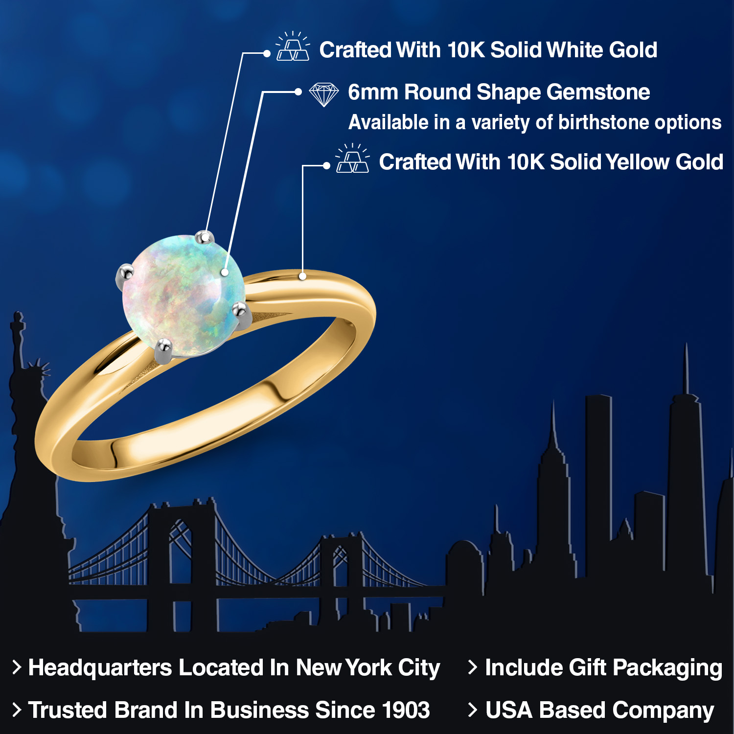RADIANT ROUND GEMSTONE: Featuring a stunning 6MM round gemstone, this exquisite birthstone solitaire engagement ring offers a dazzling focal point that captures light from every angle. The perfectly cut gemstone is available in a variety of birthstone options, allowing for a personalized touch that celebrates individuality and timeless elegance. Its round shape symbolizes eternal love and unity, making it an ideal choice for a meaningful engagement or special occasion.