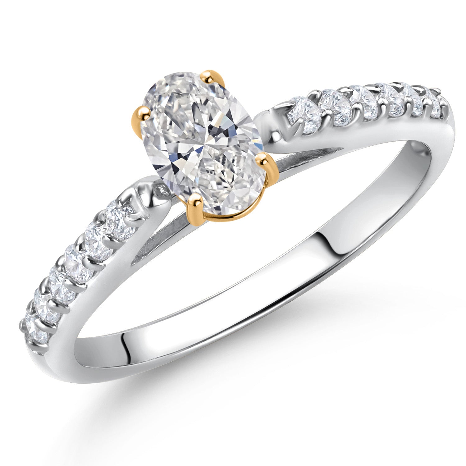 MEASUREMENTS: 6x4mm Oval DEF Lab Grown Diamond, 1.5x1.5mm Round E - F Lab Grown Diamond. Total Carat Weight is 0.58 cttw