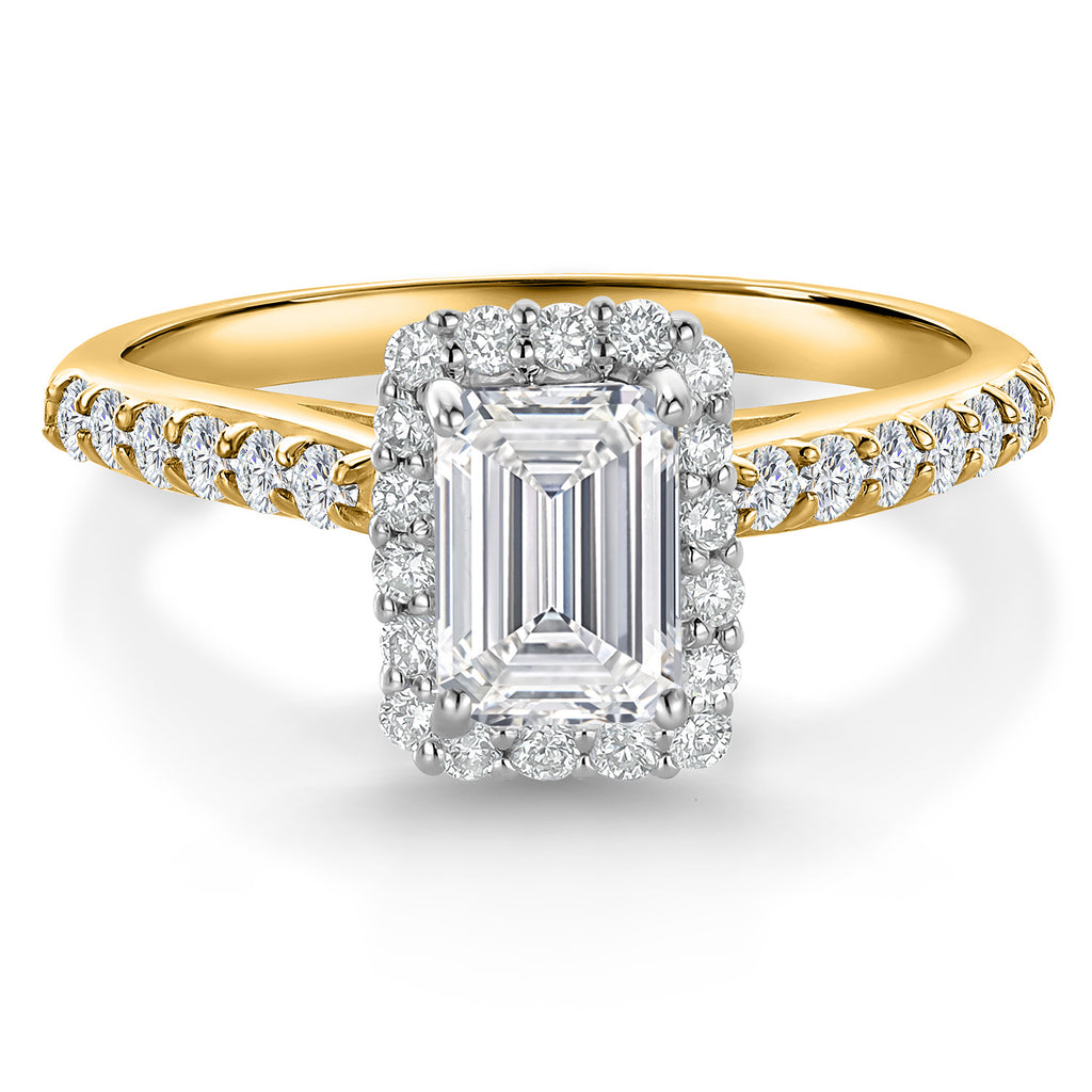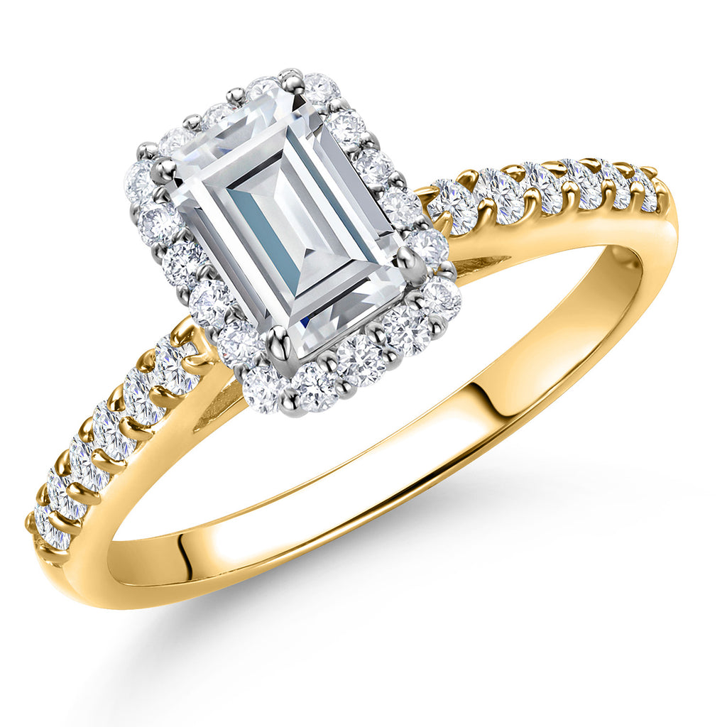 10K Two-Tone Gold Emerald Cut 6X4MM Gemstone Birthstone and Lab Grown Diamond Halo Engagement Ring For Women | Wedding Anniversary Promise Ring | Size 5,6,7,8,9