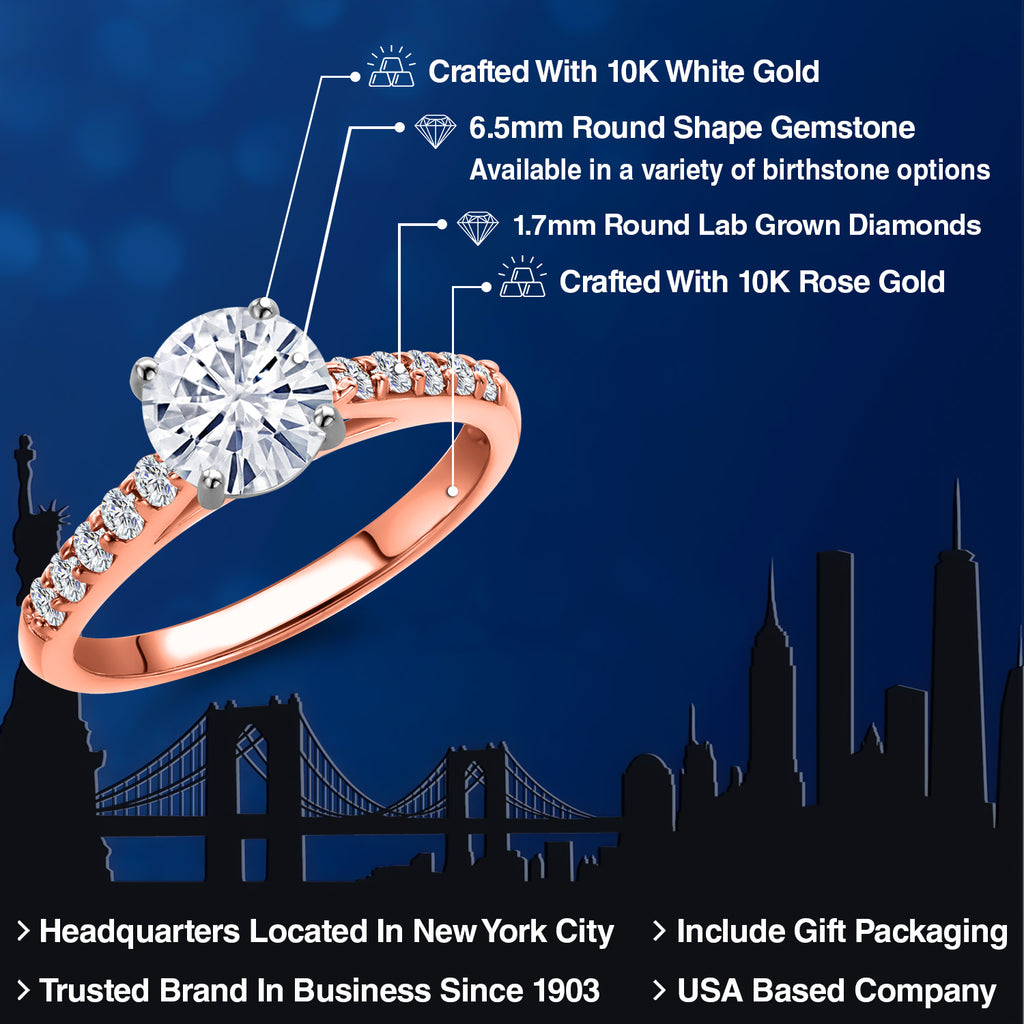 DAZZLING 6.5MM ROUND GEMSTONE: The centerpiece of this exquisite ring is a meticulously cut 6.5MM round gemstone, available in a stunning array of birthstone options, each offering its own unique brilliance and hue. The gemstone's clarity and vibrant color are enhanced by expert faceting, creating a mesmerizing play of light that captivates the eye, making it a perfect representation of elegance and personal expression.
